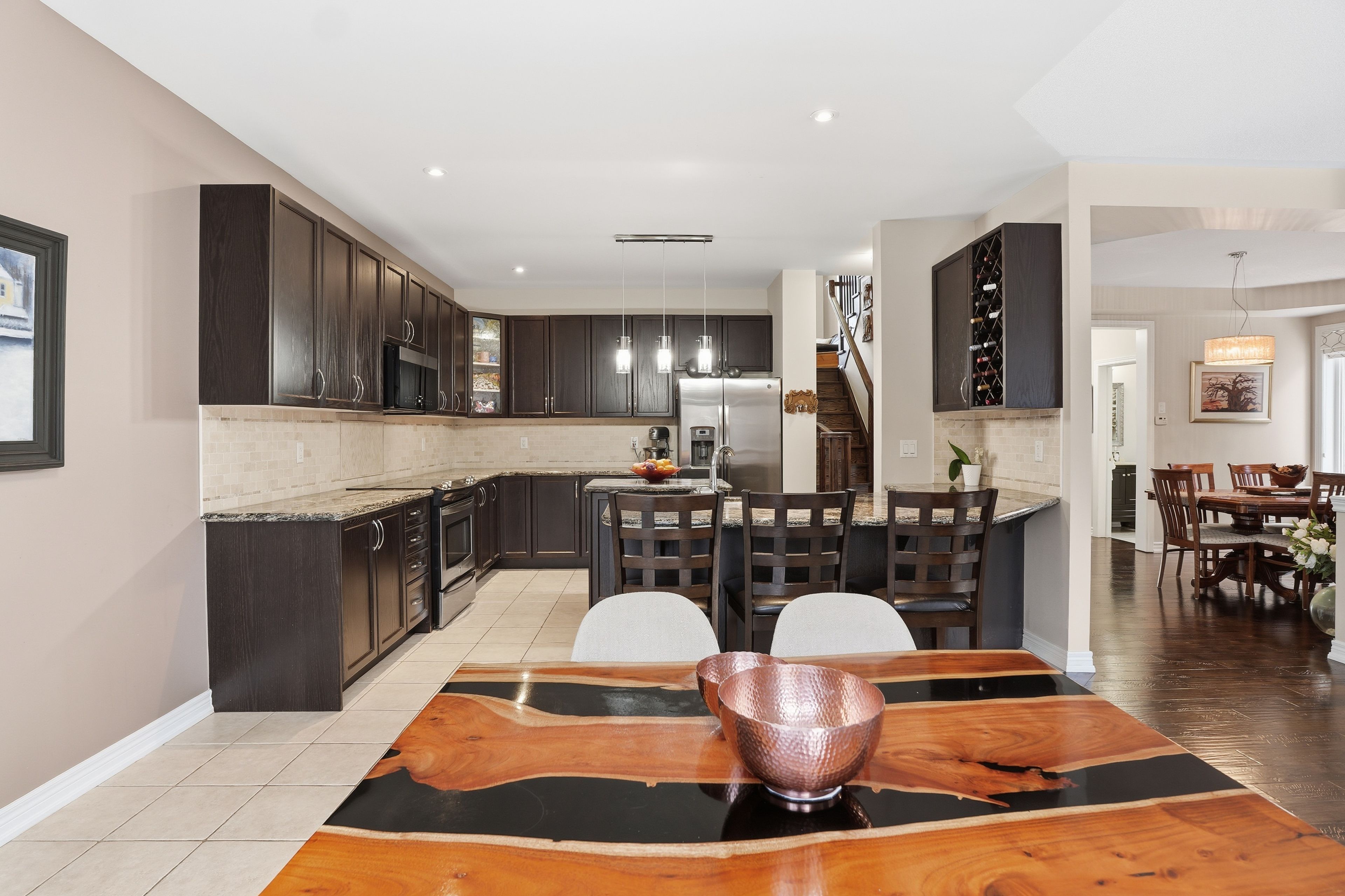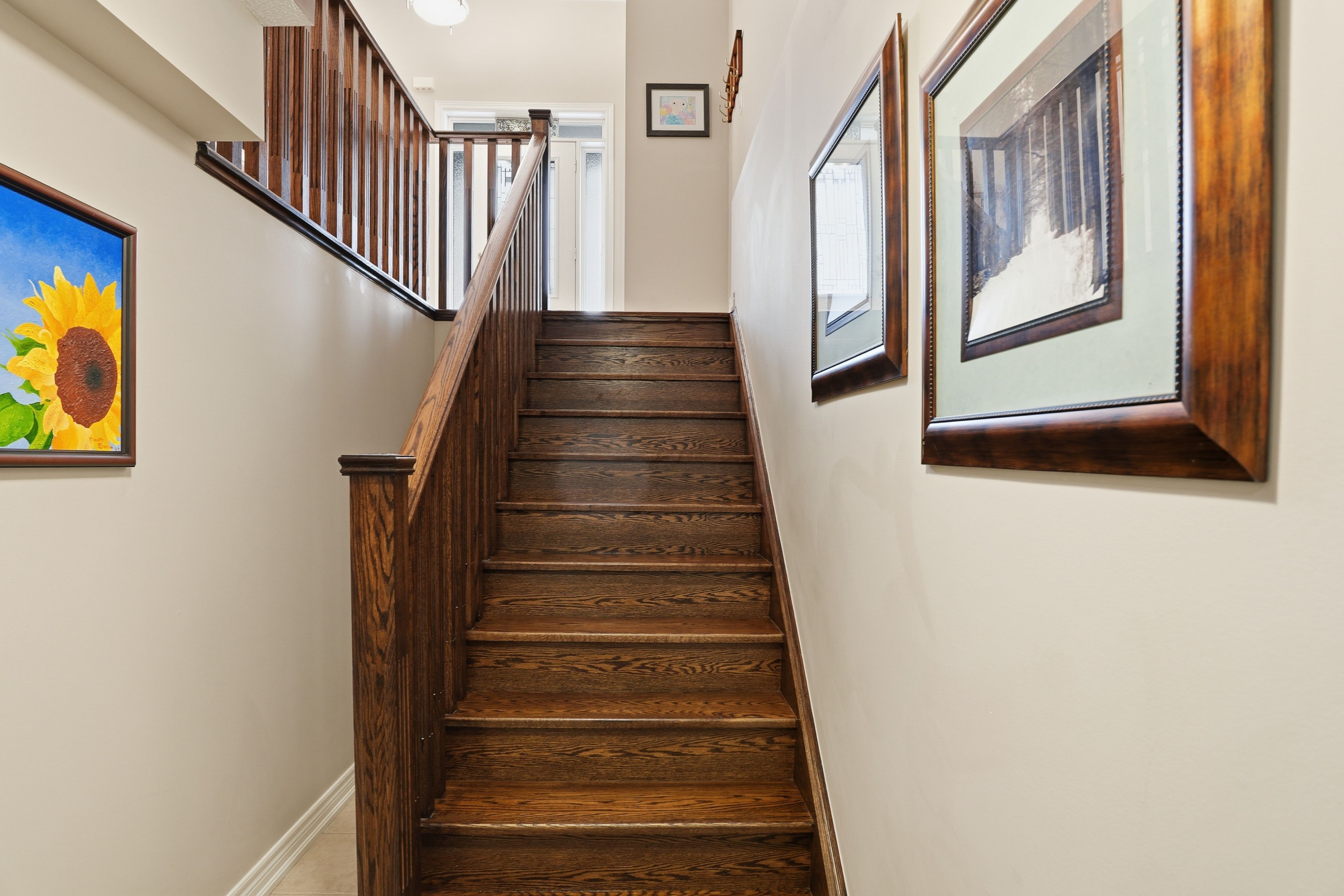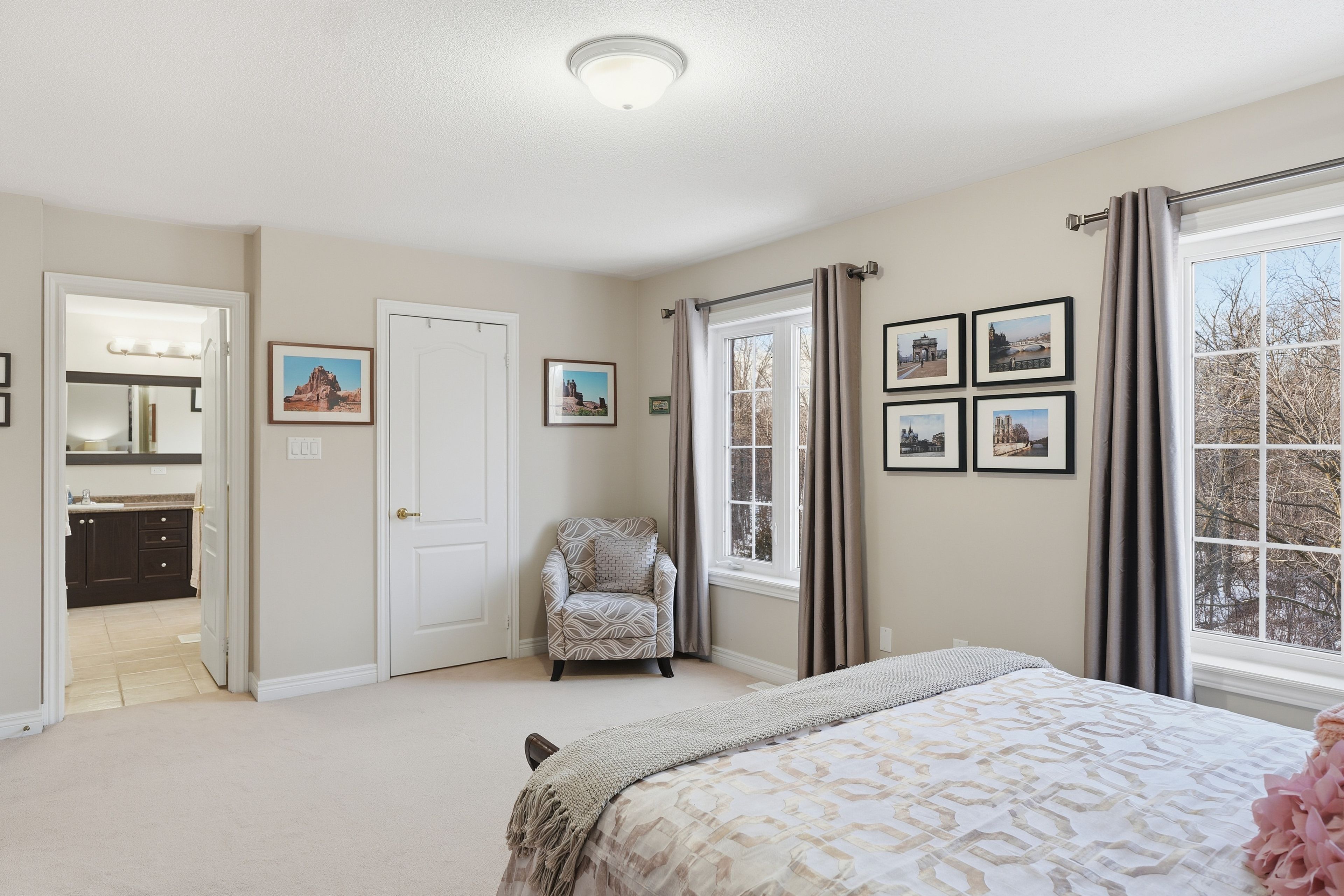 Must see! This gorgeous 43-ft lot truly has it all! Set on a premium ravine lot, this stunning detached home offers over 3,000 sq. Ft. Of modern living in one of milton's most desirable neighbourhoods. From the moment you arrive, the curb appeal stands out with a beautifully landscaped yard with a built-in irrigation system, a custom front-yard waterfall and stream, and landscaped stone front steps, creating a warm and memorable first impression. Inside, you'll find a bright, open-concept layout featuring a sunlit living area, an elegant dining room, an upgraded kitchen with quartz countertops, stainless steel appliances, abundant storage, and potlights. The family room is equally impressive with potlights and a gas fireplace, offering the perfect place to gather and unwind. The upper level includes a bonus living area-ideal for a media room or family lounge-along with four generous bedrooms. The primary suite is a true retreat with his-and-her walk-in closets and a spa-like ensuite featuring double sinks, a stand-up shower, and a private water closet. The primary bedroom also features lower-set windows designed to highlight the ravine views, allowing you to enjoy the natural landscape right from your bedside. All bedrooms include large windows and ample closet space. The partially finished basement adds even more versatility with a rec room complete with a kitchen sink and mini fridge, a full bathroom, a bedroom with lots of potlights, and plenty of open space ready for your finishing touches. Step outside to your private backyard oasis, complete with an oversized deck, beautiful landscaping, and peaceful ravine views. In the summertime, the yard comes alive with hummingbirds, cardinals, and natural surroundings, offering a serene, nature-filled escape-perfect for relaxing or entertaining. Located close to top-rated schools, parks, shopping, restaurants, the milton go station, highway 401,and the upcoming university campus, this home delivers style and location!