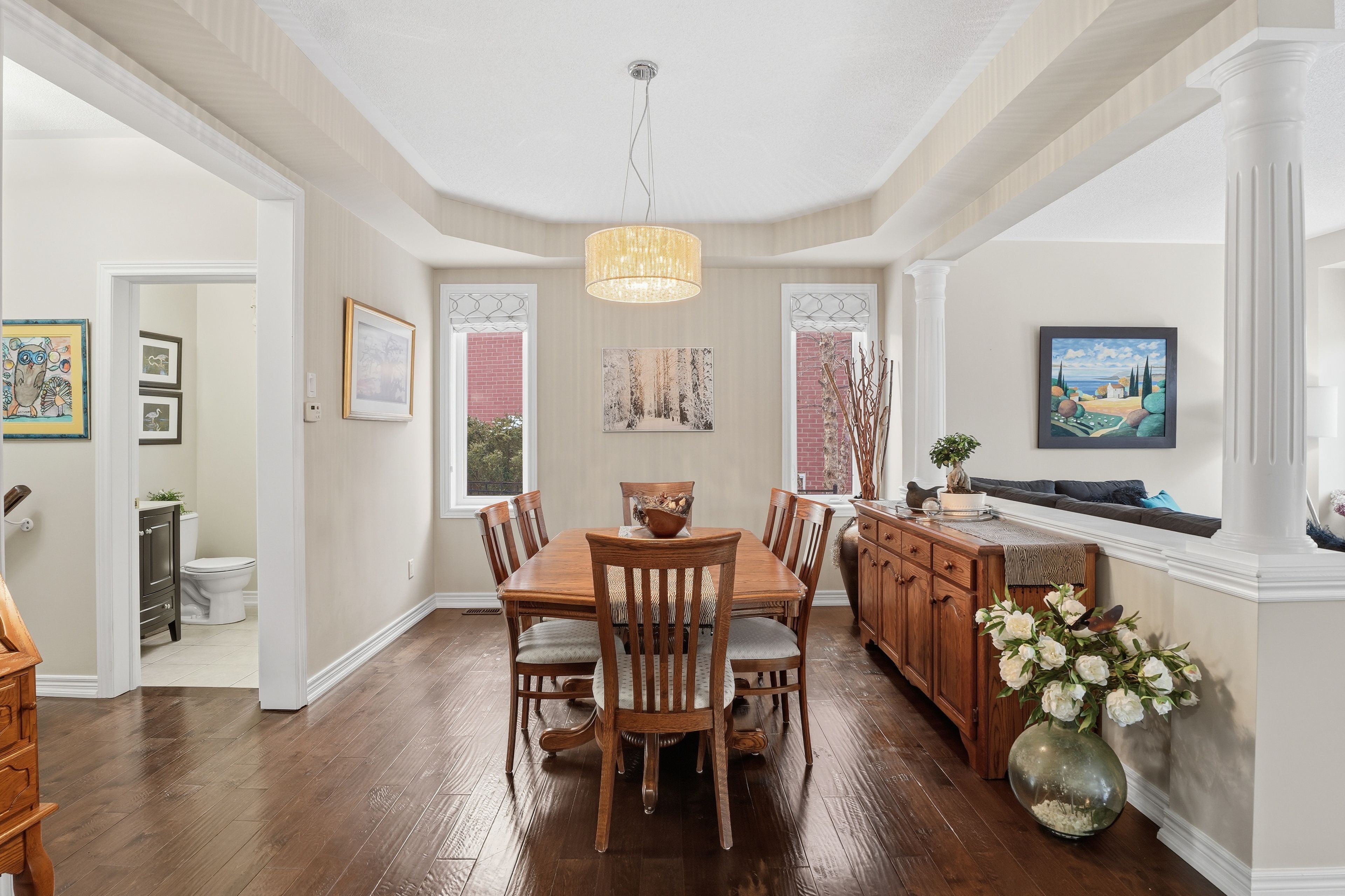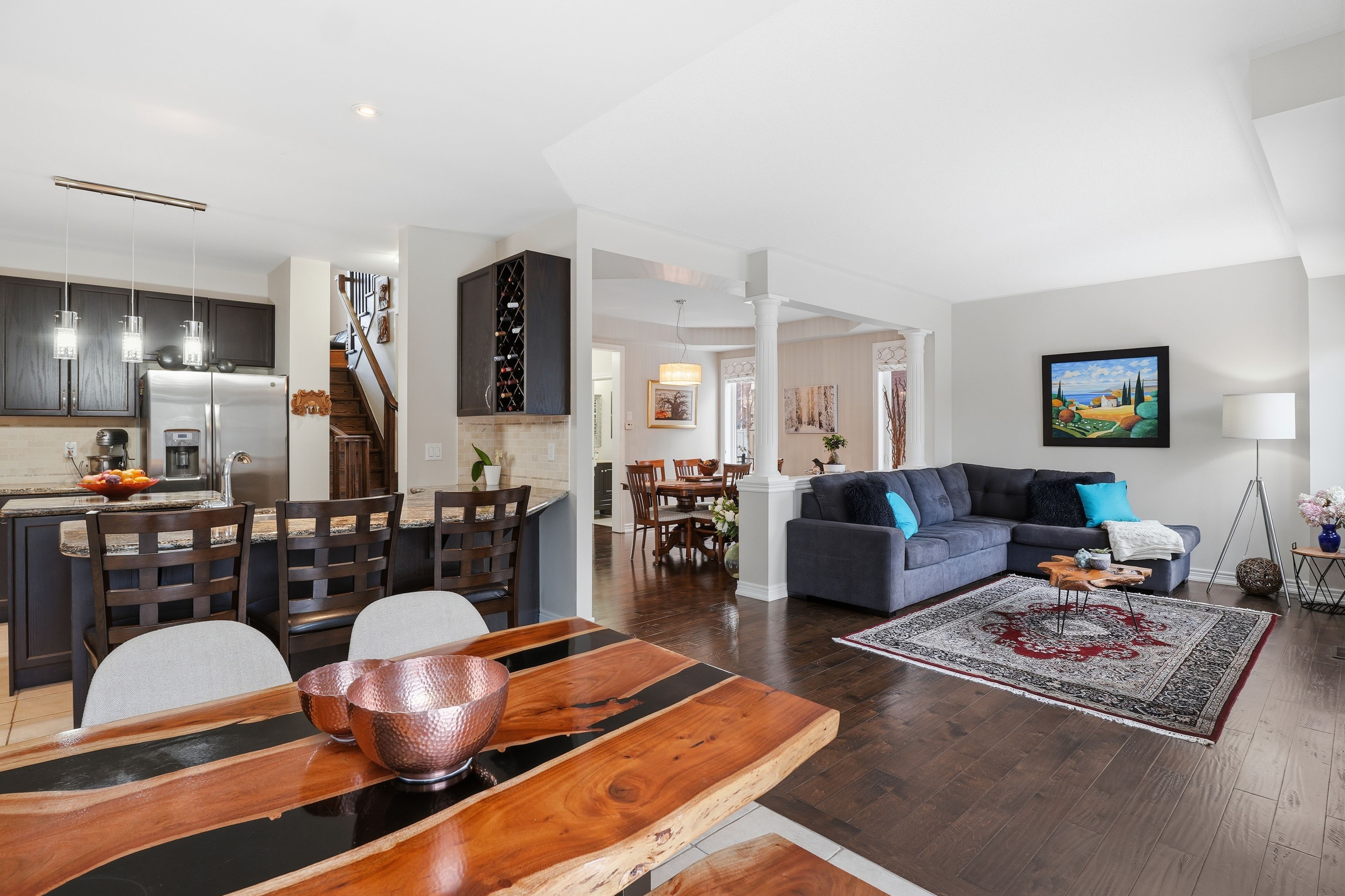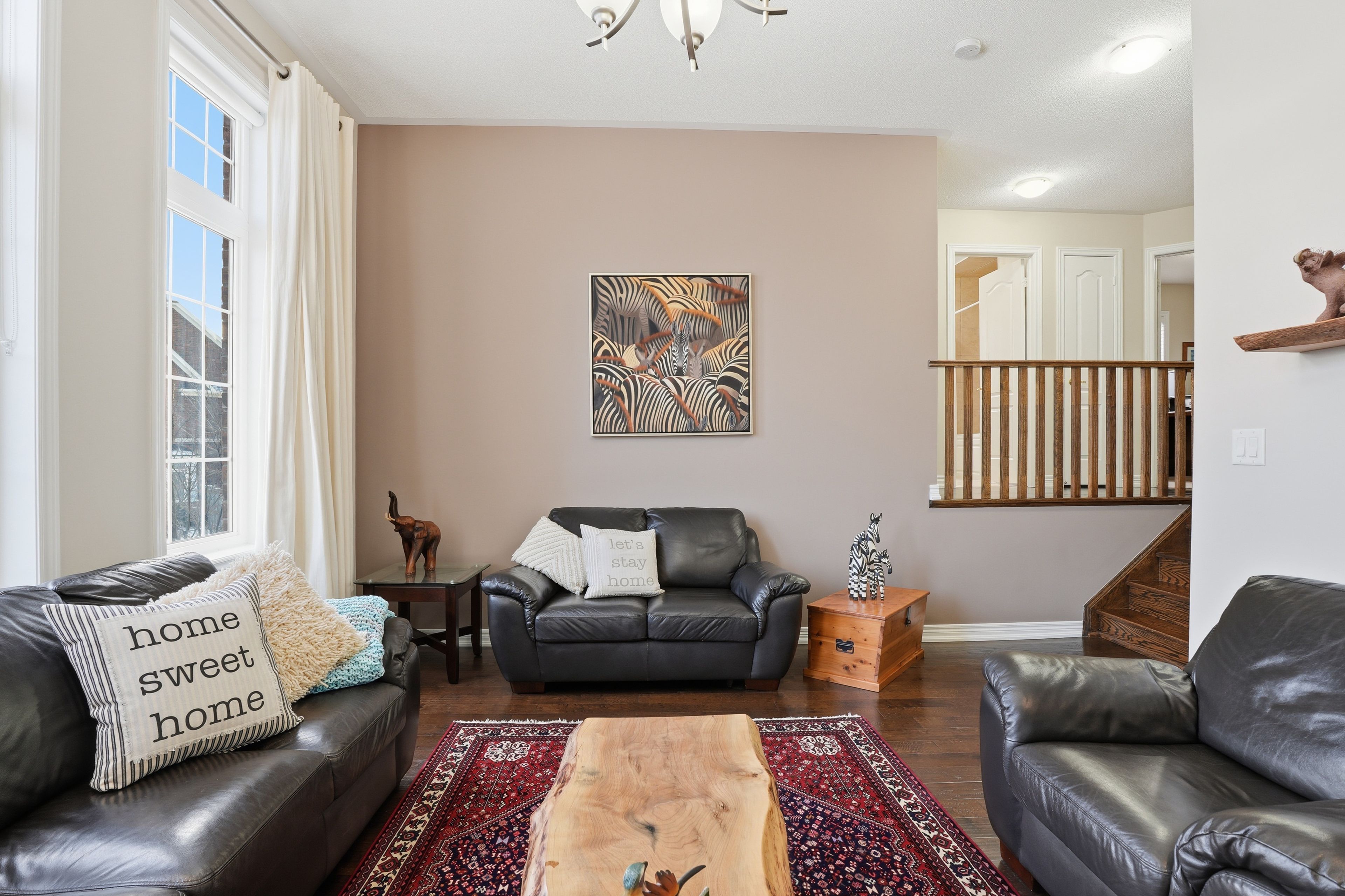 Must see! This gorgeous 43-ft lot truly has it all! Set on a premium ravine lot, this stunning detached home offers over 3,000 sq. Ft. Of modern living in one of milton's most desirable neighbourhoods. From the moment you arrive, the curb appeal stands out with a beautifully landscaped yard with a built-in irrigation system, a custom front-yard waterfall and stream, and landscaped stone front steps, creating a warm and memorable first impression. Inside, you'll find a bright, open-concept layout featuring a sunlit living area, an elegant dining room, an upgraded kitchen with quartz countertops, stainless steel appliances, abundant storage, and potlights. The family room is equally impressive with potlights and a gas fireplace, offering the perfect place to gather and unwind. The upper level includes a bonus living area-ideal for a media room or family lounge-along with four generous bedrooms. The primary suite is a true retreat with his-and-her walk-in closets and a spa-like ensuite featuring double sinks, a stand-up shower, and a private water closet. The primary bedroom also features lower-set windows designed to highlight the ravine views, allowing you to enjoy the natural landscape right from your bedside. All bedrooms include large windows and ample closet space. The partially finished basement adds even more versatility with a rec room complete with a kitchen sink and mini fridge, a full bathroom, a bedroom with lots of potlights, and plenty of open space ready for your finishing touches. Step outside to your private backyard oasis, complete with an oversized deck, beautiful landscaping, and peaceful ravine views. In the summertime, the yard comes alive with hummingbirds, cardinals, and natural surroundings, offering a serene, nature-filled escape-perfect for relaxing or entertaining. Located close to top-rated schools, parks, shopping, restaurants, the milton go station, highway 401,and the upcoming university campus, this home delivers style and location!