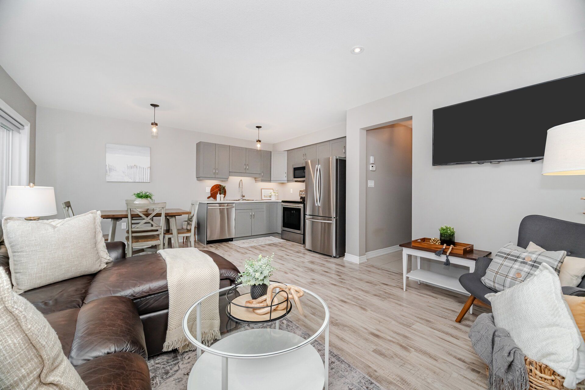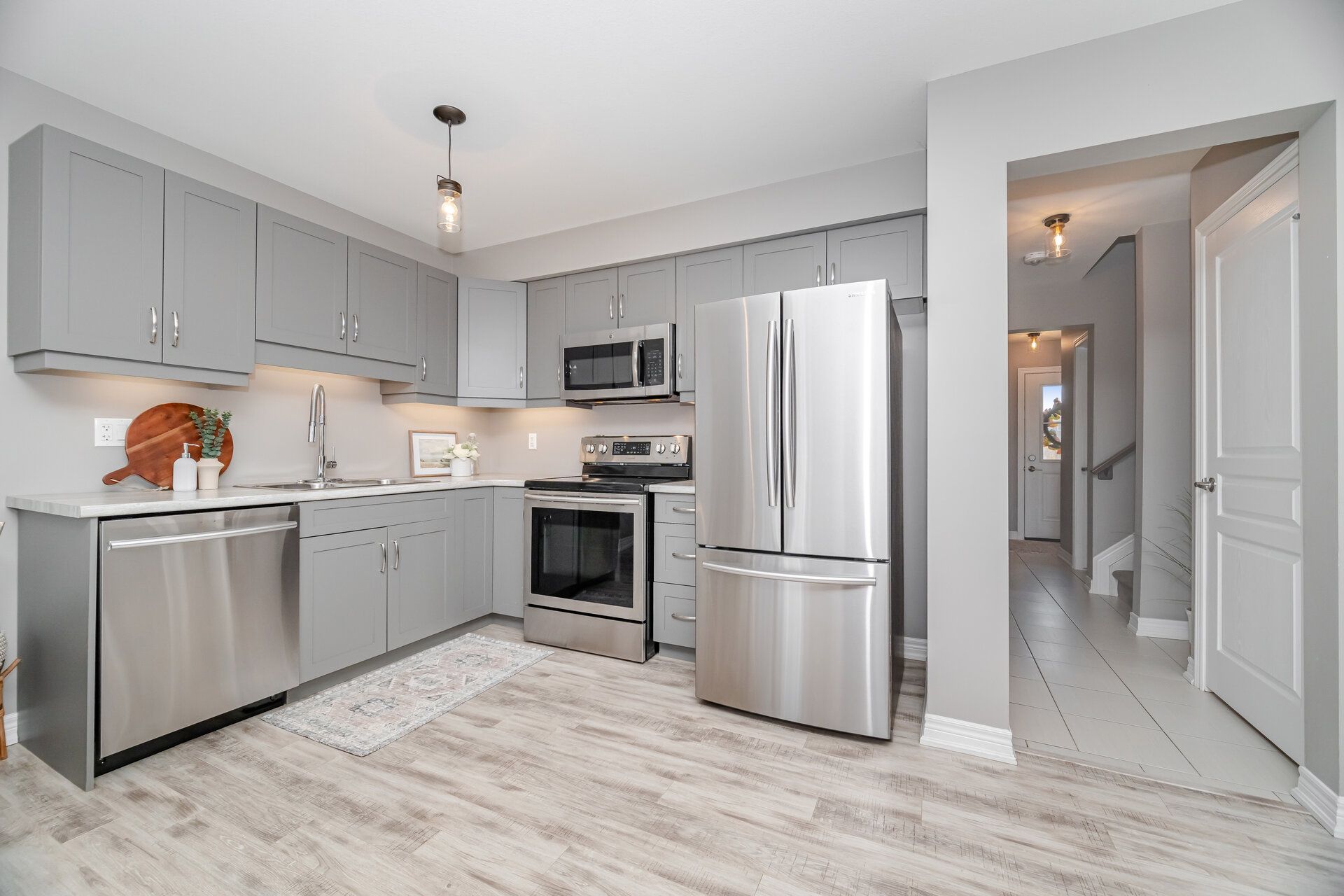 Freehold town with no additional road fees in desirable forestview neighbourhood! This modern and functional 3 bedroom 1. 5 bath townhome offers modern living in a family friendly neighbourhood. The open concept design seamlessly connects the kitchen and great room, creating the perfect space for everyday living. From the kitchen step out to an oversized upper deck overlooking the backyard-ideal for relaxing or entertaining. Upstairs you will find 3 bedrooms, including primary suite with a large walk in closet offering plenty of storage and comfort. The additional bedrooms are versatile and are ideal for children, guests or home office. The unfinished walk out basement is a rare find that offers natural light and incredible potential for future living space. With a convenient laundry room and rough in for a potential bathroom, this level is ready to be transformed into whatever will suit your needs. Move in ready and close to all major amenities with access to schools, parks, shopping, restaurants and major highways only minutes away - ideal for both commuters and families.
