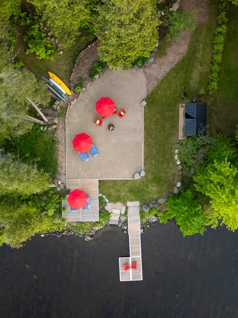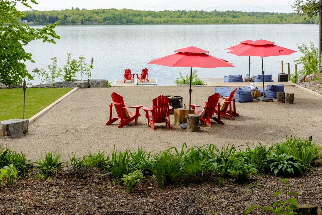 • Private sandy lounge area with dock, perfect for water activities.