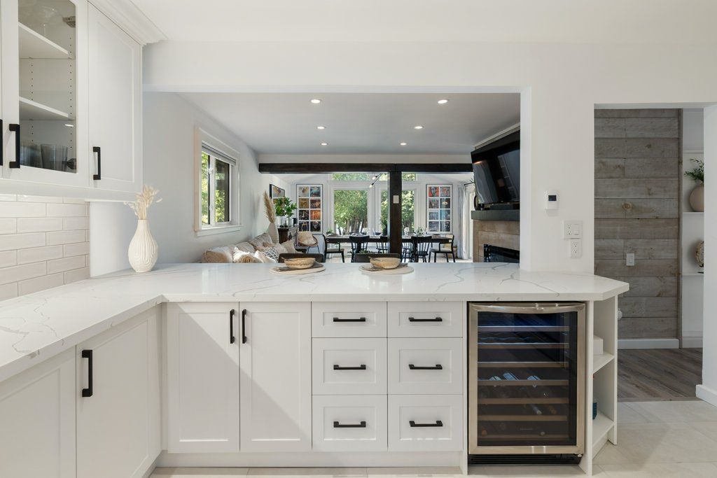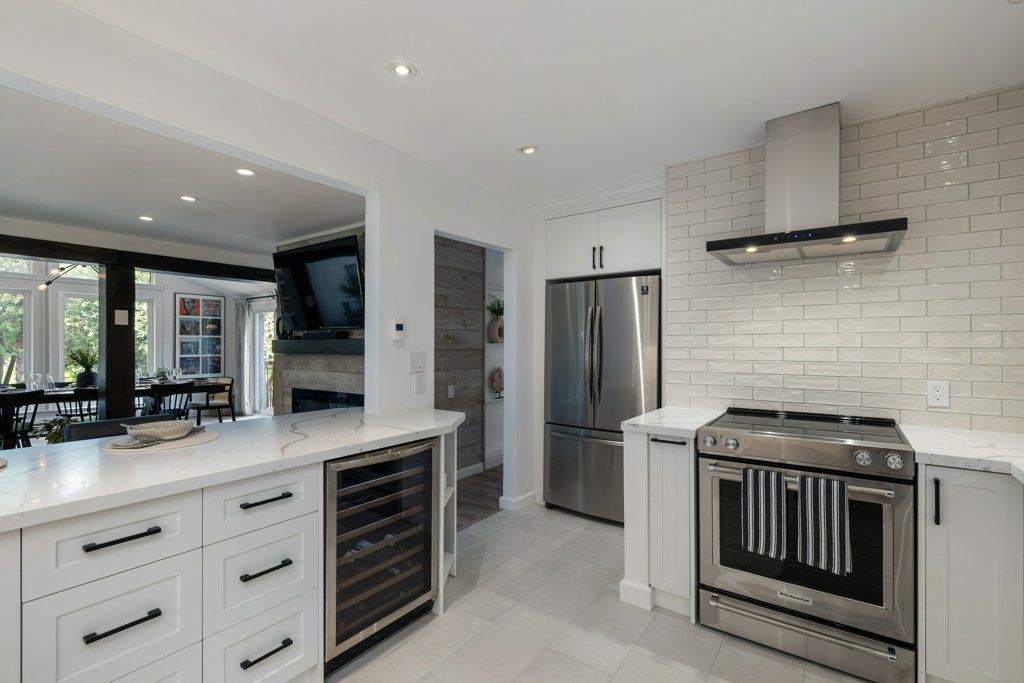 • Brand-new chef's kitchen with quartz countertops and heated floors.