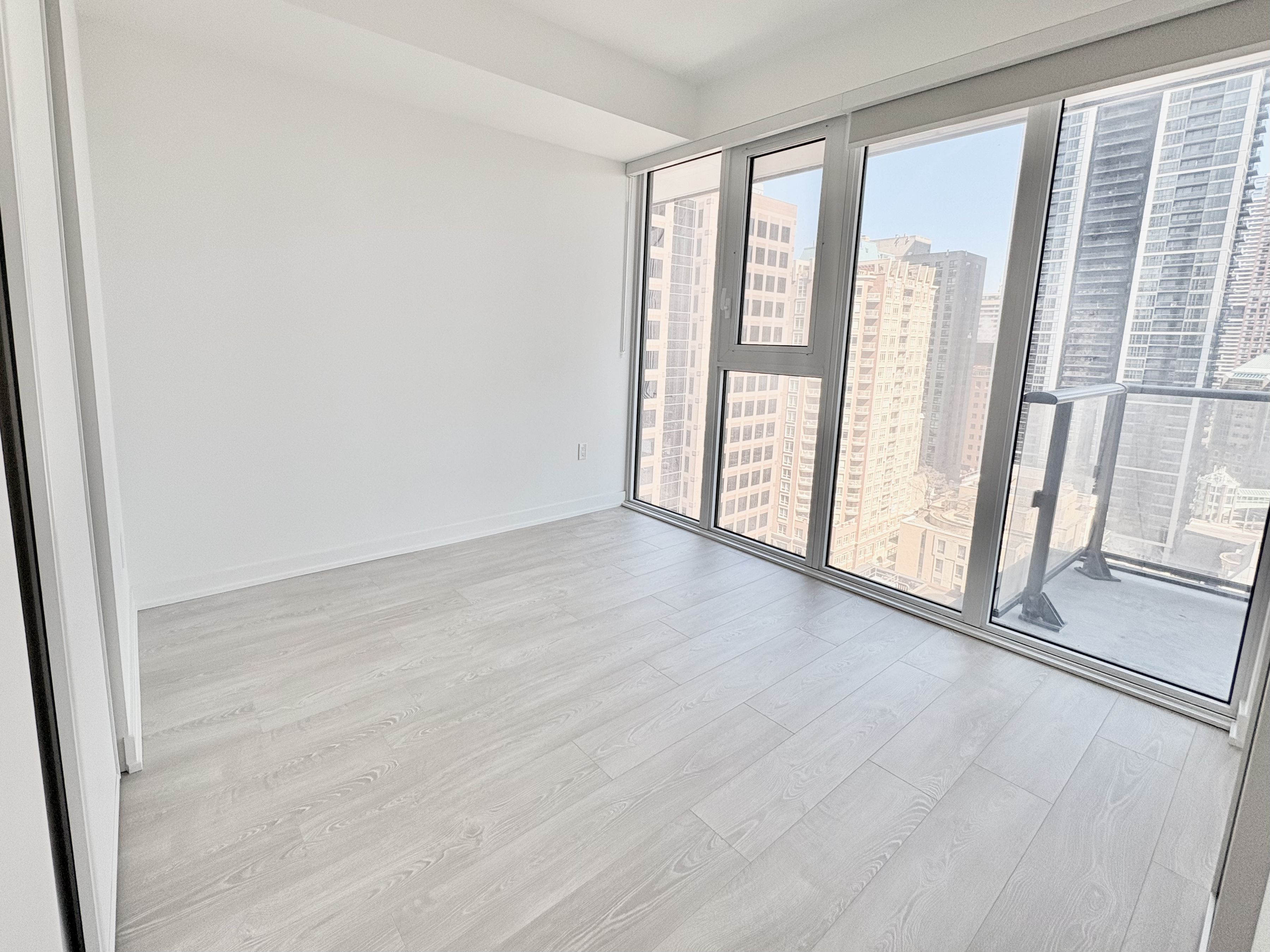Welcome to the charles at church - where classic modern luxury meets refined urban living. This elegant open-concept suite features a bright and spacious one-bedroom + den, one-bath layout, enhanced by floor-to-ceiling windows that fill the space with natural light. Enjoy 9-foot smooth ceilings, sleek laminate flooring. Contemporary kitchen equipped with built-in appliances, including a glass cooktop, oven, paneled fridge, and built-in dishwasher, along with granite countertops and a stylish backsplash. Ideally situated in the heart of the city, you're just steps from shopping, dining, the university of toronto, toronto metropolitan university, subway access, and public transit. Residents enjoy premium amenities such as a fully equipped fitness center, expansive outdoor terrace, party room, and a chef-inspired kitchen-perfect for both relaxing and entertaining.