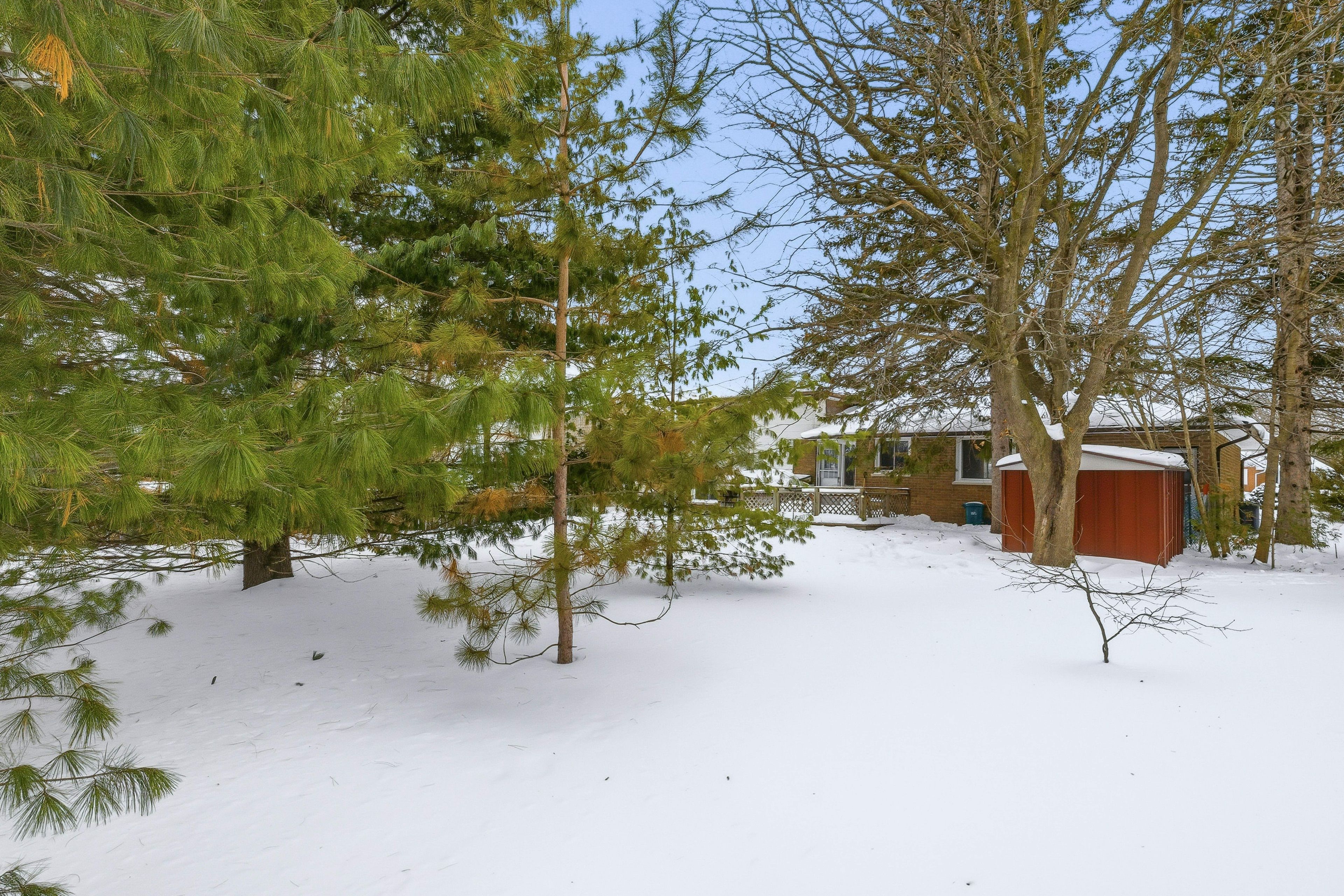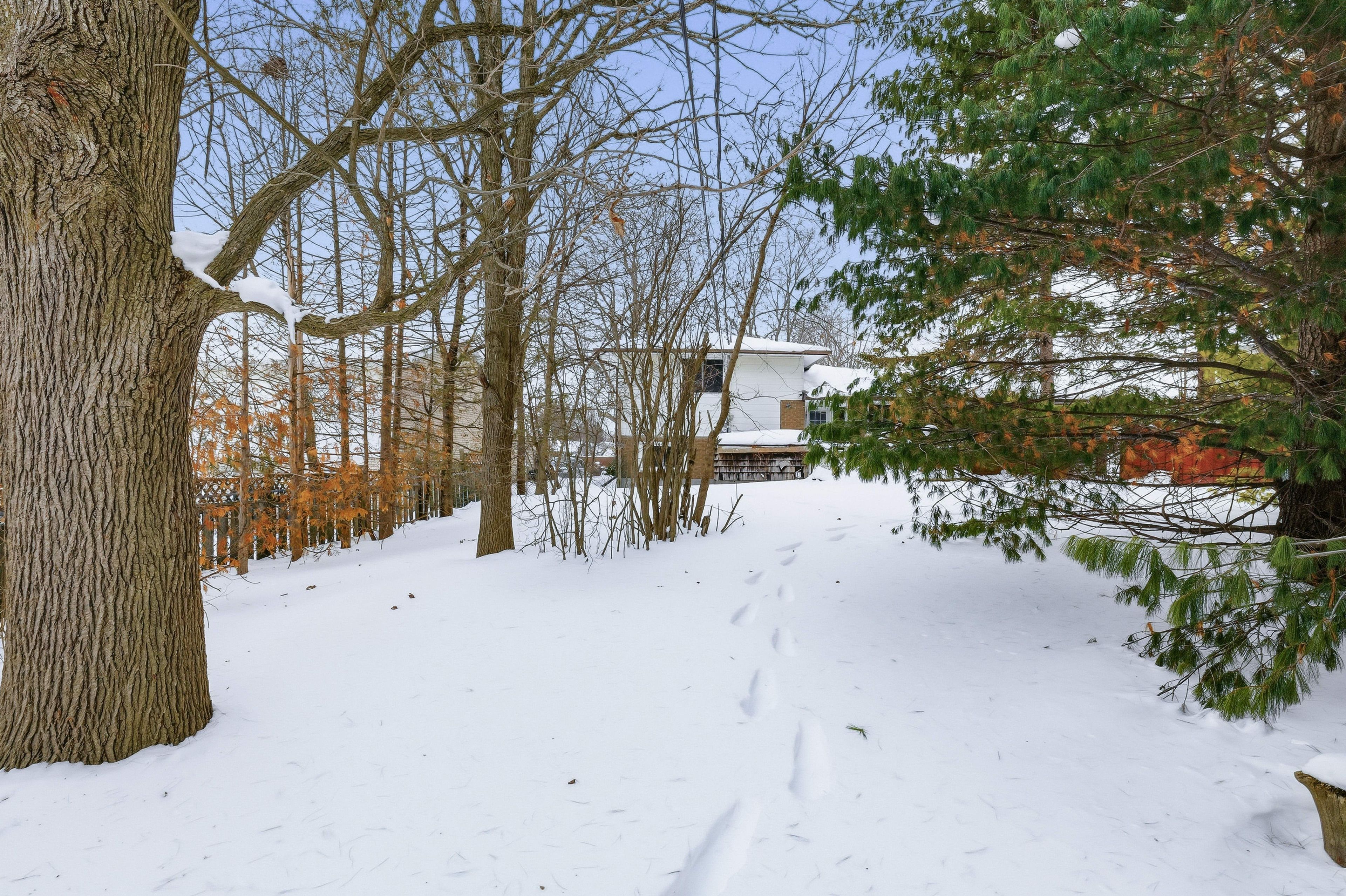 • Spacious pie-shaped lot with a large pine tree adding character.