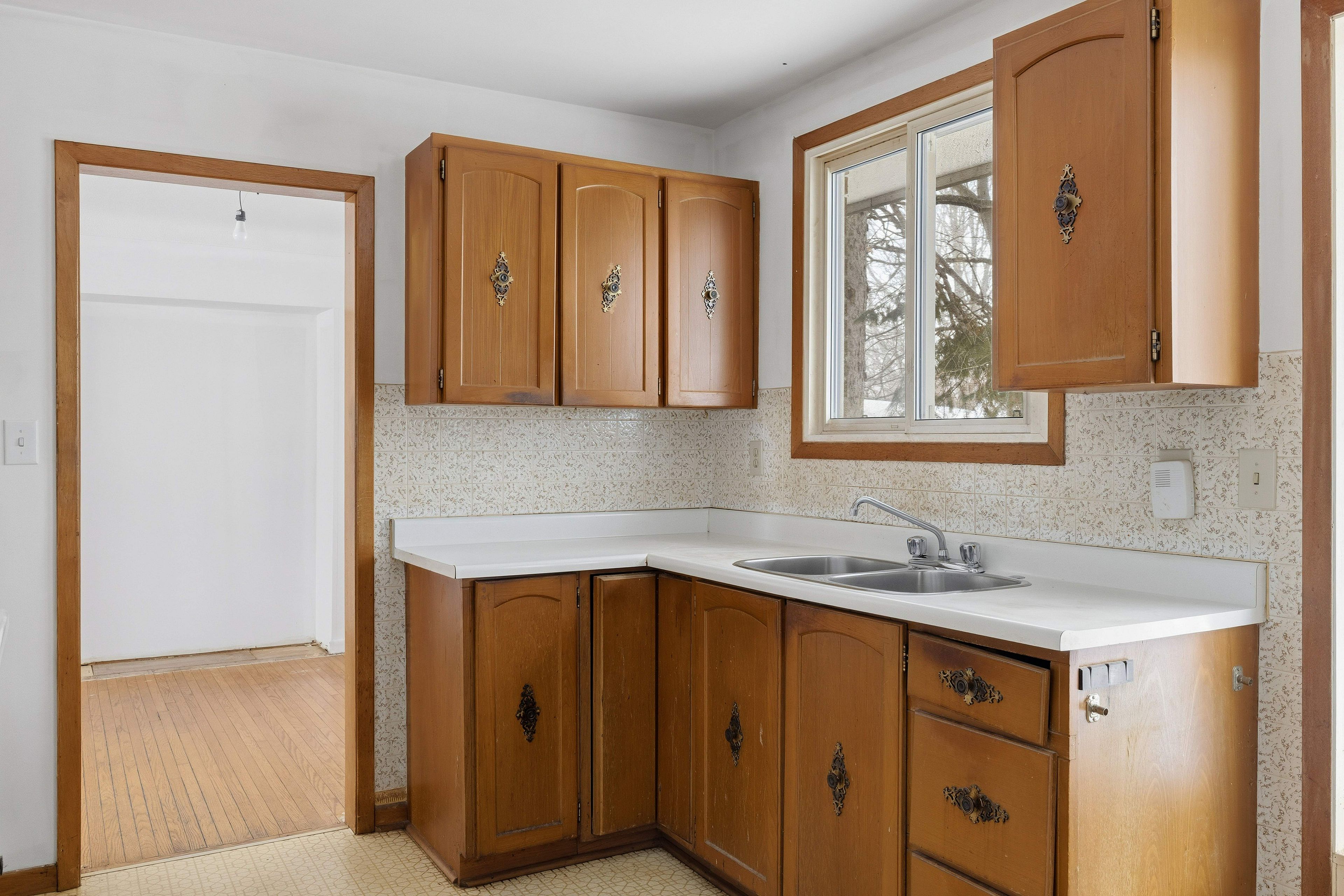 In that leafy west-end pocket south of bayridge secondary and north of lemoines point, 634 fleet st guards the bend in the road, protects its pie-shaped lot with a sky-scraping pine tree that connects like a camouflaged thread the land north of lake ontario to the towering cumulus above it. The house went up in 1970, and sprawls along the horizon - an attached garage at one end and the bedrooms a little higher at the other. There are three of those on the second level, and a fourth in the basement, next to the laundry room, the extra bath, and the panelled rec room with its lime green shag. On the main level, the living room and dining room wrap around the original kitchen with its door out to the deck and garden. The charms are obvious, but most will still choose to refresh the house top to bottom, is my guess. The coming spring feels the ideal time for that - throw open the doors and windows and gather your materials in the long driveway, or lay out your plans on the back deck. The house is priced to comfortably accommodate some pretty elaborate changes. Just don't take out that livid, ankle-grabbing carpet, i beg you.