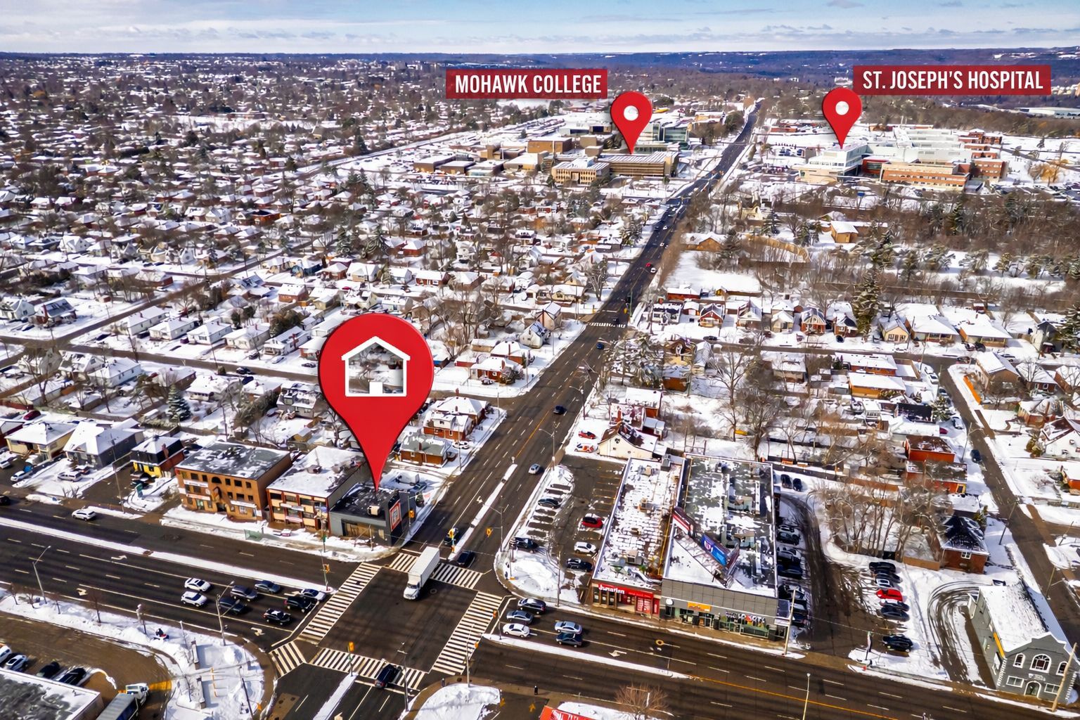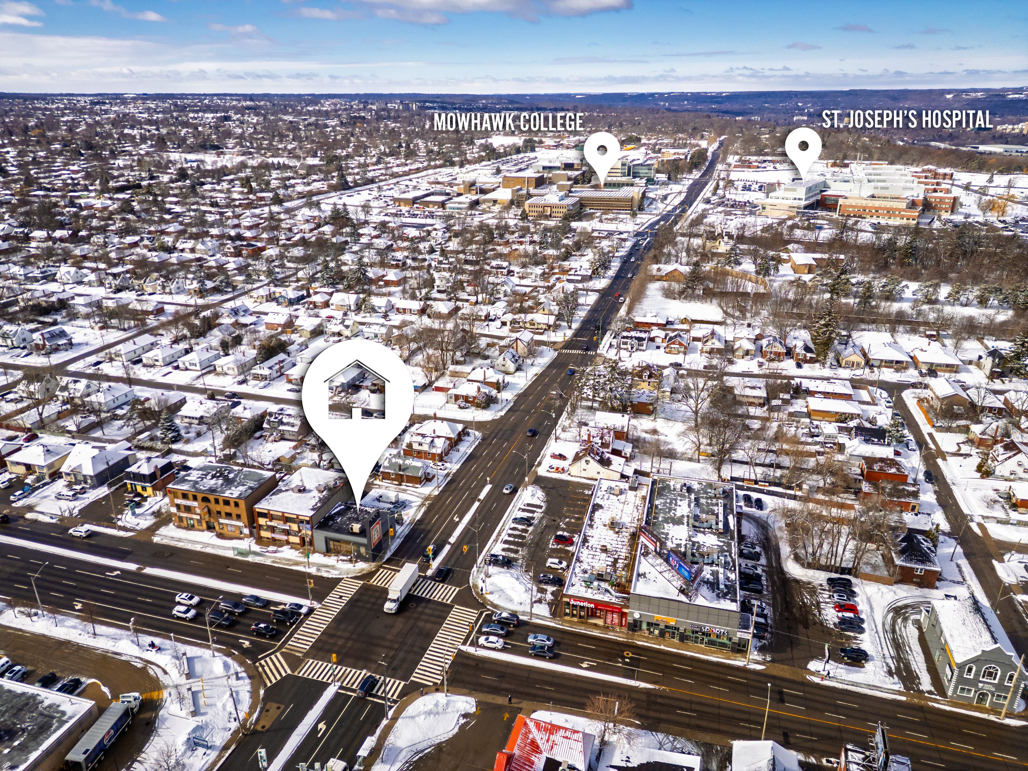 Exceptional opportunity to own a fully renovated mixed-use commercial/residential (zoned c2) building positioned on one of the busiest corners in hamilton on upper james street. This high-exposure property sits at the heart of the rapidly expanding hamilton mountain growth corridor, ensuring continued development, strong demand, and long-term value. Strategically located directly across from a major retail plaza anchored by walmart, shoppers drug mart, and lcbo, the property benefits from constant vehicle and pedestrian traffic. Minutes to the linc parkway for quick highway access, and close to st. Joseph's healthcare and mohawk college, further driving consistent daily traffic. Originally constructed as a solid concrete bank building, the property has been extensively renovated and is in pristine condition. The versatile layout is well-suited for a wide range of commercial uses (such as medical clinic, day care, office, retail, and restaurant to name a few) and features a fully finished lower level, secondary entrance, and convenient rear parking. Additional revenue opportunity with an owned trivision billboard on this high-visibility corner, generating steady advertising income. Zoned c2, allowing for potential future expansion up to 11m (36 ft) above the existing structure (buyer to verify), adding significant redevelopment upside. Full details available in the 3d virtual tour.