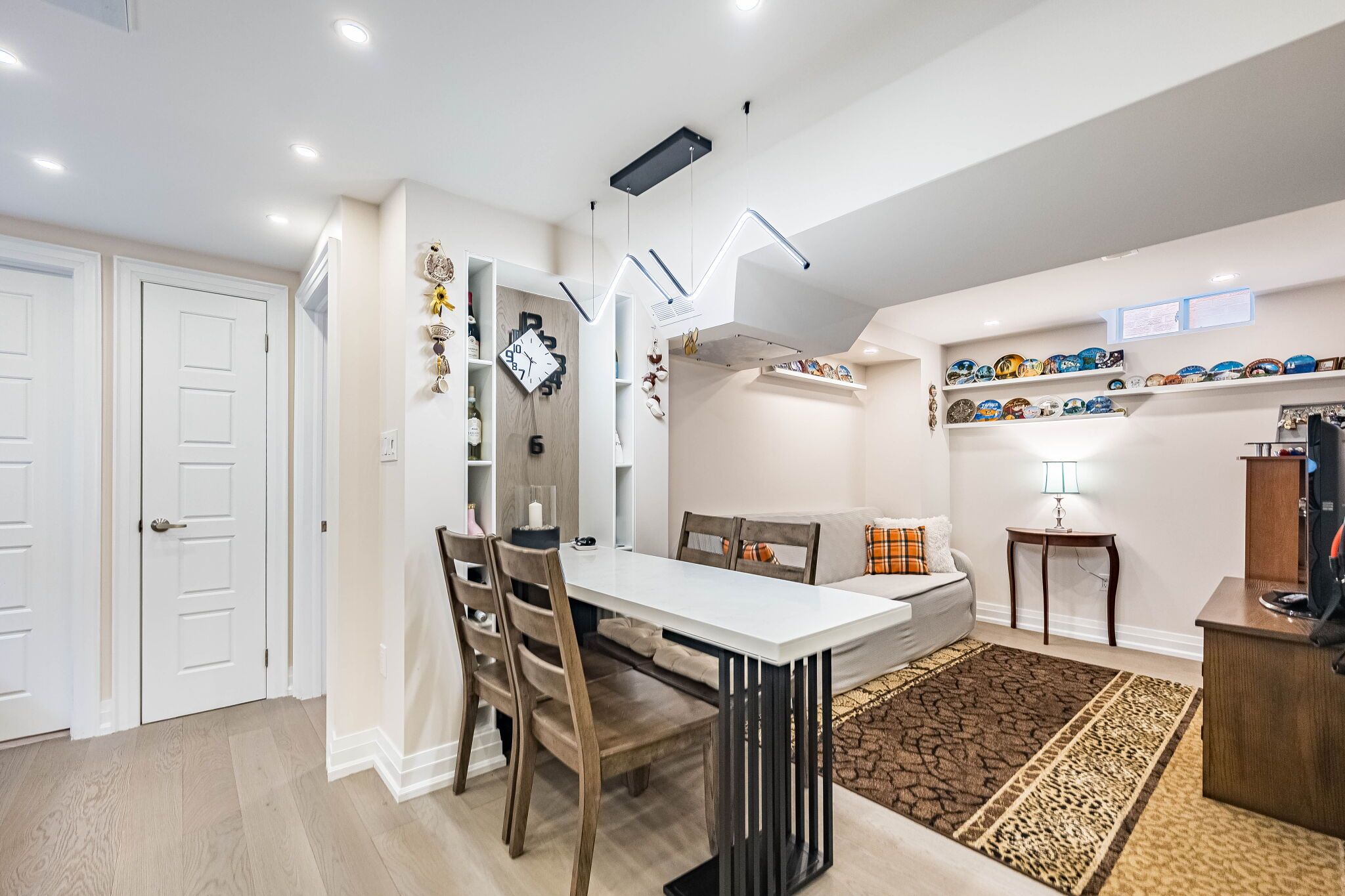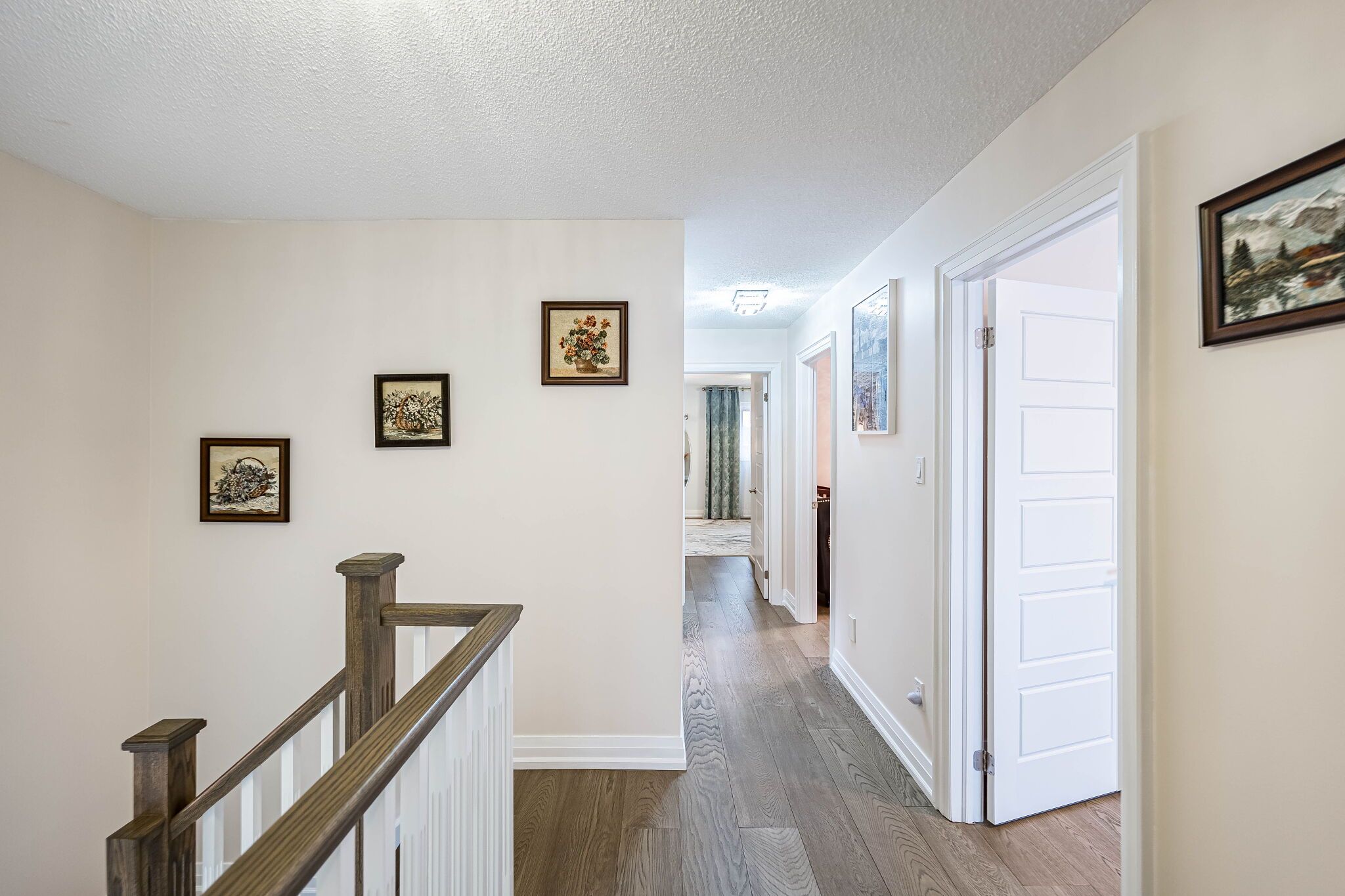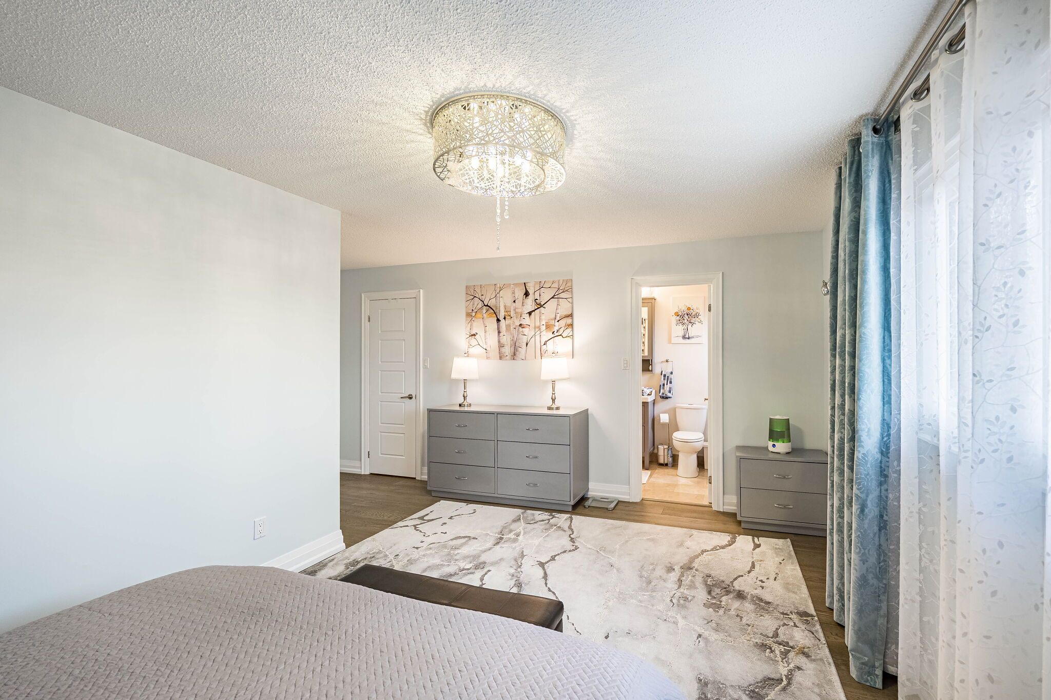 Fantastic home in great family friendly neighbourhood. Just about 2500 sqft immaculately renovated and upgraded family home. Luxury engineered hardwood flooring throughout and wood stairacase. Custom family size eat- in kitchen with stainless steel appliances and quarts counter. Four modern full baths. Full bath on main level and formal living room which could be used as a bedroom offer a convenient option of main floor living. Open concept family and dining rooms with cozy fireplace are ideal for family gatherings. Oversized private backyard with custom two tier deck and gorgeous landscaping is ideal for family enjoyment and entertaining. Second floor offers luxurious master retreat with 5 pc bath and walk-in closet and three additional very spacious bedrooms. Fully finished basement with bright bedroom, kitchenette and full bath adds additional space for family. Recreation or a private space for extended family. Further convenient upgrades include extended driveway and convenient entrance to garage with gdo. Fantastic location on quiet family friendly street steps to parks and trails, schools, public transit, minutes to shopping, 10 minutes to go and highway.