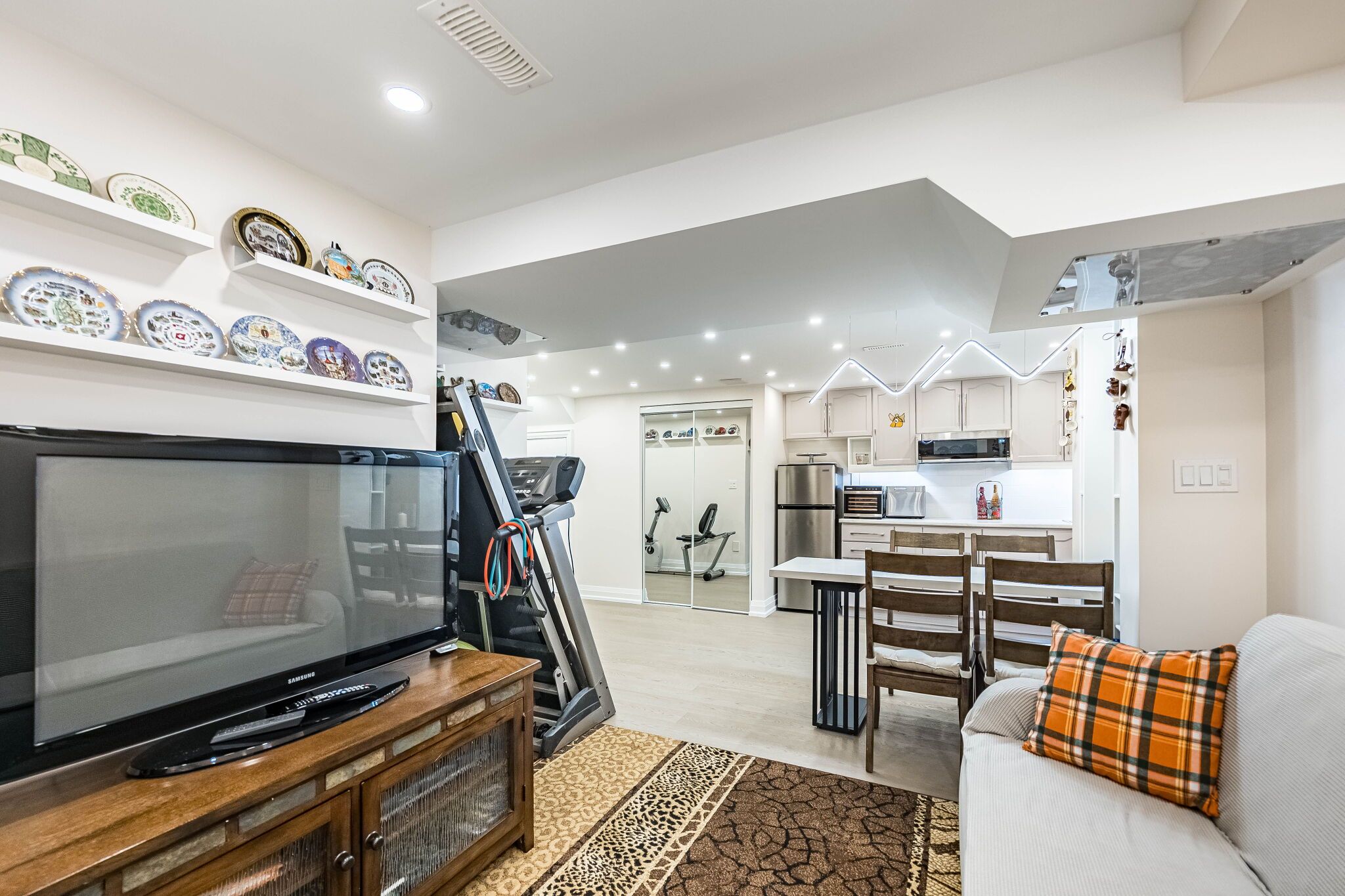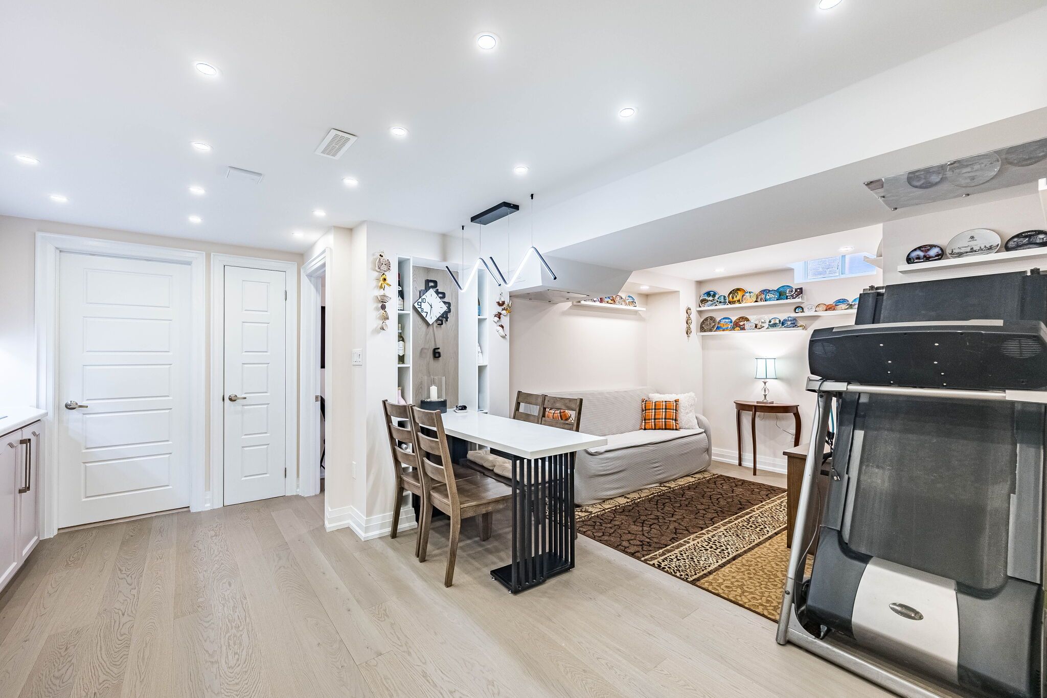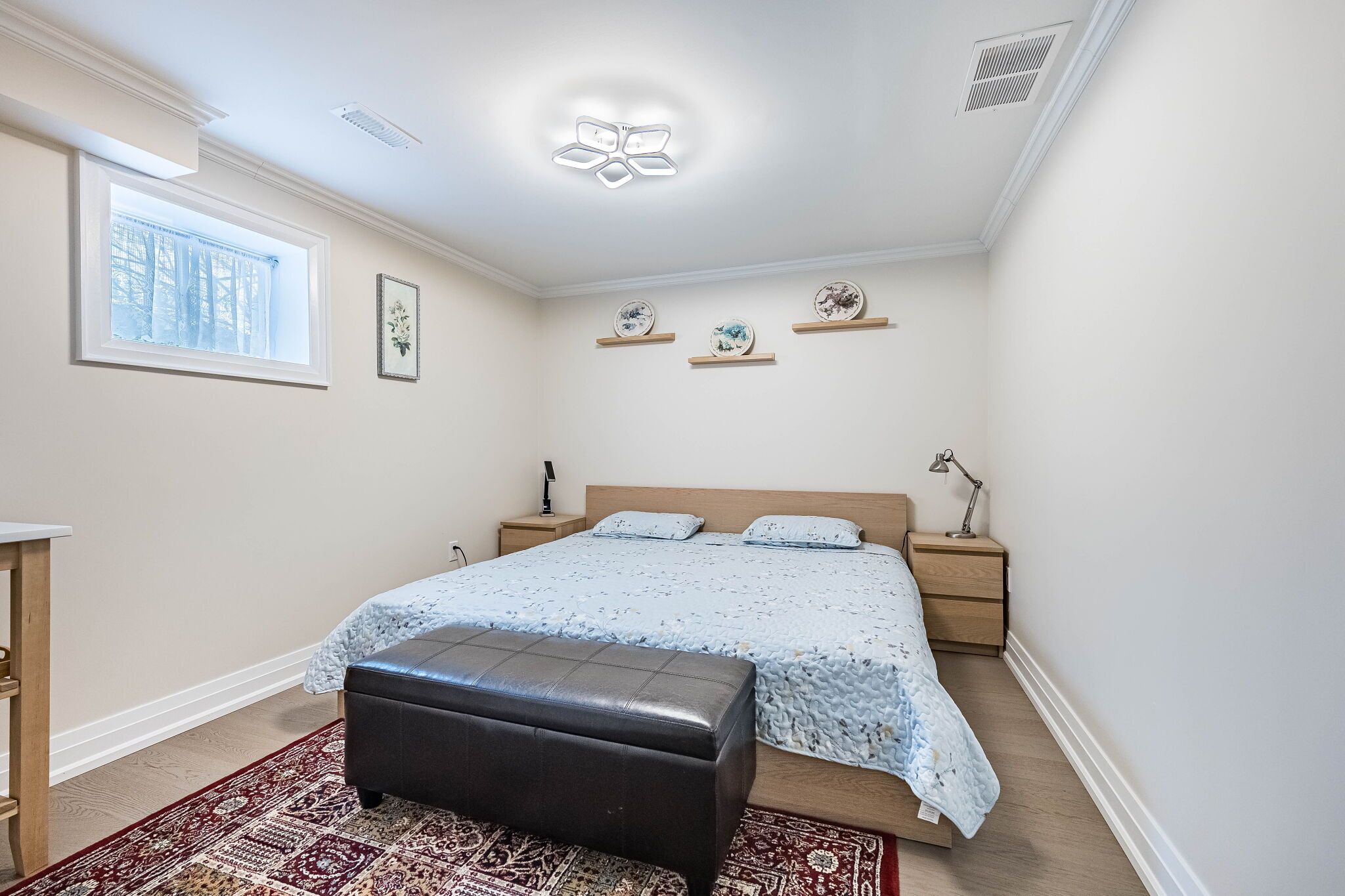 Fantastic home in great family friendly neighbourhood. Just about 2500 sqft immaculately renovated and upgraded family home. Luxury engineered hardwood flooring throughout and wood stairacase. Custom family size eat- in kitchen with stainless steel appliances and quarts counter. Four modern full baths. Full bath on main level and formal living room which could be used as a bedroom offer a convenient option of main floor living. Open concept family and dining rooms with cozy fireplace are ideal for family gatherings. Oversized private backyard with custom two tier deck and gorgeous landscaping is ideal for family enjoyment and entertaining. Second floor offers luxurious master retreat with 5 pc bath and walk-in closet and three additional very spacious bedrooms. Fully finished basement with bright bedroom, kitchenette and full bath adds additional space for family. Recreation or a private space for extended family. Further convenient upgrades include extended driveway and convenient entrance to garage with gdo. Fantastic location on quiet family friendly street steps to parks and trails, schools, public transit, minutes to shopping, 10 minutes to go and highway.