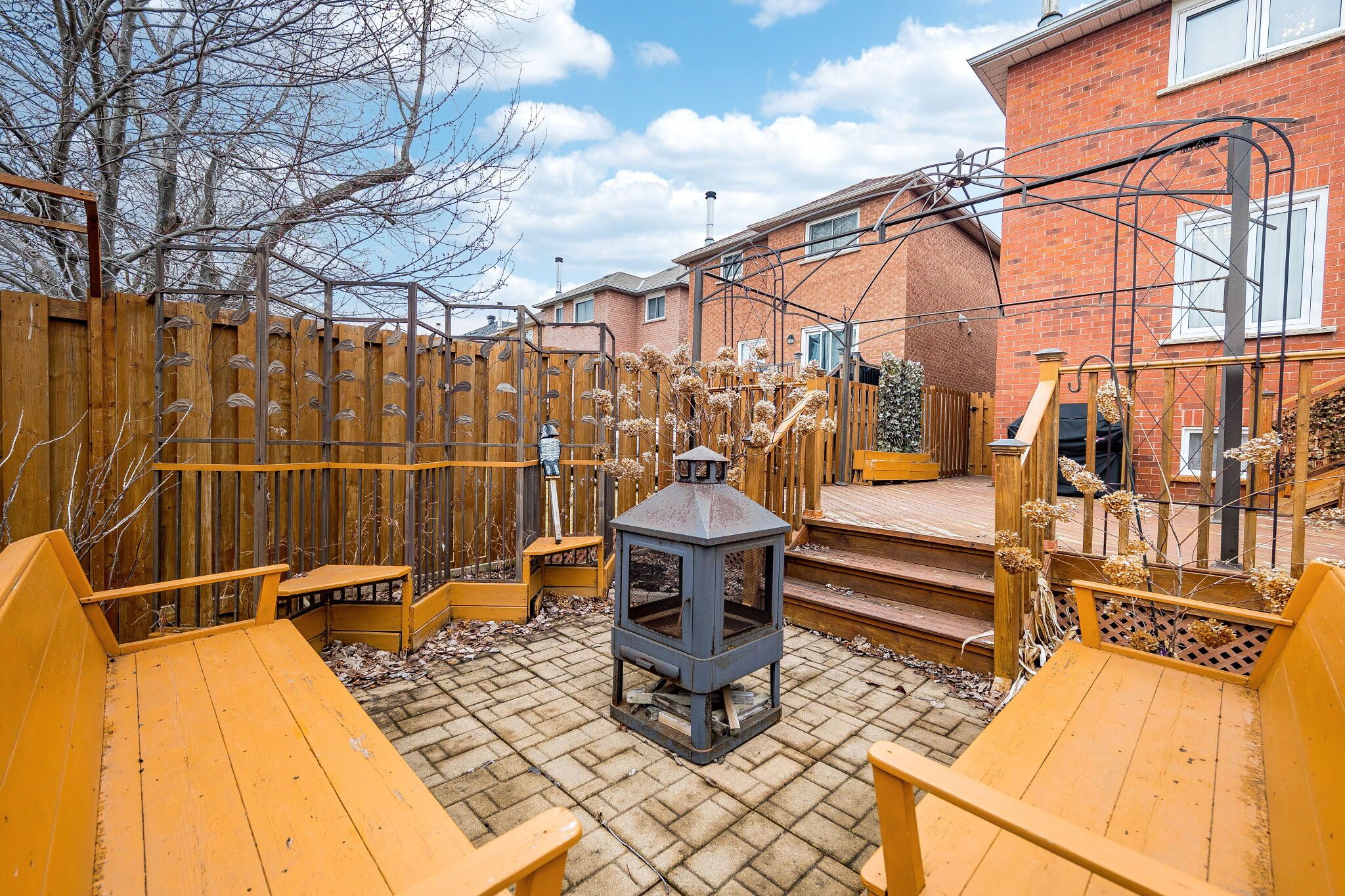 • Oversized private backyard with two-tier deck and beautiful landscaping.