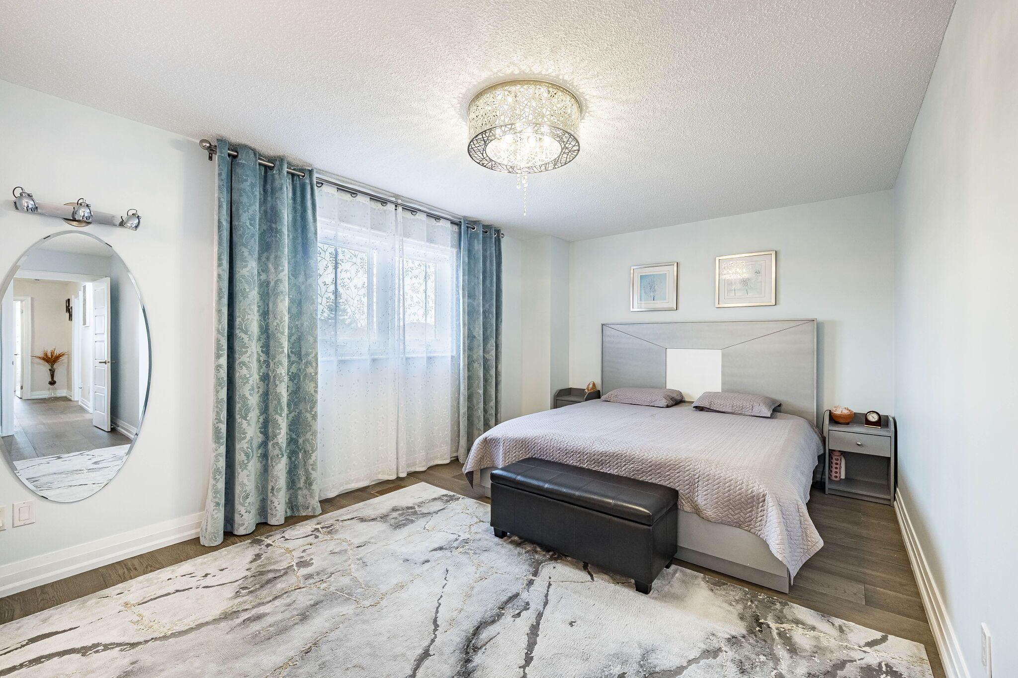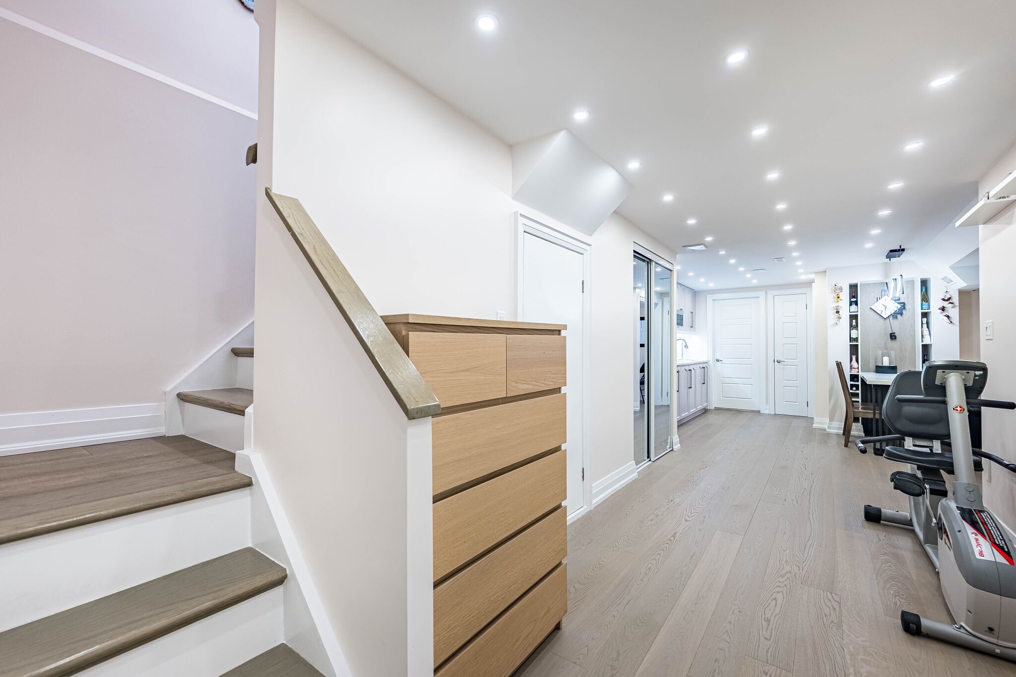 Fantastic home in great family friendly neighbourhood. Just about 2500 sqft immaculately renovated and upgraded family home. Luxury engineered hardwood flooring throughout and wood staircase. Custom family size eat- in kitchen with stainless steel appliances and quartz counter. Four modern full baths. Full bath on main level and formal living room which could be used as a bedroom offer a convenient option of main floor living. Open concept family and dining rooms with cozy fireplace are ideal for family gatherings. Oversized private backyard with custom two tier deck and gorgeous landscaping is ideal for family enjoyment and entertaining. Second floor offers luxurious master retreat with 5 pc bath and walk-in closet and three additional very spacious bedrooms. Fully finished basement with bright bedroom, kitchenette and full bath adds additional space for family recreation or a private space for extended family. Further convenient upgrades include extended driveway and convenient entrance to garage with gdo. Fantastic location on quiet family friendly street steps to parks and trails, schools, public transit, minutes to shopping, 10 minutes to go and highway.