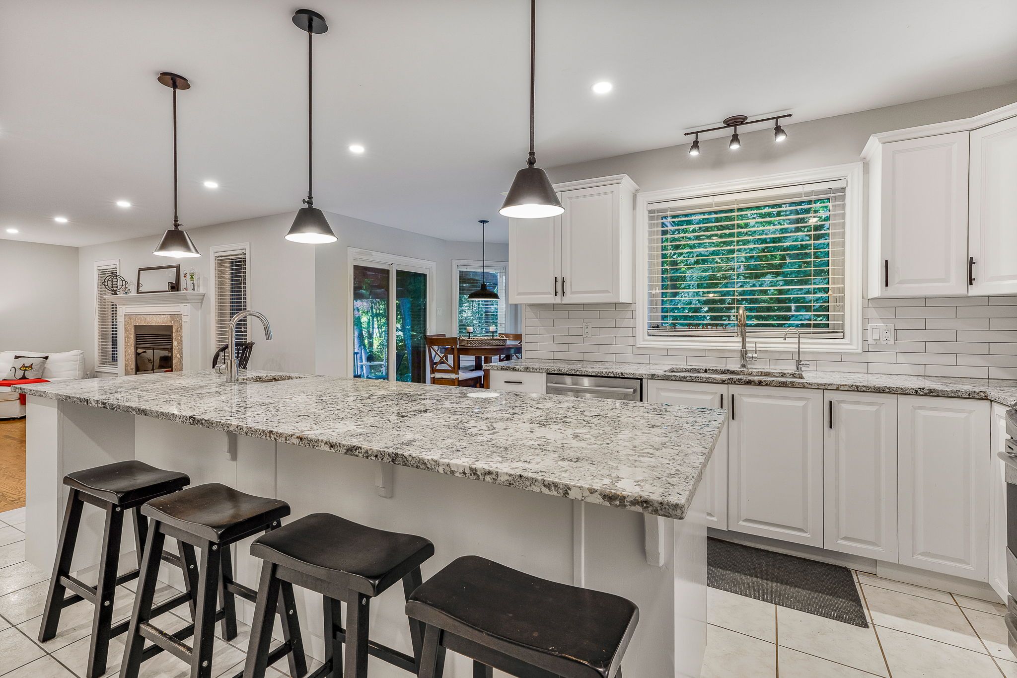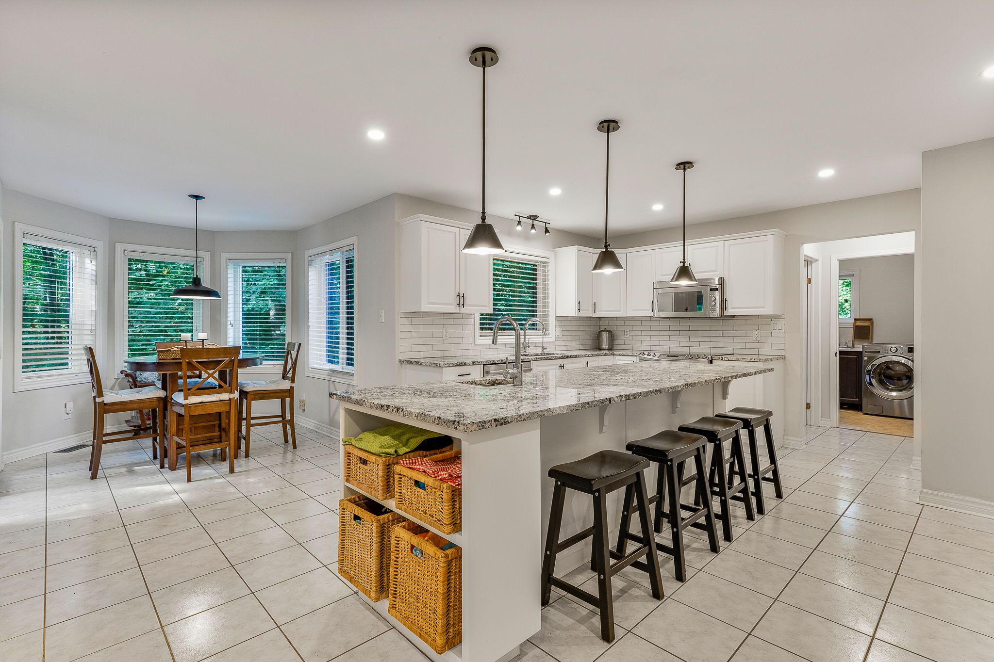 This stunning princiotta-built bungalow set on an estate lot blends modern elegance, thoughtful design, and everyday comfort. A welcoming front porch leads into a bright open-concept main level filled with natural light, freshly painted walls, and beautifully re-stained floors. The inviting living room showcases a cozy gas fireplace and flows seamlessly into the chef's kitchen - a true showpiece featuring granite countertops, stainless steel appliances, a large center island, and abundant cabinetry. A sunlit breakfast nook with patio doors opens to the outdoors, while a private formal dining room is perfect for entertaining. An additional family room, convenient laundry area, and 2-piece bathroom complete the main living spaces. The home offers three main-floor bedrooms and three bathrooms, including a luxurious primary retreat with a walk-in closet and spa-inspired ensuite with heated floors. A well-appointed 4-piece bathroom serves the additional bedrooms, offering both comfort and convenience for family members and guests alike. The large basement provides endless opportunities to customize to your lifestyle. Outside, enjoy an interlock driveway, expansive yard with lawn sprinklers, mature trees, and a large covered deck ideal for relaxing or hosting. New triple-pane windows and a generac generator add peace of mind, while the double garage offers ample space and storage, along with two practical garden sheds. This greely gem delivers the perfect balance of charm, functionality, and space - a true forever home ready to welcome you.
