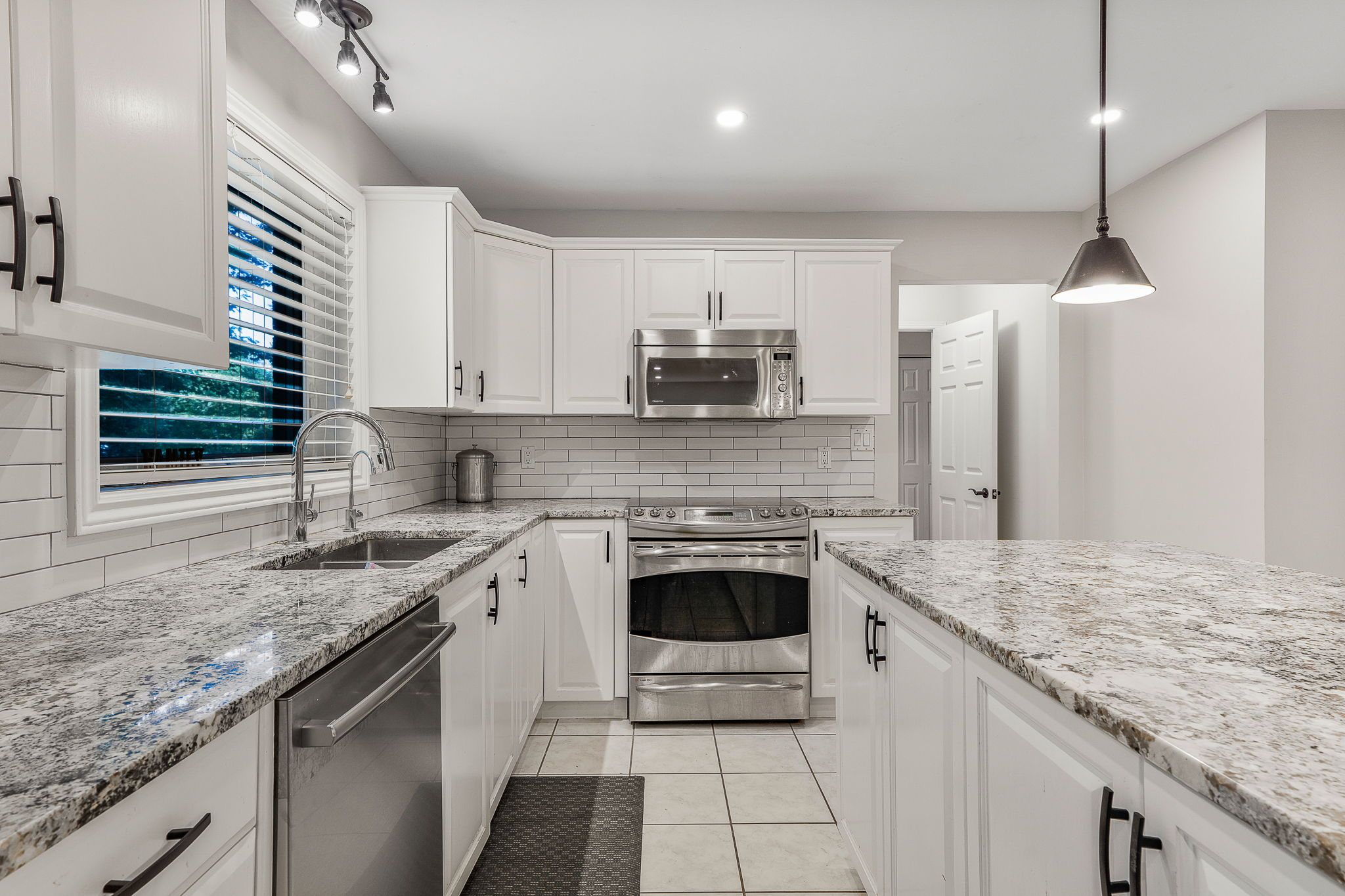 • Chef's kitchen features granite countertops and stainless steel appliances.