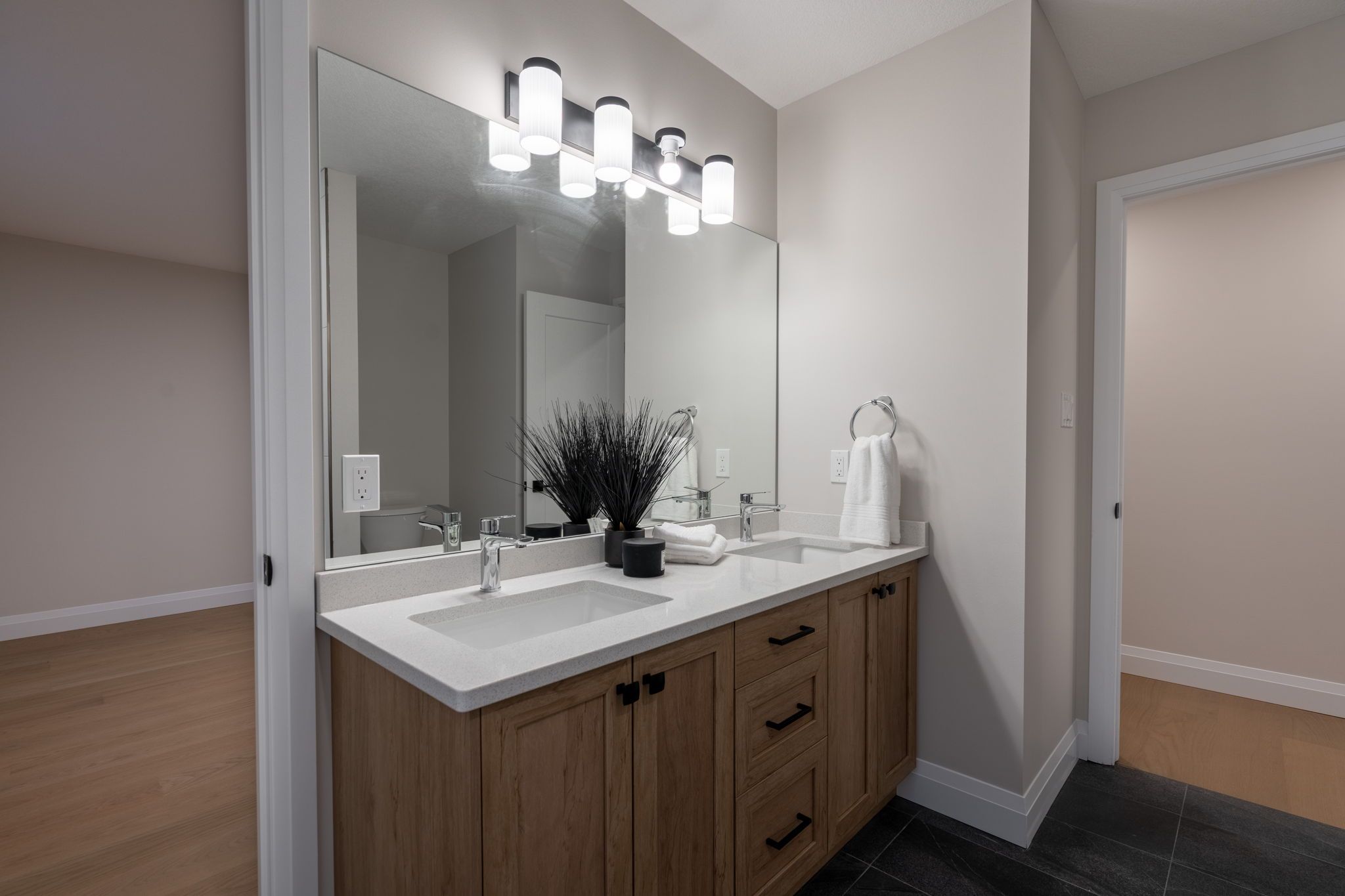 • Upgraded kitchen features quartz countertops and a large walk-in pantry.