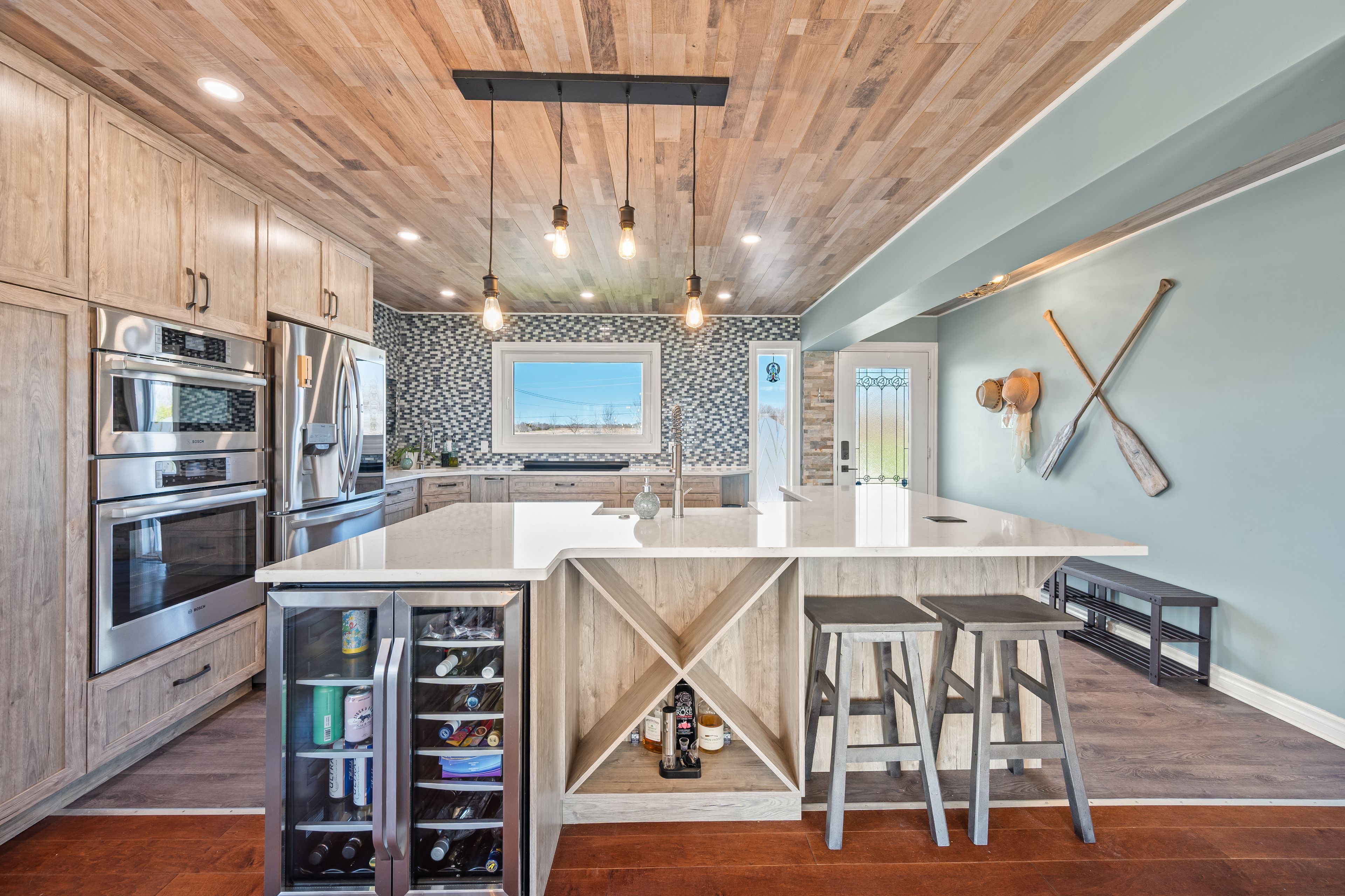 Nestled on approximately 2 acres of prime waterfront on hay bay, renowned as the world capital for walleye fishing, this beautifully maintained bungalow offers the perfect blend of tranquility and modern comfort just minutes from town. Built in 2010, this spacious 1,400 sq. Ft. Detached home features classic board and batten siding and a durable metal roof that is only one year old, combining charm with long term peace of mind. Inside, you will find a bright and functional layout with 2 bedrooms and 2 bathrooms, ideal for year round living or a relaxing waterfront retreat. The property also includes a detached garage, a paved driveway, and expansive outdoor space perfect for entertaining, relaxing, or enjoying the stunning natural surroundings. Adding exceptional versatility, the 1,400 sq. Ft. Quonset hut includes a heated office with a wood stove, making it ideal for a workshop, home business, or hobby space. The property is also equipped with a full generator hookup, offering added convenience and peace of mind. Whether you are an avid angler, nature lover, or simply seeking a quiet escape close to amenities, this property delivers. Experience waterfront living at its finest with privacy, space, and unbeatable access to one of ontario's most sought after fishing destinations.