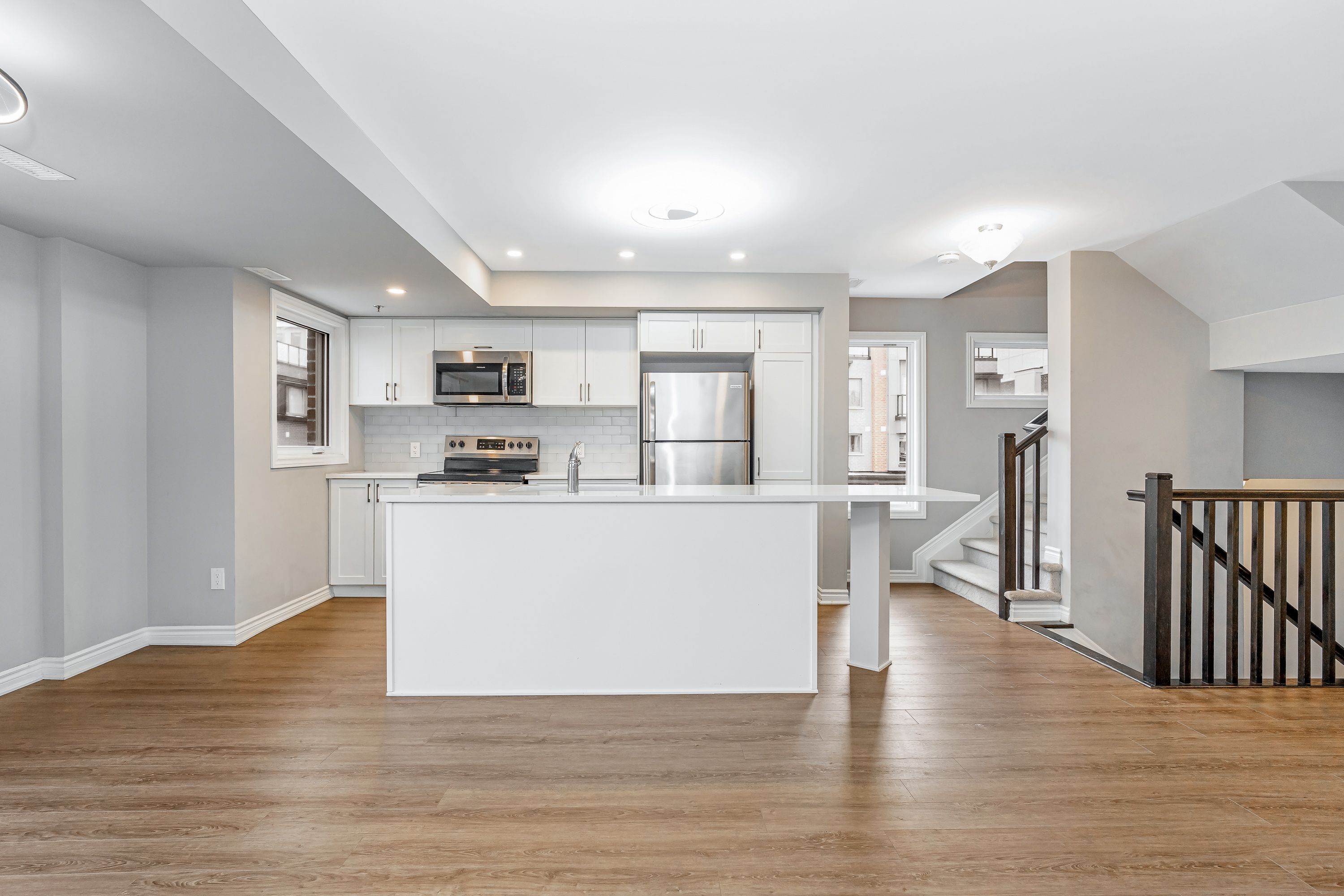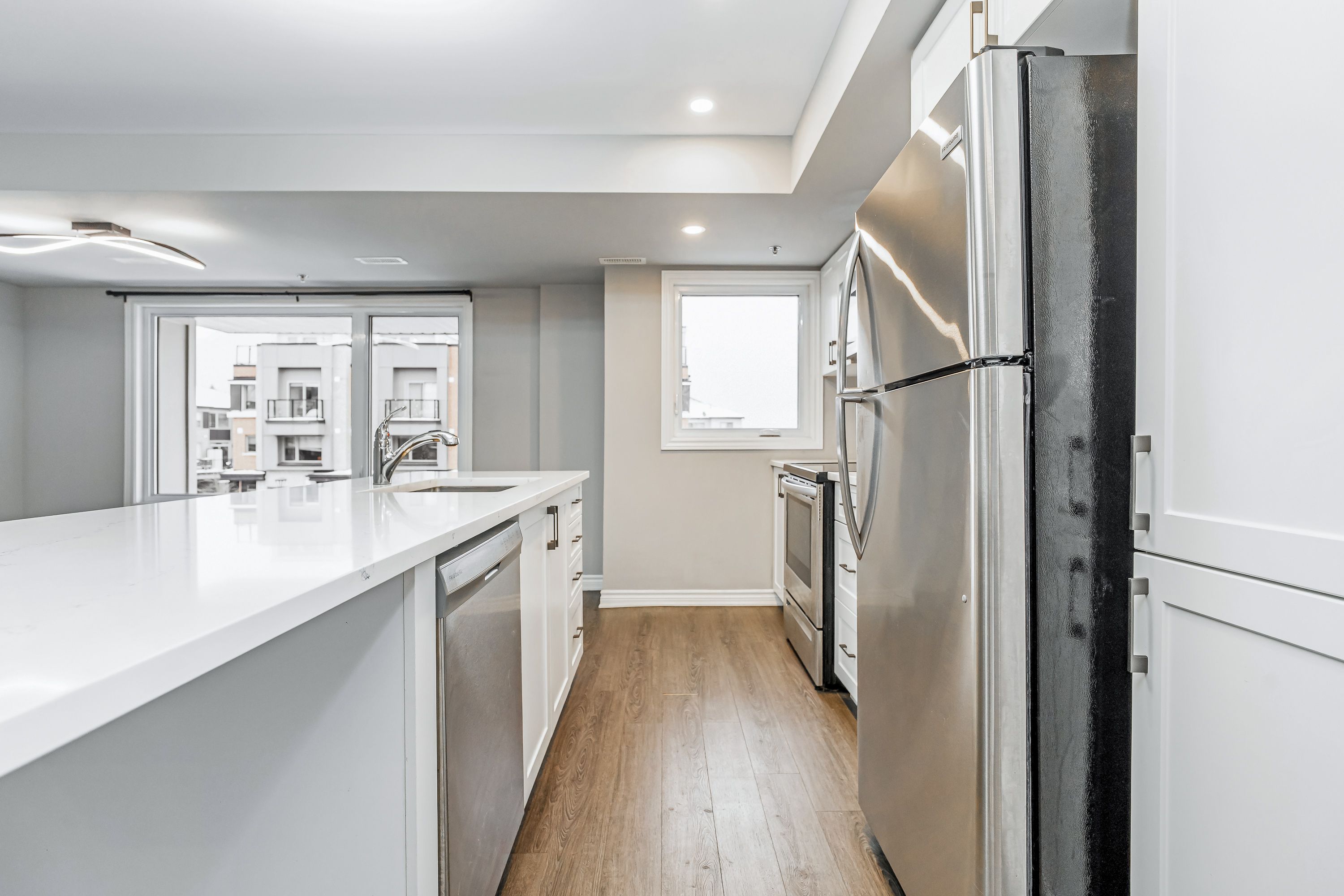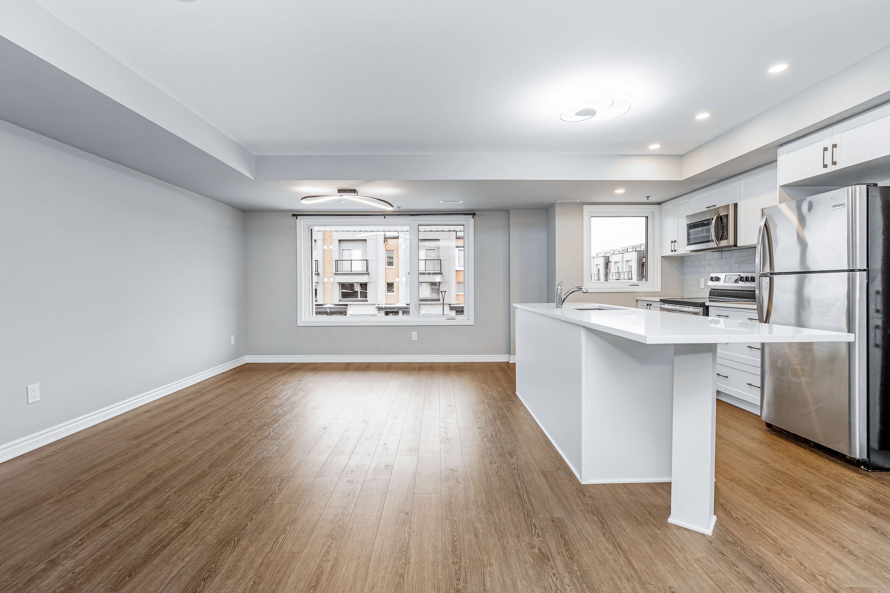 Welcome to 635 makwa private, a stunning end unit upper stacked townhome in the community of wateridge village. Step inside and you are greeted by a spacious foyer that leads you up to the main living space. On the second floor, the home opens into a generous and sun filled living and dining area. Large windows bring in natural light throughout the day, creating an open and welcoming atmosphere. The modern kitchen overlooks the entire space and features spacious cabinetry, quartz countertops, stainless steel appliances, and a large island. A convenient powder room is also located on this level. Continue to the third floor, where both spacious bedrooms offer excellent sunlight. The primary bedroom includes its own private balcony, ideal for enjoying a quiet moment outdoors. This level also offers a five piece bathroom along with a convenient laundry room. Make your way up to the private rooftop terrace, providing a generous outdoor living space with views over the neighbourhood. Perfect for relaxing, entertaining, or enjoying warm summer evenings. The home includes one outdoor parking spot and is located in a community known for its accessibility. Wateridge village is close to montfort hospital, the ottawa river pathways, beechwood village, st laurent shopping centre, gloucester centre, blair lrt station, costco, and major federal campuses including nrc, csis, cse, and cmhc. Full rental application, employment verification, 2 recent pay stubs, deposit and credit check required. No smoking.