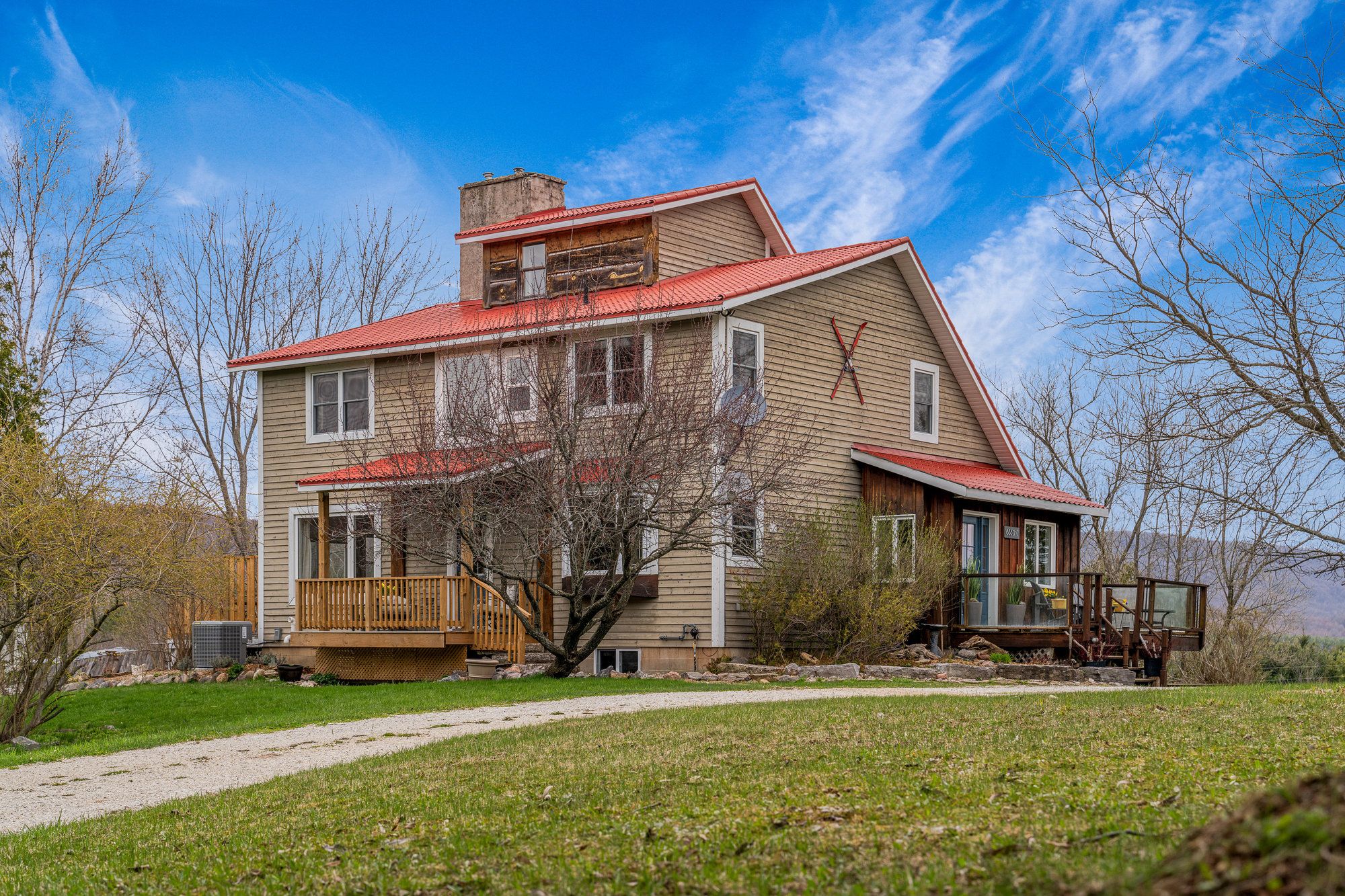 Tucked away in the heart of the scenic pretty river valley, this beautifully maintained country home offers a rare blend of privacy, character, and year-round outdoor adventure. Set on a full acre and surrounded by the pretty river provincial park, its a nature lovers dream with hiking and biking right at your doorstep. Easy drive to devil's glen or osler bluff ski clubs, highlands nordic and duntroon highlands golf. The home itself radiates warmth and comfort, featuring 5 bedrooms, multiple living spaces, and spectacular views from every room. Vaulted ceilings, a wood stove, and expansive windows create a cozy yet open feel, while recent updates including a new uv system and iron filter ensure peace of mind. Enjoy serene mornings by the pond, valley views from the hot tub, and a loft space ideal for a studio or quiet retreat. A truly special property that must be experienced in person to be fully appreciated.