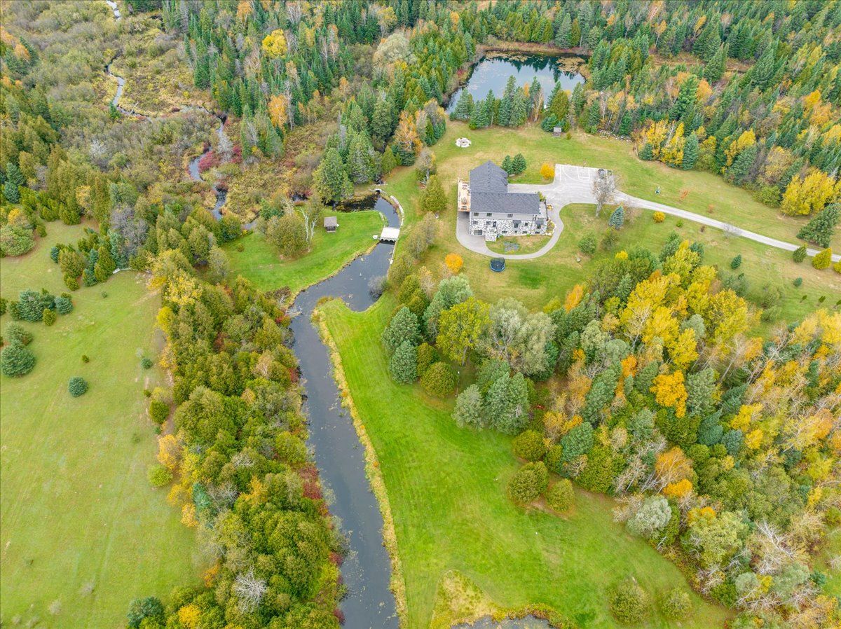 Client remarksparadise awaits you...... Modern finish, picturesque streams and ponds, in-law suite, full gym and a private primary suite all on 49. 25 acres * this custom built 5+1 bedroom home sits on your own park like property. Custom built home built in 2021 w/tarion new home warranty. Drive down a long winding drive to home which is set back from the road for ultimate privacy. Over 5800 sq ft of living space perfect for a large family. Main floor features vaulted ceiling in kitchen and great room, 4 bedrooms and laundry. Massive custom kitchen with banquette island, 48" gas range and 48" refrigerator, beverage fridge and built in pantry. Hardwood floors and wood trim thru-out, each bedroom has a walk in closet and ensuite bath. Second floor master suite with vaulted ceilings with access to a large patio. Home equipped with generac generator and ev charger. New underground 400 amp electrical service to property, 200 amp to home, 200 amp remaining for potential outdoor building (drawings previously approved by nvca)client remarks **extras** premium jennair appliances : 48 inch fridge, 48 inch range stove, 48 inch exhaust fan, built in microwave oven, beverage fridge, basement fridge, stove & built in microwave/exhaust fan, 3 washers, 3 dryers, generac generator, ev charger