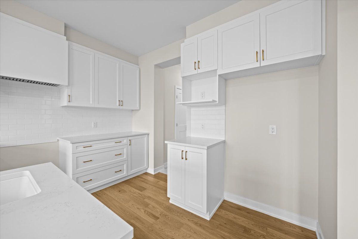 • Bright kitchen with quartz countertops and ample cabinets for storage.
