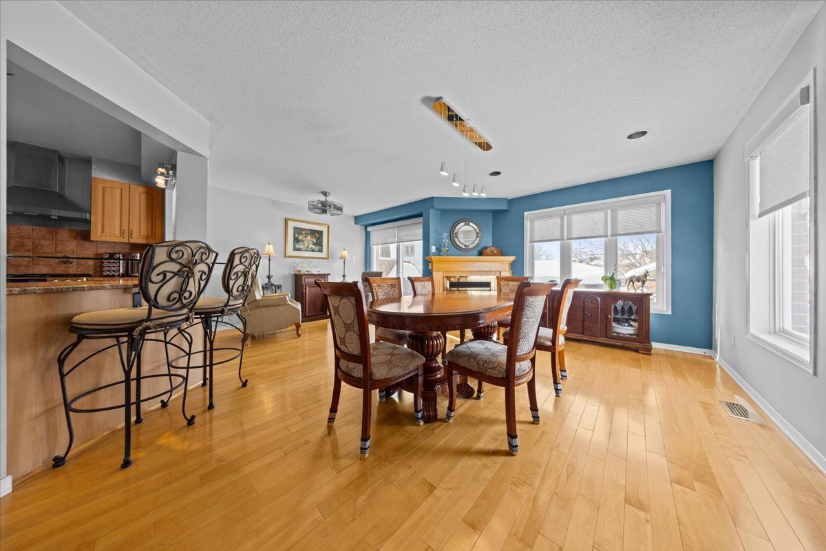 Immaculate turnkey end unit townhome located on a premium lot in the desirable neighbourhood of chapel hill, orleans. Classic brick exterior w/ interlock walkway leading to covered front porch. Functional and spacious kitchen w/ granite countertops, glass-top breakfast bar, sleek stainless steel appliances including gas stove top, ample cabinet space and pull out drawers, ceramic tile flooring. Open concept living and dining room w/ hardwood flooring, cozy gas fireplace, recess pot lights, large windows flooding the space w/ natural light. Spacious tiled front entryway. First floor complete w/ 2 piece powder room w/ upgraded vanity and interior access to the garage w/ durable epoxy-flooring. Striking full hardwood staircase to the second floor. 3 generously sized bedrooms upstairs. Primary w/ california shutters, large walk-in closet w/ custom shelving and accessed through elegant double glass doors. 4 piece luxury ensuite w/ in floor heating, soaker tub, spa-inspired walk-in shower w/ rainfall showerhead and elegant mosaic floor and custom vanity w/ granite countertops, vessel sink and ample storage. Additional second full bath w/ large vanity and bathtub w/ sliding glass door complete the second level. The fully finished basement includes a spacious rec room w/ gas fireplace, hardwood flooring and an oversized window. You'll also find the laundry on the lower level as well as plenty of storage space. Enjoy a fully fenced, private backyard featuring durable pvc fencing, a spacious deck with two gazebos, an interlock landing ideal for a bistro table and chairs. Additional side-yard space with a shed offers storage and added functionality. Irrigation system throughout front and back! Conveniently located near parks, schools, grocery stores and all amenities, this home is ideal for first time home buyers and growing families.