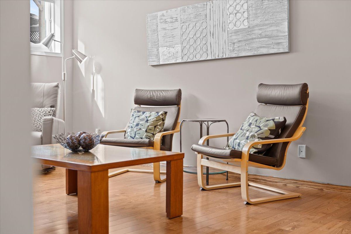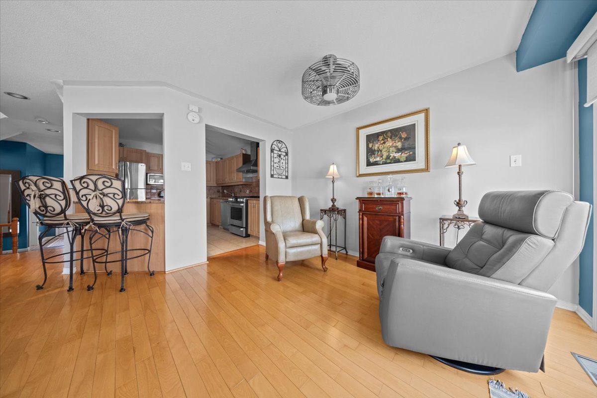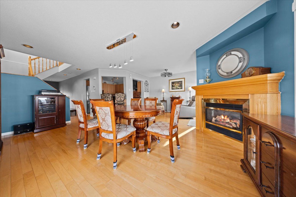 • Open living and dining area with hardwood flooring and a cozy gas fireplace.