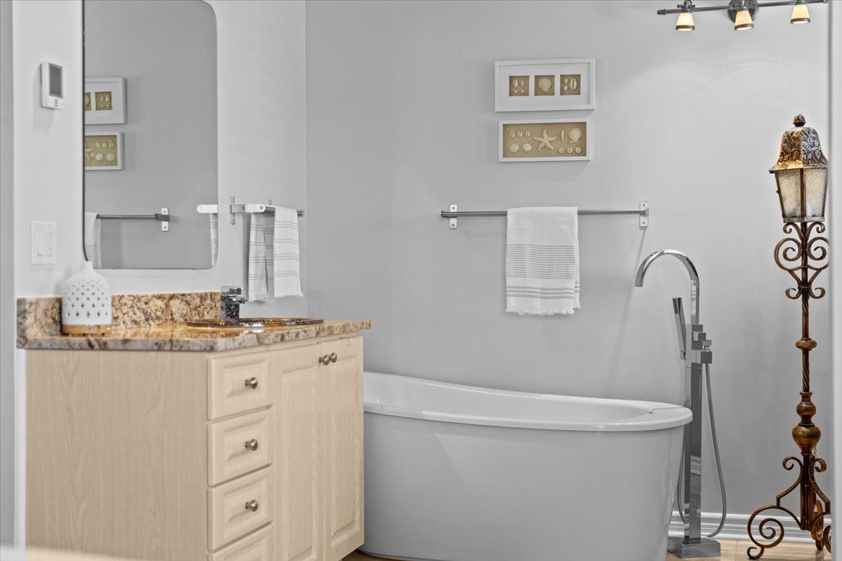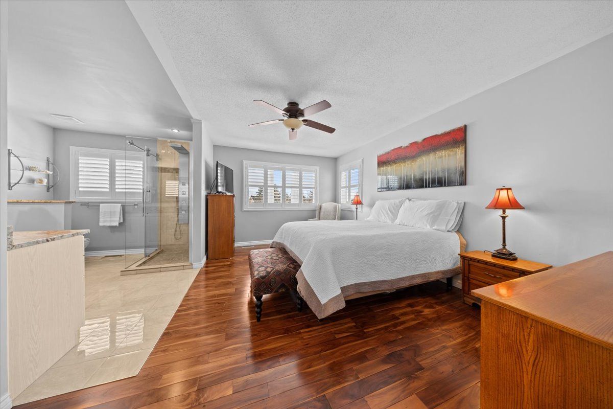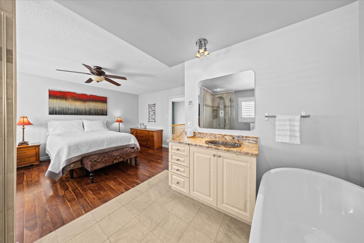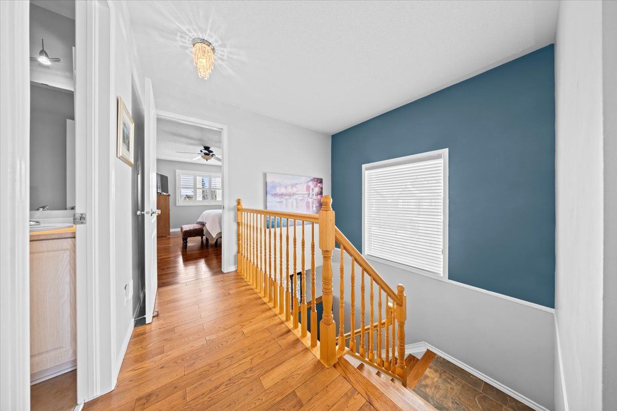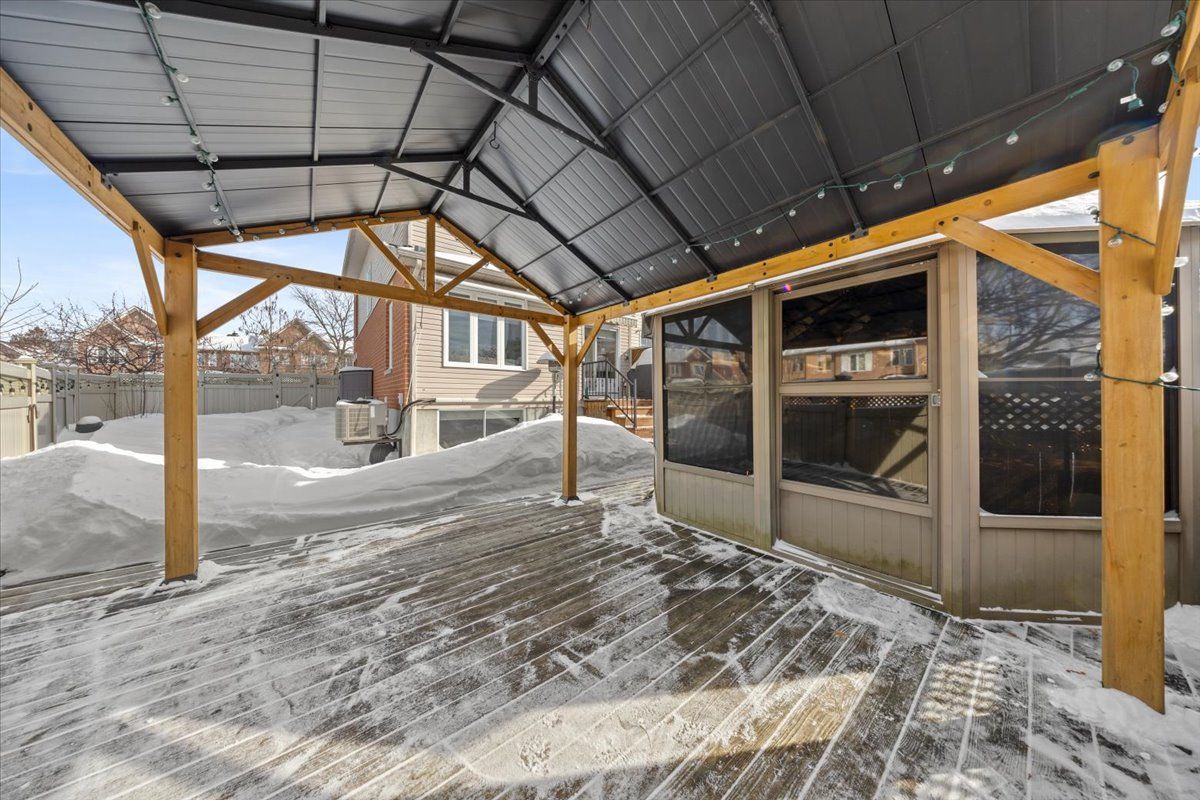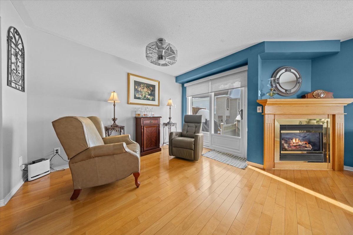 Immaculate turnkey end unit townhome located on a premium lot in the desirable neighbourhood of chapel hill, orleans. Timeless brick exterior w/ interlock walkway leading to covered front porch. Functional and spacious kitchen w/ granite countertops, glass-top breakfast bar, premium stainless steel appliances including gas stove top and counter-depth french-door refrigerator, ample upgraded cabinetry and pull out drawers, ceramic tile flooring. Open concept living and dining room w/ rich oak hardwood flooring, cozy gas fireplace, recess pot lights, large windows flooding the space w/ natural light. Custom window treatments. Spacious tiled front entryway. First floor complete w/ 2 piece powder room w/ upgraded vanity. Interior access to the garage w/ durable epoxy-flooring. Striking full hardwood staircase to the second floor. 3 generously sized bedrooms upstairs. Primary w/ california shutters, large walk-in closet w/ custom shelving and accessed through elegant double glass doors. 4 piece luxury ensuite w/ in floor heating, soaker tub, spa-inspired walk-in shower w/ rainfall showerhead and elegant mosaic floor and custom vanity w/ granite countertops, vessel sink and ample storage. Additional second full bath w/ large vanity and bathtub w/ sliding glass door complete the second level. The fully finished basement includes a spacious rec room w/ gas fireplace, hardwood flooring and an oversized window. You'll also find the laundry on the lower level as well as plenty of storage space. Designed for low maintenance and outdoor enjoyment, enjoy a fully fenced, private backyard featuring durable pvc fencing, a spacious deck with two gazebos, an interlock landing ideal for a bistro table and chairs. Additional side-yard space with a shed offers storage and added functionality. Irrigation system throughout front and back! Conveniently located near parks, schools, grocery stores and all amenities, this home is ideal for first time home buyers and growing families.