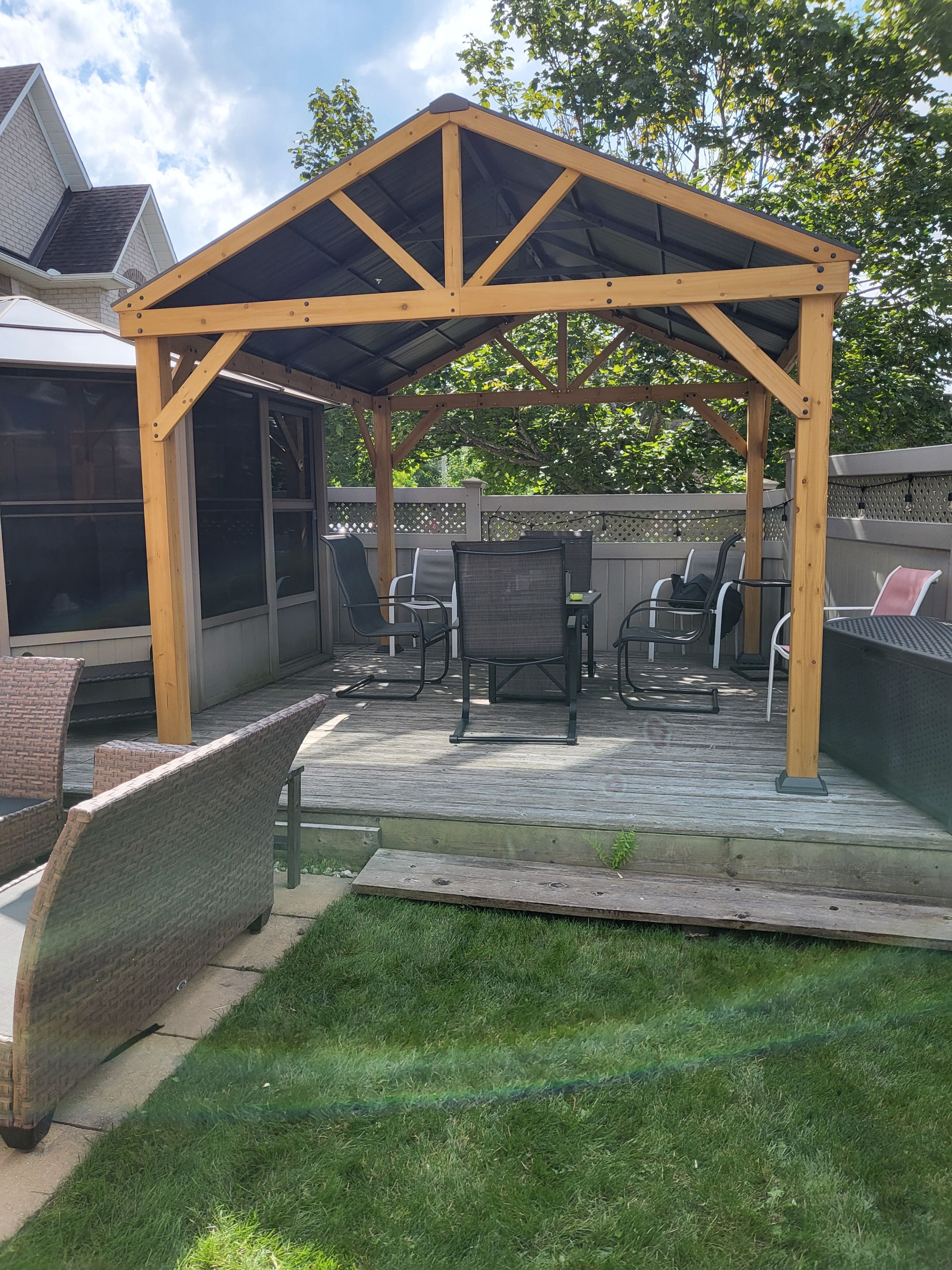 • Private backyard with a deck, gazebos, and a convenient irrigation system.