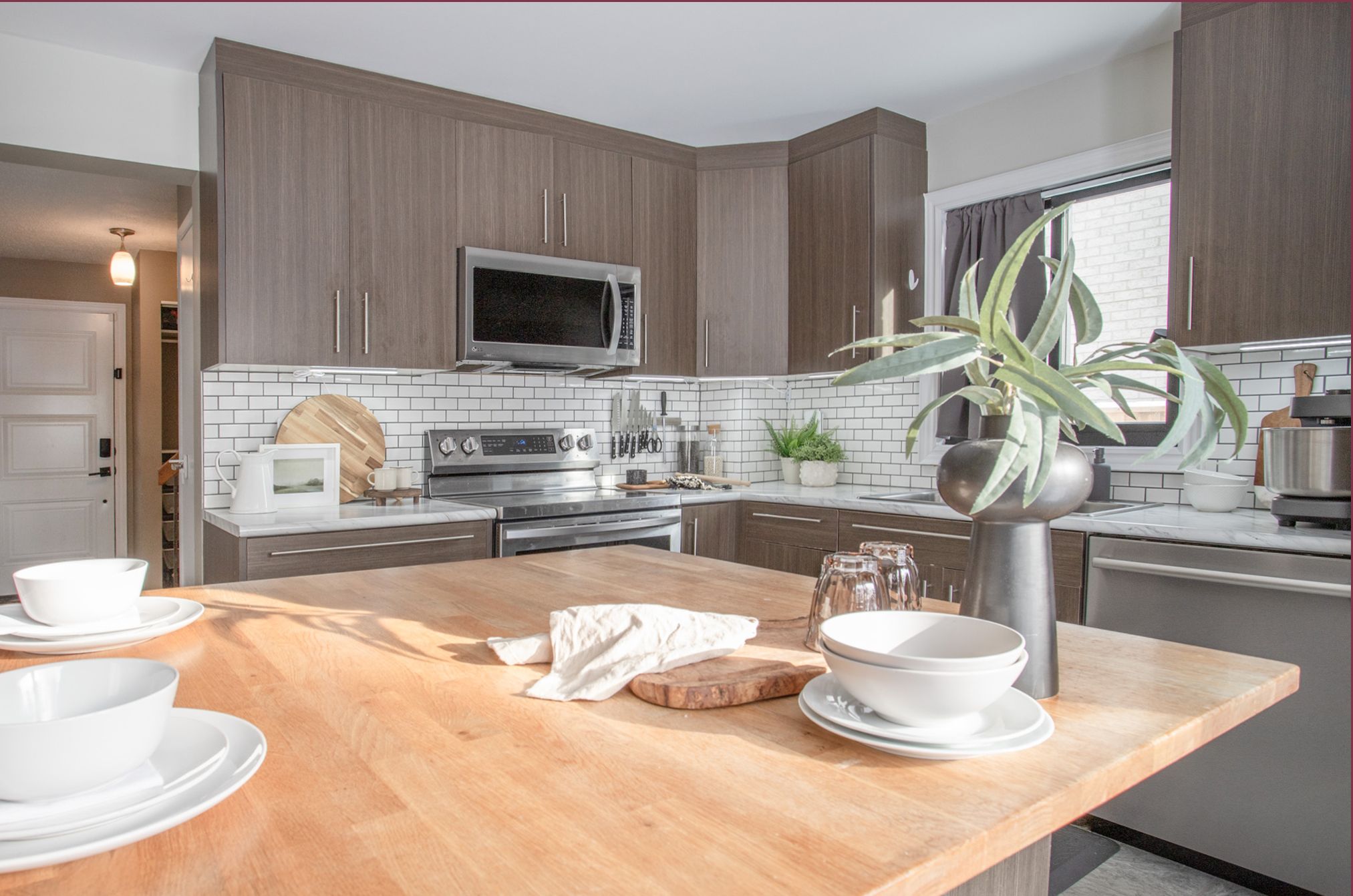 • Functional kitchen with modern appliances and backyard access.