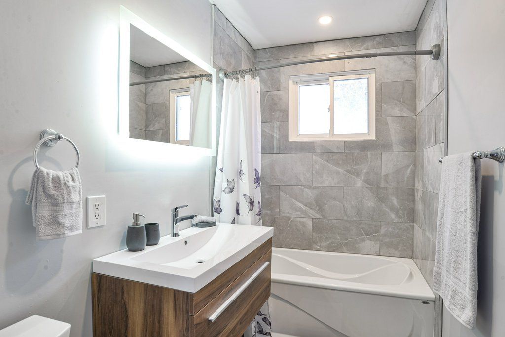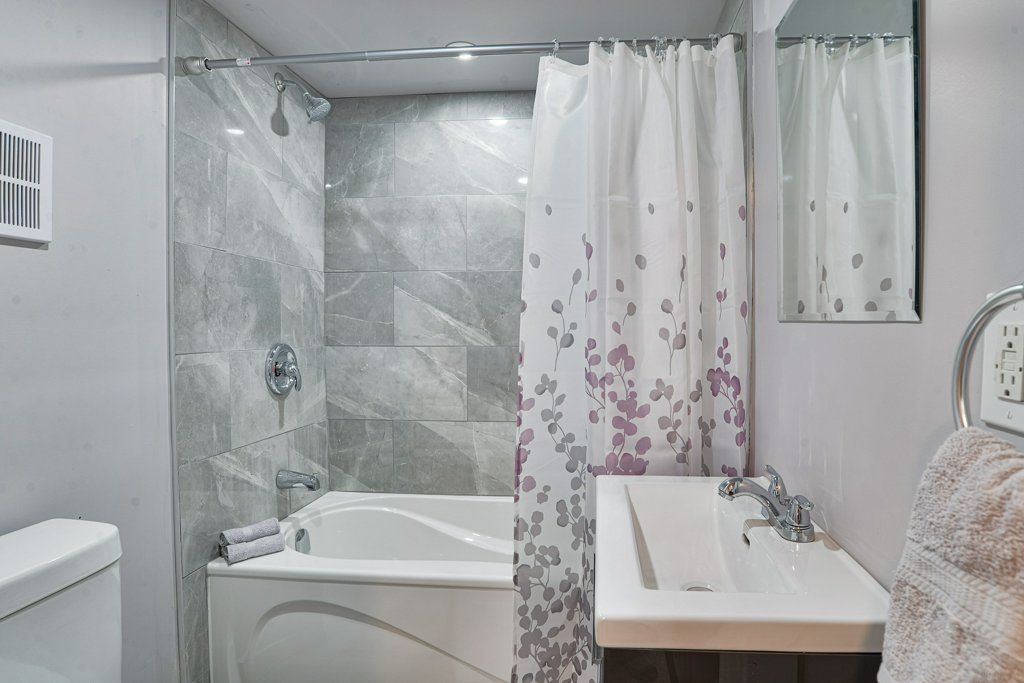 • Finished basement with gas fireplace and new bathroom.