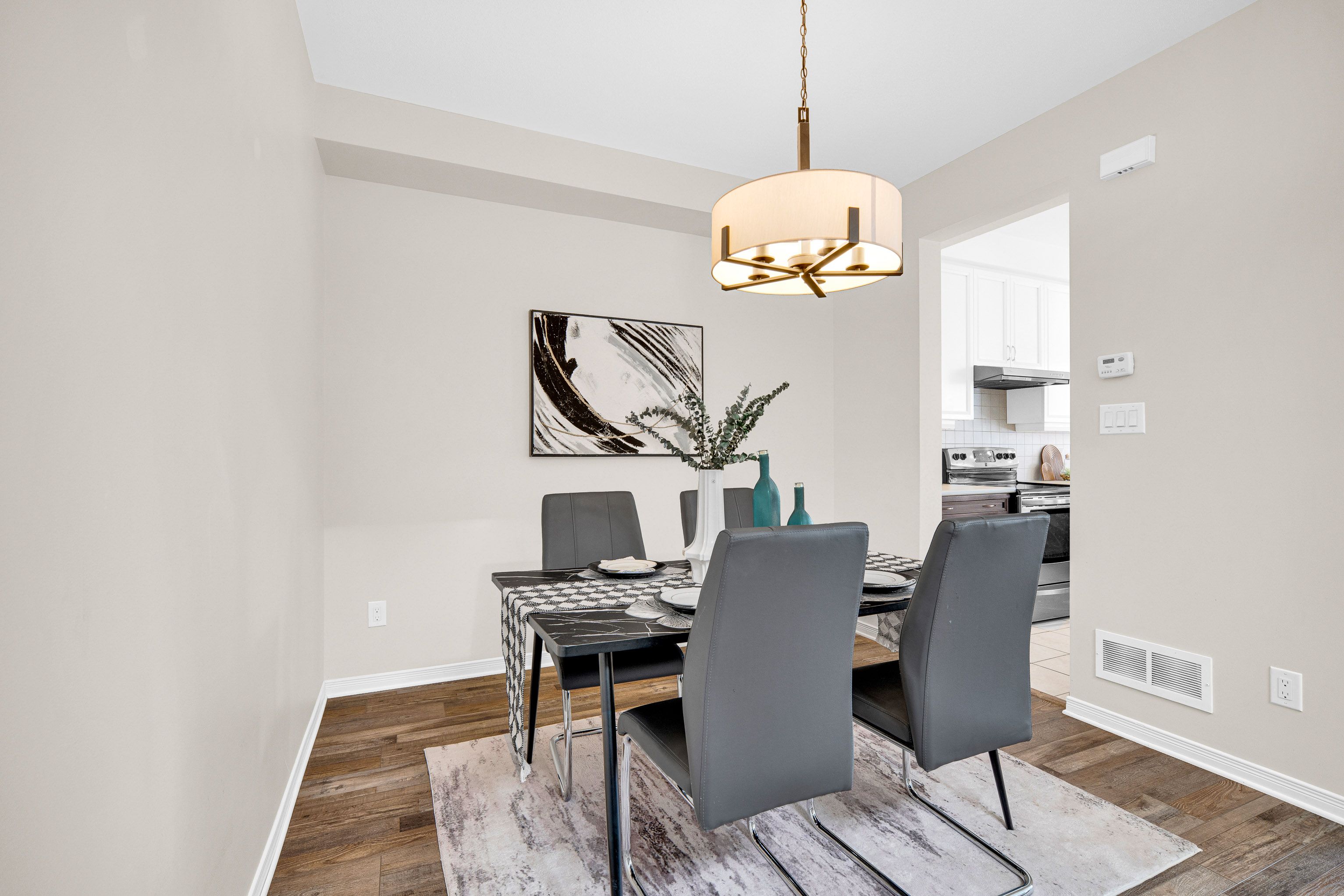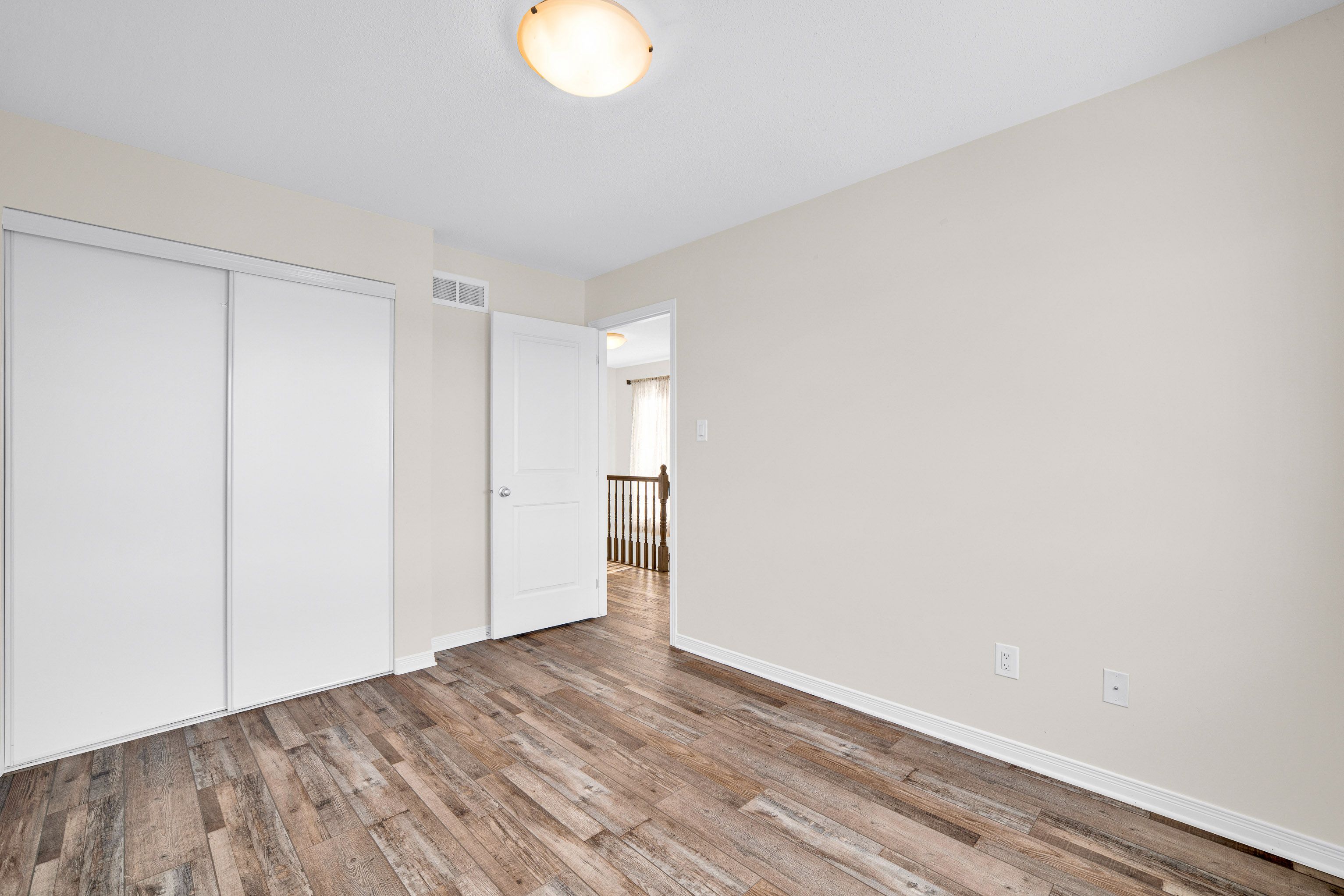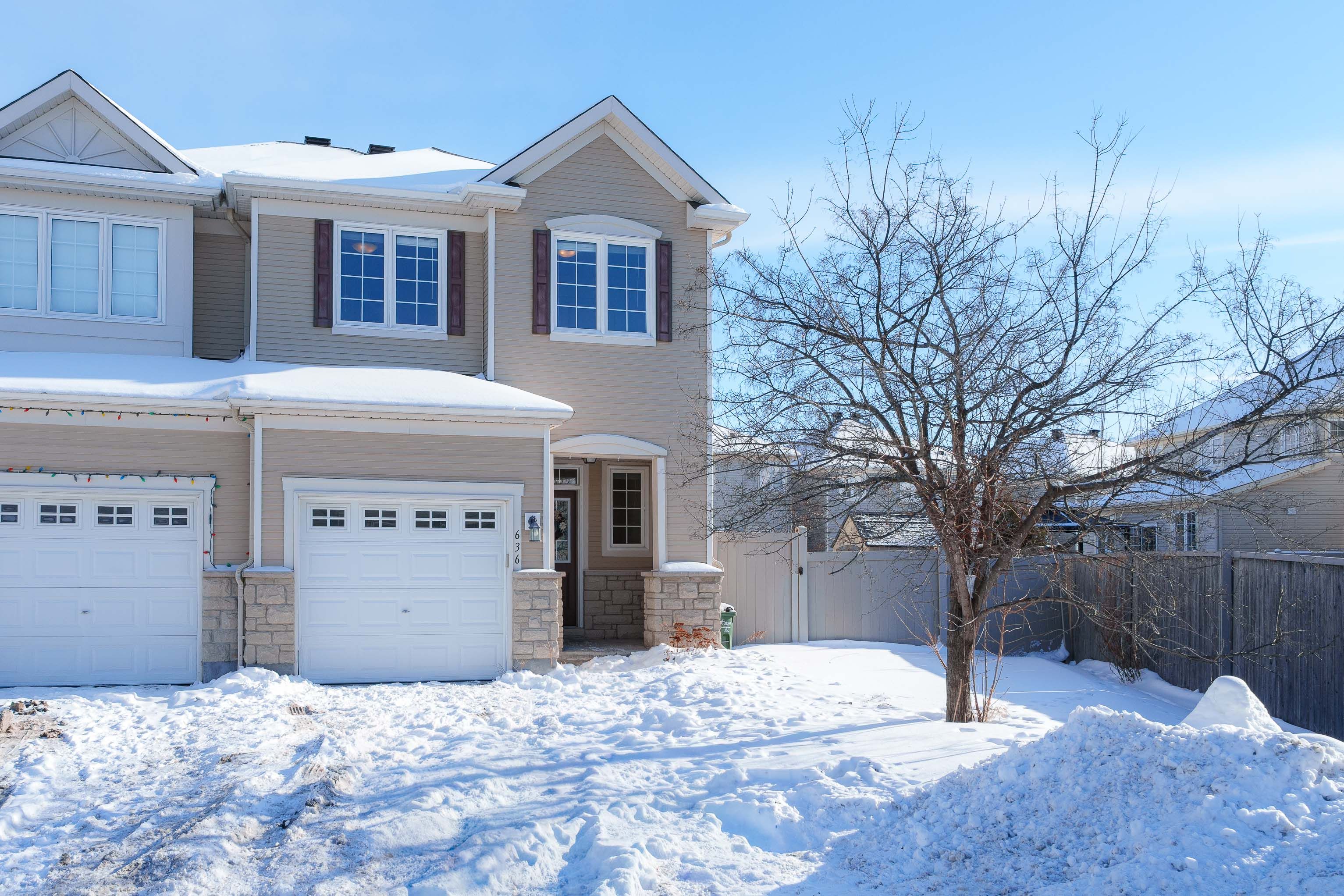 Elegant upgraded end-unit townhome nestled at the absolute end of a quiet, child-friendly street in the heart of prestigious stonebridge! This prime location offers unparalleled privacy with no through traffic, creating a peaceful sanctuary and a safe environment for children to play freely. Upon entering, the functional foyer greets you with a rare, spacious walk-in closet-perfect for organized family storage. The bright, open-concept main floor features 9-foot ceilings that enhance the natural light and airy feel of the home. Modern luxury vinyl plank (lvp) flooring flows seamlessly across both the main and second levels, offering a stylish, carpet-free, and high-durability finish for active lifestyles. The gourmet kitchen is equipped with stainless steel appliances, leading directly to a massive, fully fenced backyard. As one of the largest lots for an end unit, this sprawling outdoor space is a private oasis perfect for gardening, hosting large summer gatherings, or safe outdoor play. The second level continues to impress with a grand primary suite behind elegant french doors, boasting two walk-in closets and a spa-like ensuite featuring a jacuzzi tub and oversized shower. Two additional generously sized bedrooms and a convenient laundry room complete the upper floor. The professionally finished lower level provides a versatile recreation room bathed in sunlight, anchored by a cozy gas fireplace, with a rough-in for a future bathroom. Within walking distance to the minto recreation complex, top-rated schools, and lush parks, this home combines executive style with the ultimate neighborhood location. A true gem that must be seen to be appreciated!