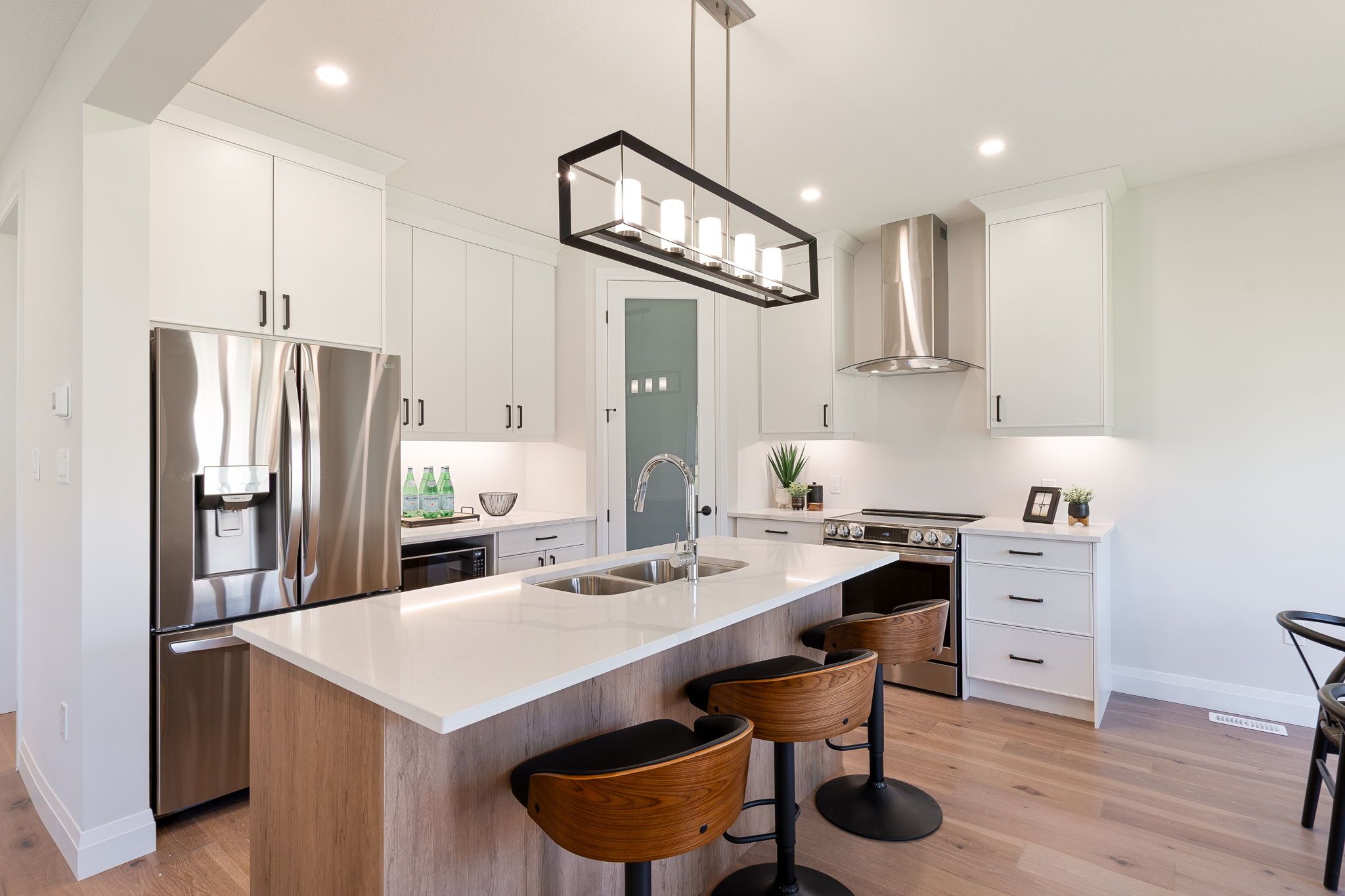 • Rich hardwoods, ceramic tiles, and quartz or granite finishes included.