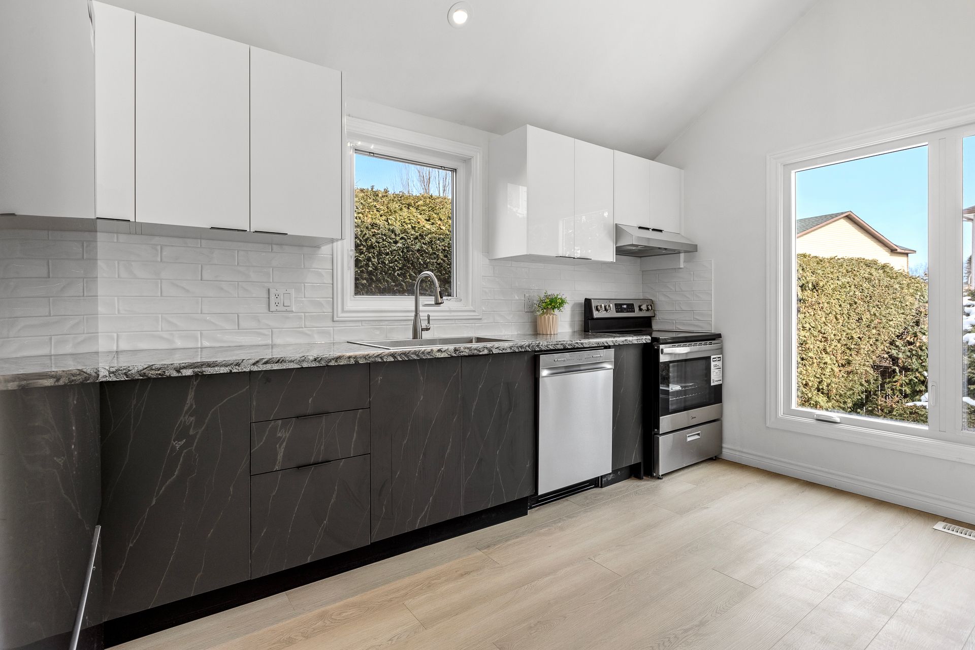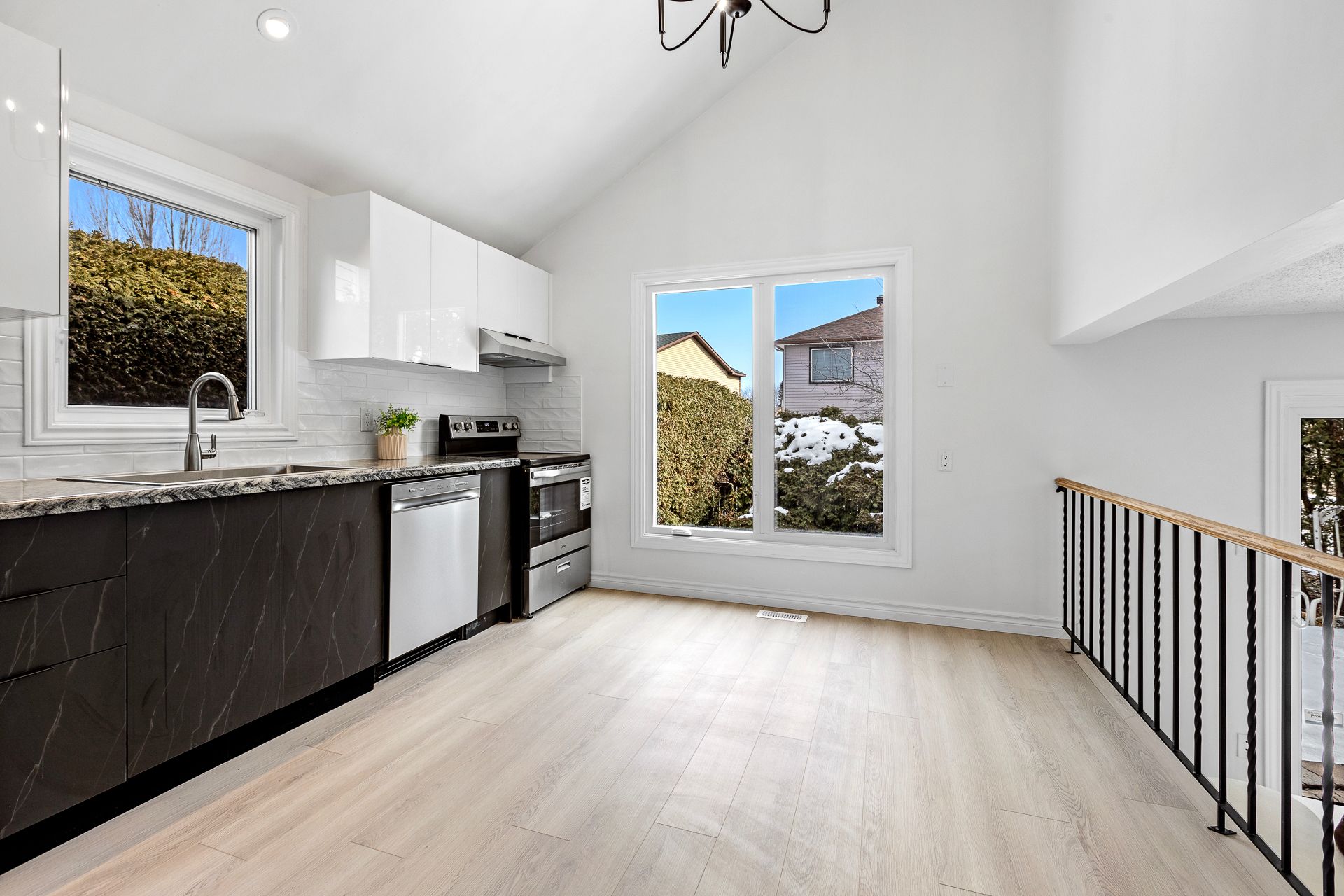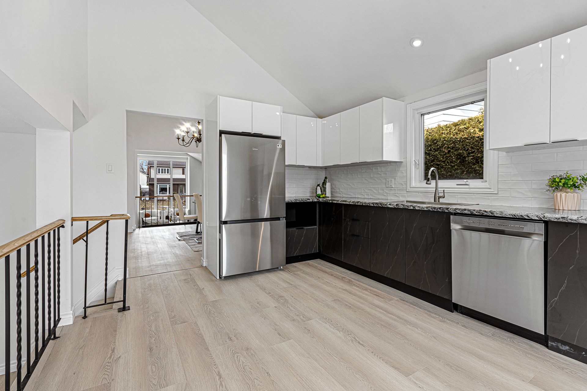• Redesigned kitchen featuring contemporary finishes and updated cabinetry.