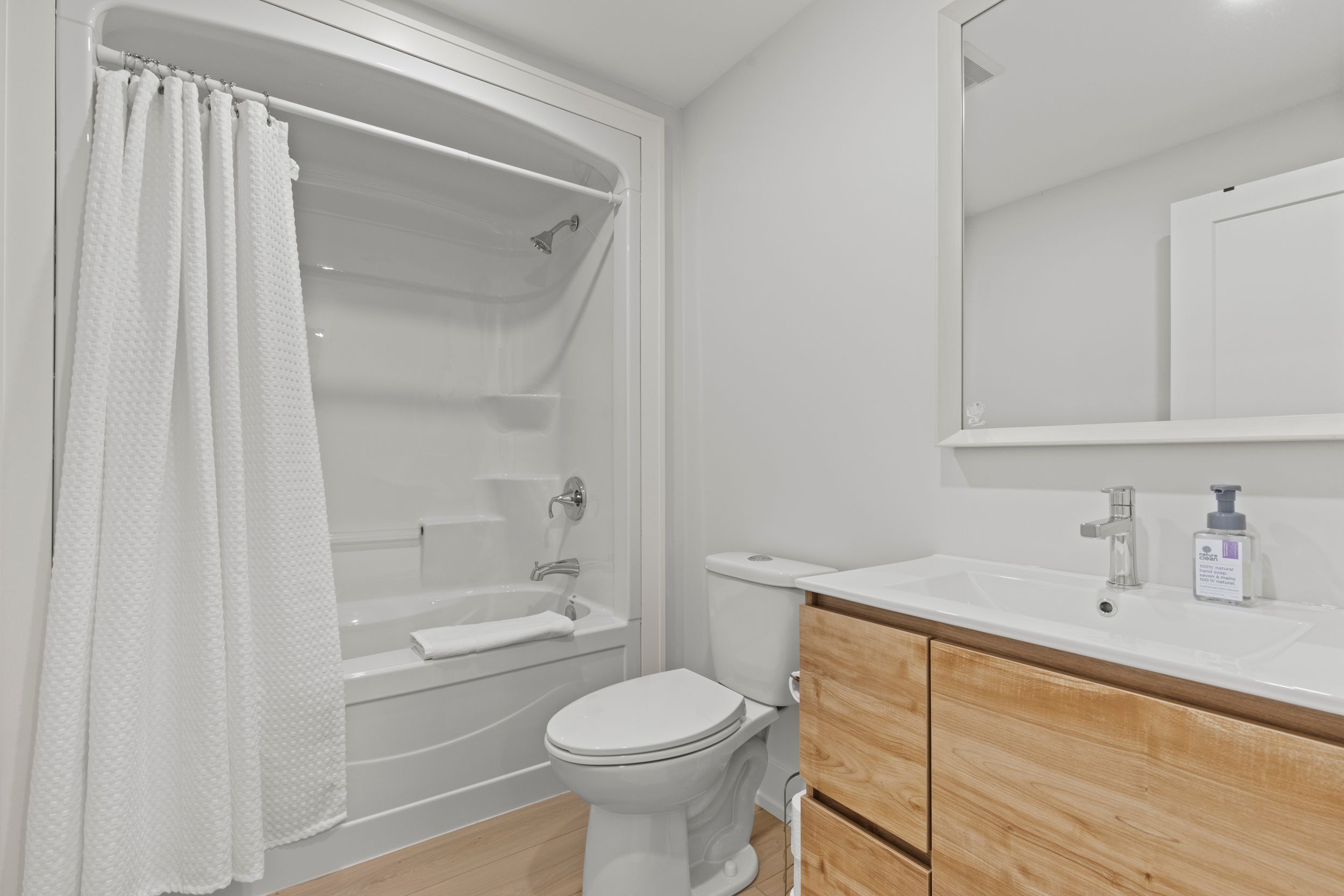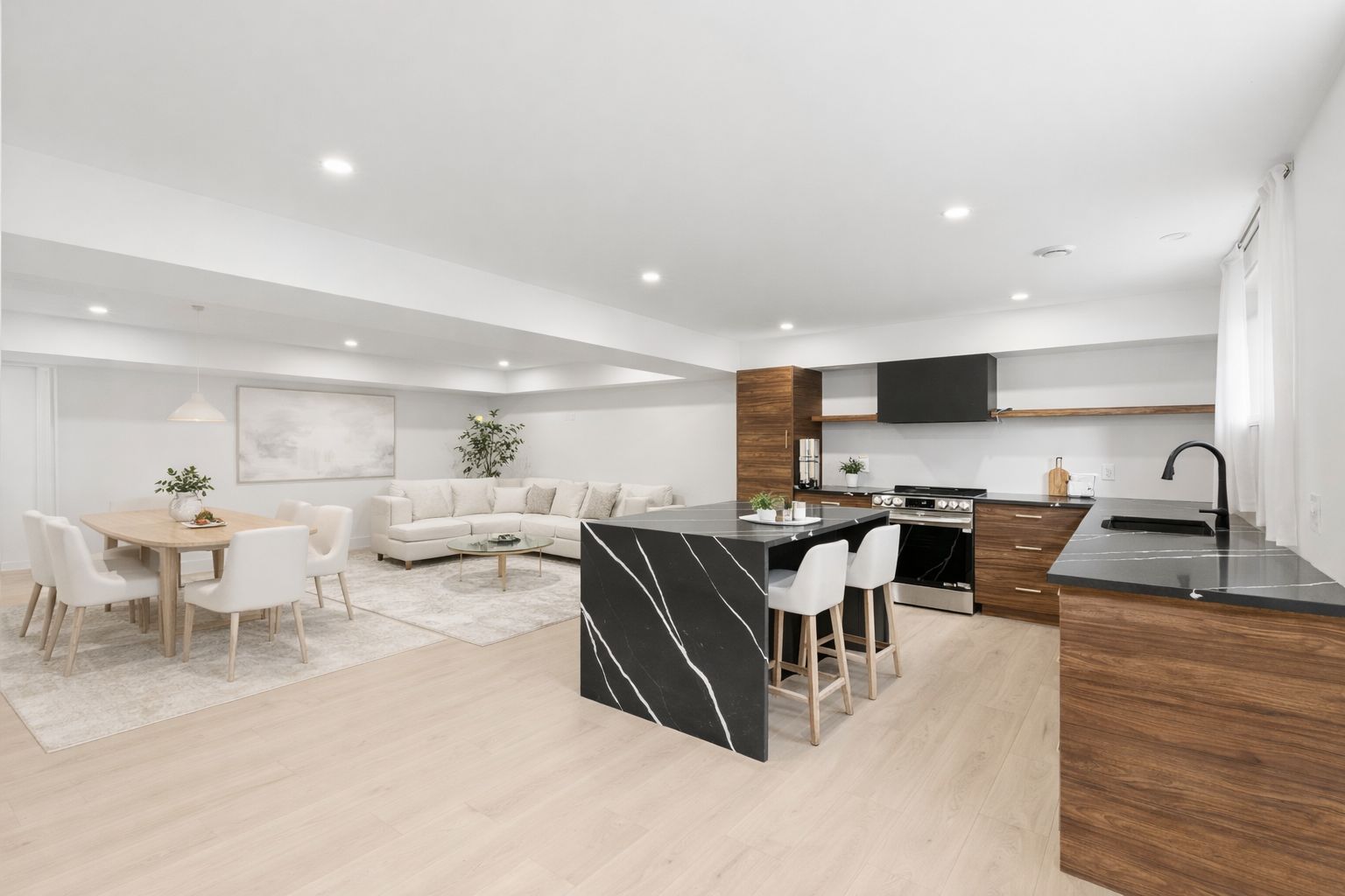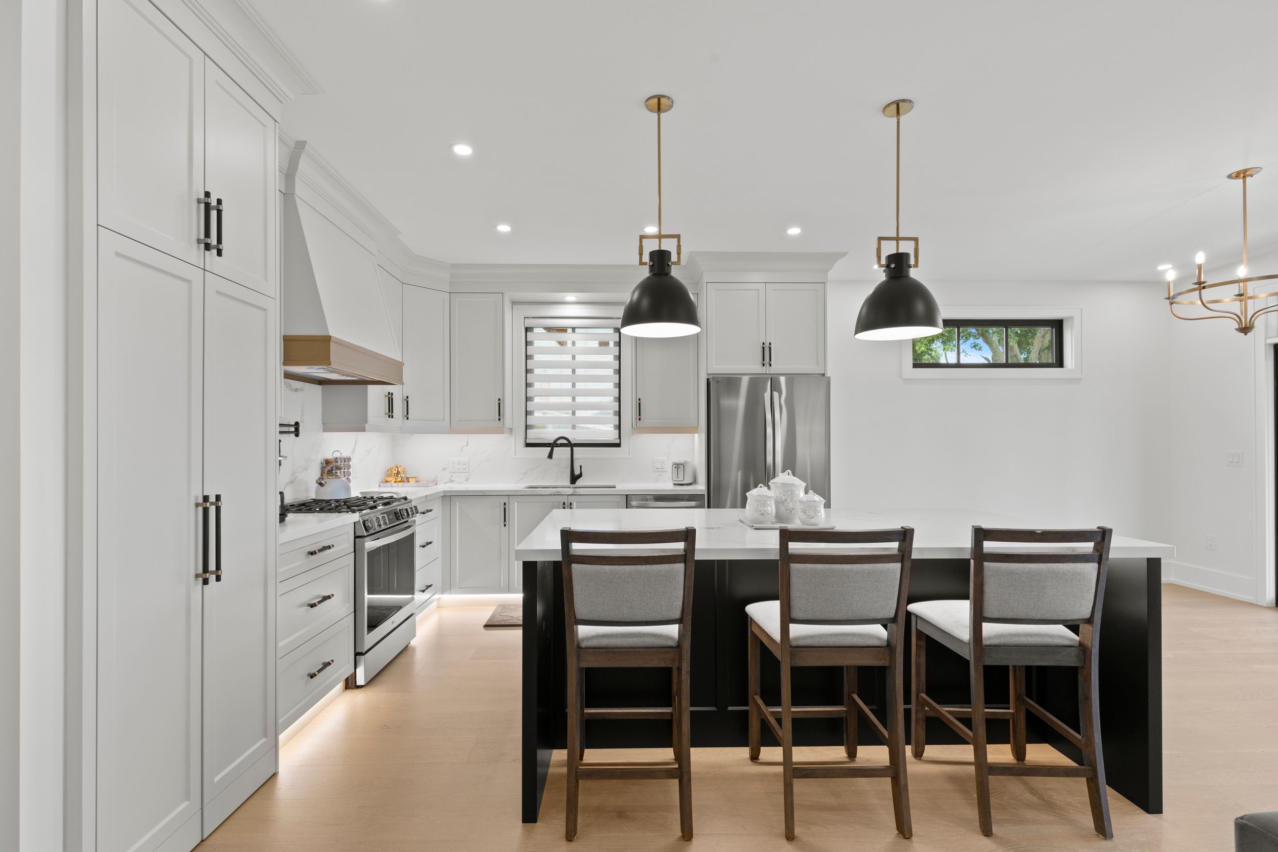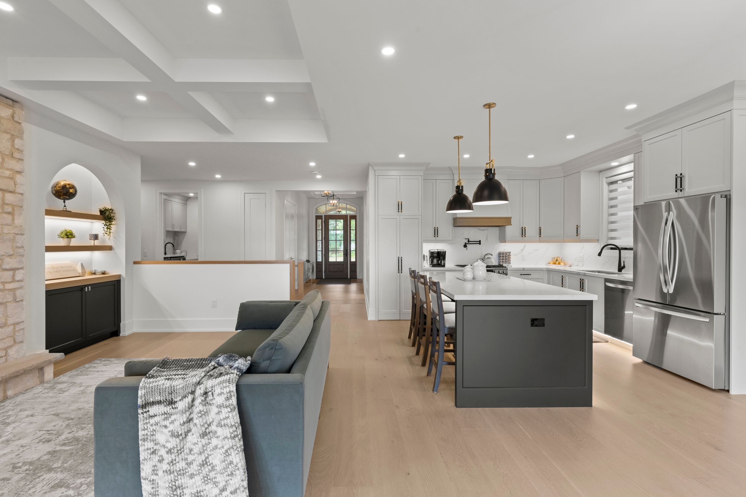 • High-end finishes, including stone countertops and built-in cabinetry.
