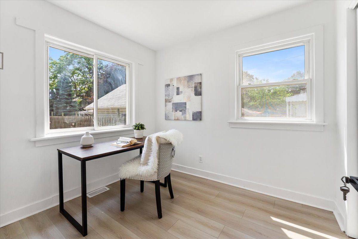 • Three spacious bedrooms upstairs, each with walk-in closets.