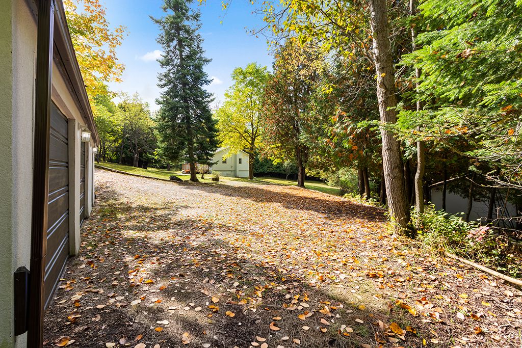• Spacious detached garage with additional workshop and storage areas.