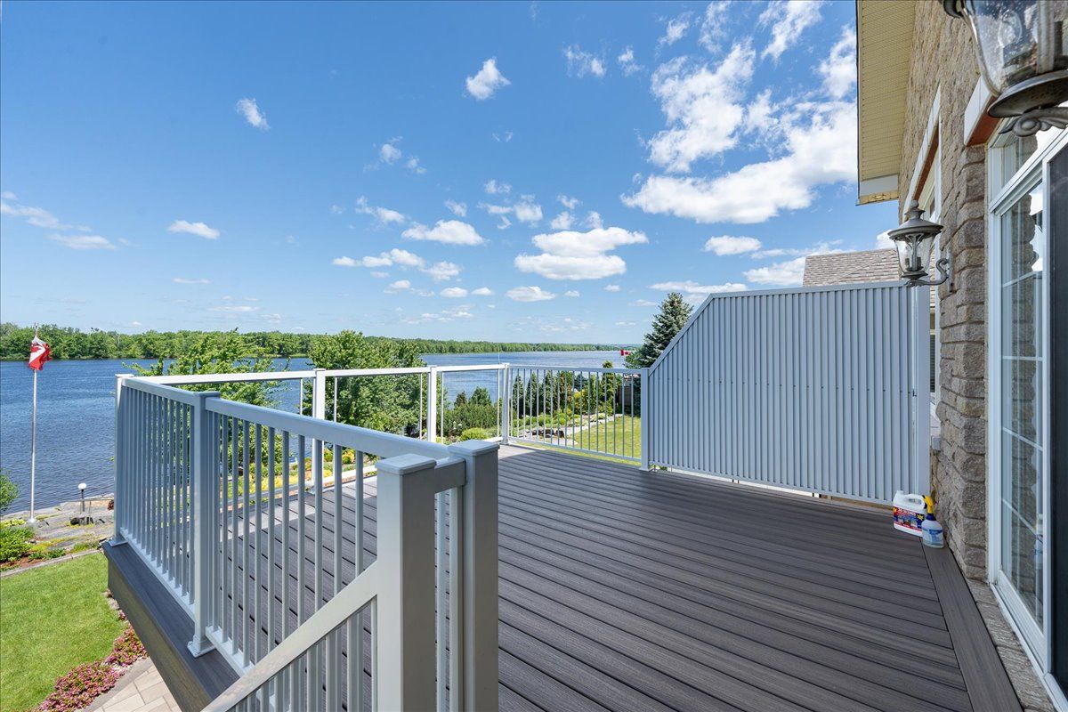 Tucked away on a cul-de-sac & backing directly onto a wide stretch of the ottawa river, this remarkable residence offers the perfect blend of luxury, convenience & serenity. Professionally landscaped & thoughtfully renovated, the property delivers a true waterfront experience while still offering suburban comfort. Whether you're sipping coffee on the balcony, watching the morning light dance across the water, or gazing at the forested shoreline on the opposite bank, every day here feels like a retreat. All 3 levels feature soaring 9-ft ceilings. From the white oak hardwood floors & marble fireplace to the custom laurysen kitchen & spa-inspired primary ensuite, every detail has been carefully considered. High-end jennair & lg appliances, full elevator, electric blinds, whole-home generac generator & irrigation system drawing from the river add both luxury & function. The main living area is anchored by a striking family room w/wall of windows framing the river. The adjacent chefs kitchen impresses w/sleek cabinetry, walk-in pantry, pendant lighting & premium appliances. The primary suite is a true sanctuary w/vaulted ceiling & sweeping water views. The ensuite rivals any spa, w/walk-in marble shower, soaker tub, double vanities & heated floors. 2 additional bedrooms each include their own ensuites. The walk-out basement is filled w/natural light. Ideal for a grandparent suite, guest retreat, or income potential, this level features a spacious bedroom w/3pc porcelain ensuite, full bar area, & direct outdoor access. The yard is both low maintenance & lush, designed in alignment w/rideau conservation authority guidelines. With 60ft of deeded waterfront + ownership of an additional 100ft extending into the river itself, the lot offers a rare combination of shoreline & submerged property w/lifetime permit in place. This extraordinary property is a rare offering in ottawa's east end. Detailed list of recent updates available upon request. Some photos virtually staged.