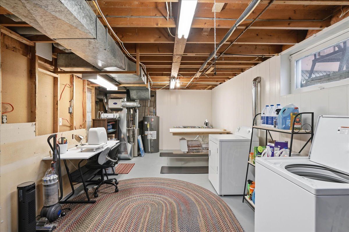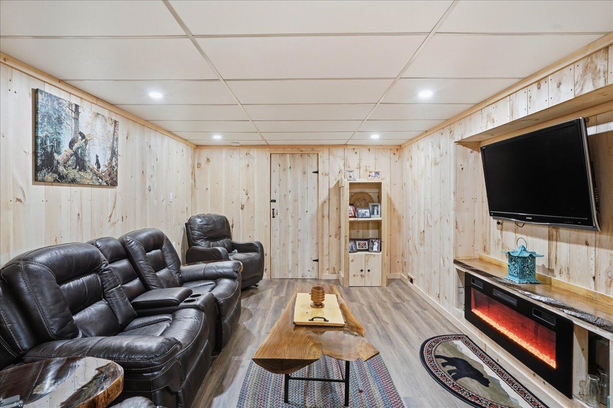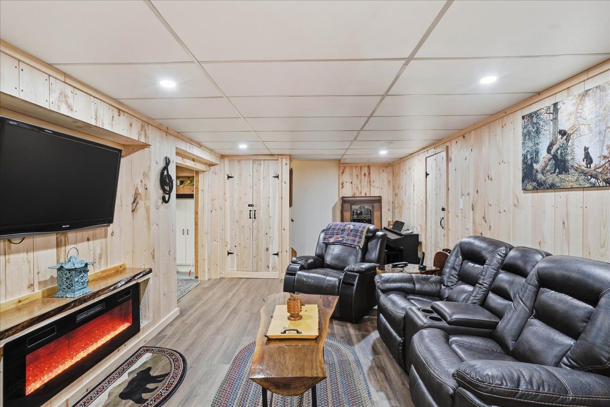 • Cozy rec room with electric fireplace in the partially finished lower level.