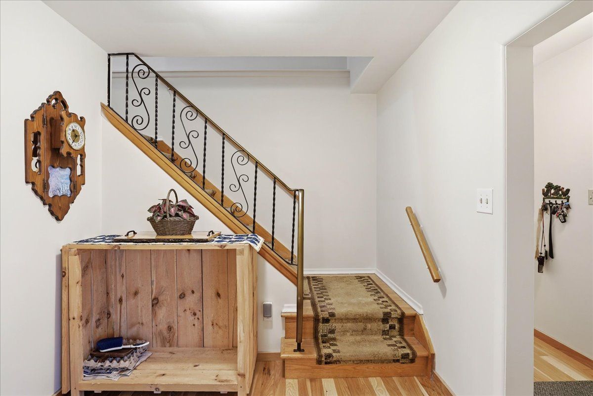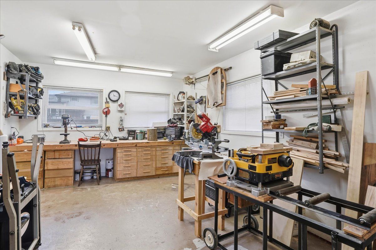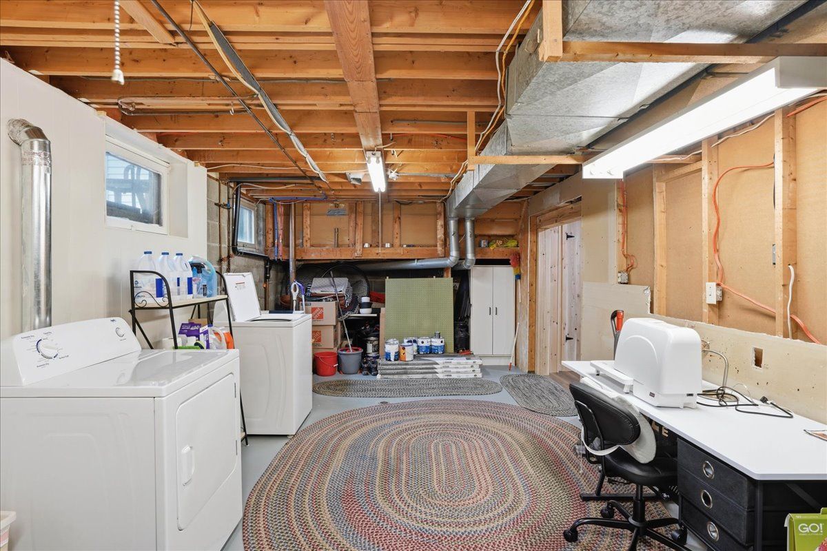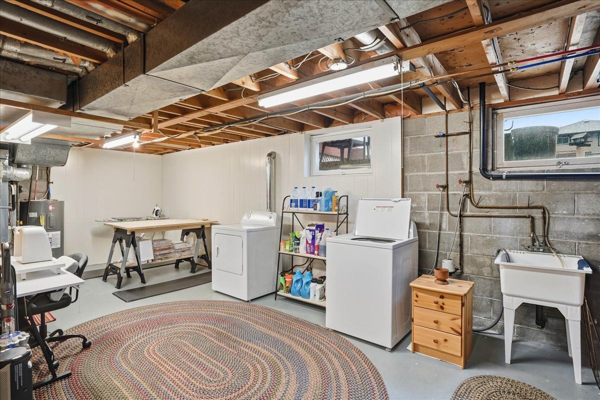 • Cozy rec room with electric fireplace in the partially finished lower level.