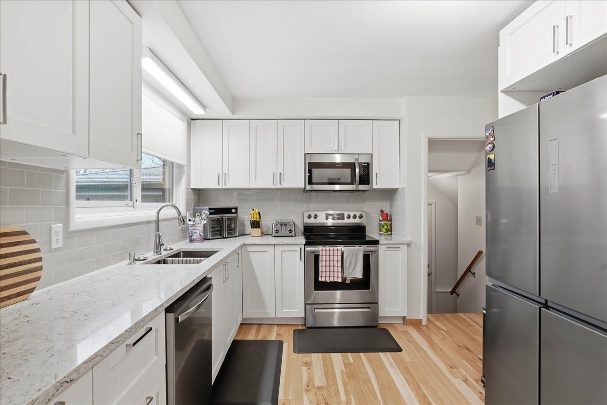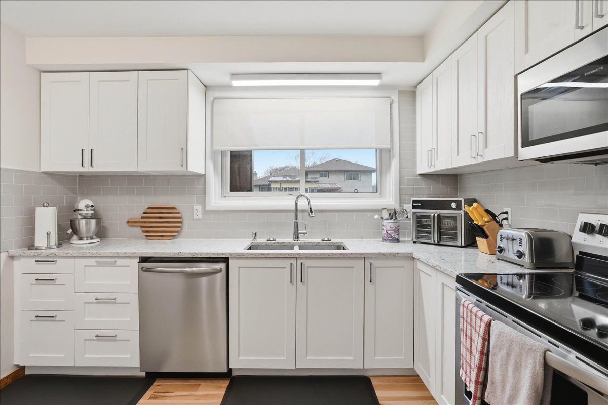 This home is nice and so's the price! Bring the family to check out this beautifully maintained 4-bedroom home in belleville's east end. Step inside to see just how far your money can go with this fantastic buy. The welcoming enclosed front porch leads into a spacious foyer and main level, featuring stunning gaylord hardwood floors and a bright south-facing living room. Gather around the cozy wood fireplace insert, installed in 2023, enjoy entertaining in the formal dining room with a walkout to the sunroom-a perfect spot for morning coffee or a good book. From there, step out to the deck for bbqs and a large, level fenced backyard complete with a custom-built storage shed. You'll be wowed by the gorgeous brand-new modern kitchen and appliances, also installed in 2023-this home is immaculate! The main level includes a 2-piece bath, access to the attached garage, and a separate workshop area for handyman or tinkerers. Upstairs offers four generous sized bedrooms with hardwood floors and a full four-piece bathroom. The partially finished lower level features a cozy rec room with unique wood accents and an electric fireplace, plus a spacious laundry room with extra storage and space for a sewing area. Added bonuses to this home include efficient gas forced air heating, central air, a private double-paved driveway, and plenty of parking. Plus an excellent location close to all amenities. Full of charm and unbeatable value, this one's a recipe for happiness you won't want to miss!