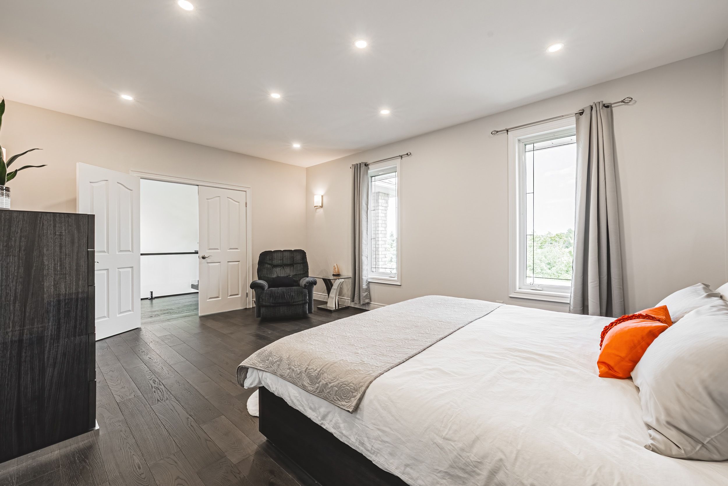 • Upstairs primary bedroom features a walk-in closet and spa bathroom.