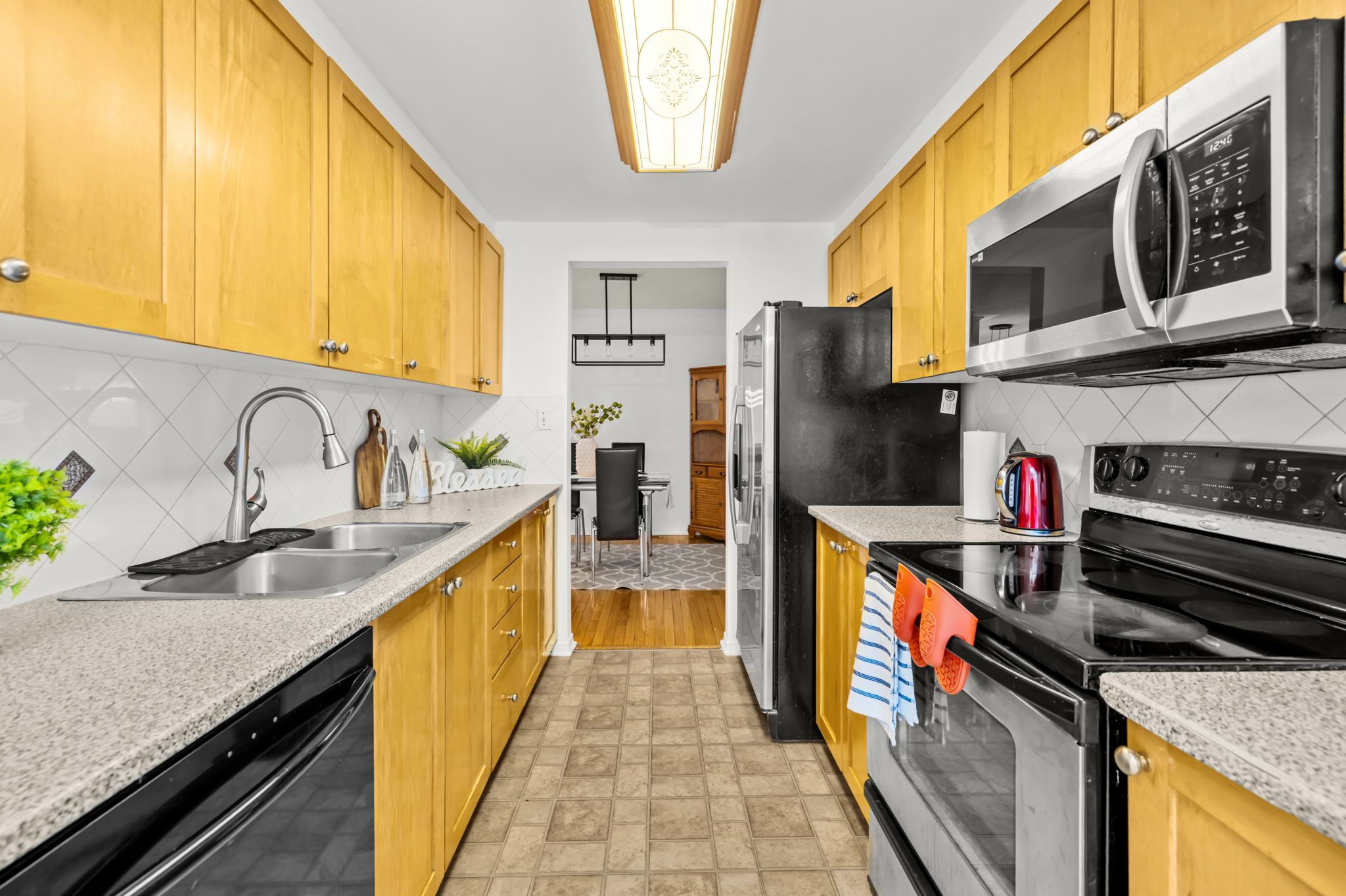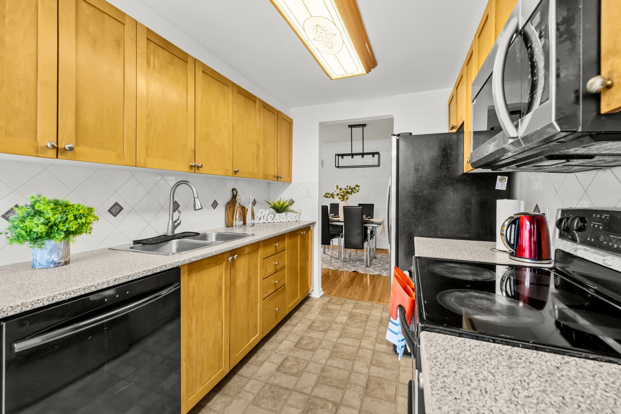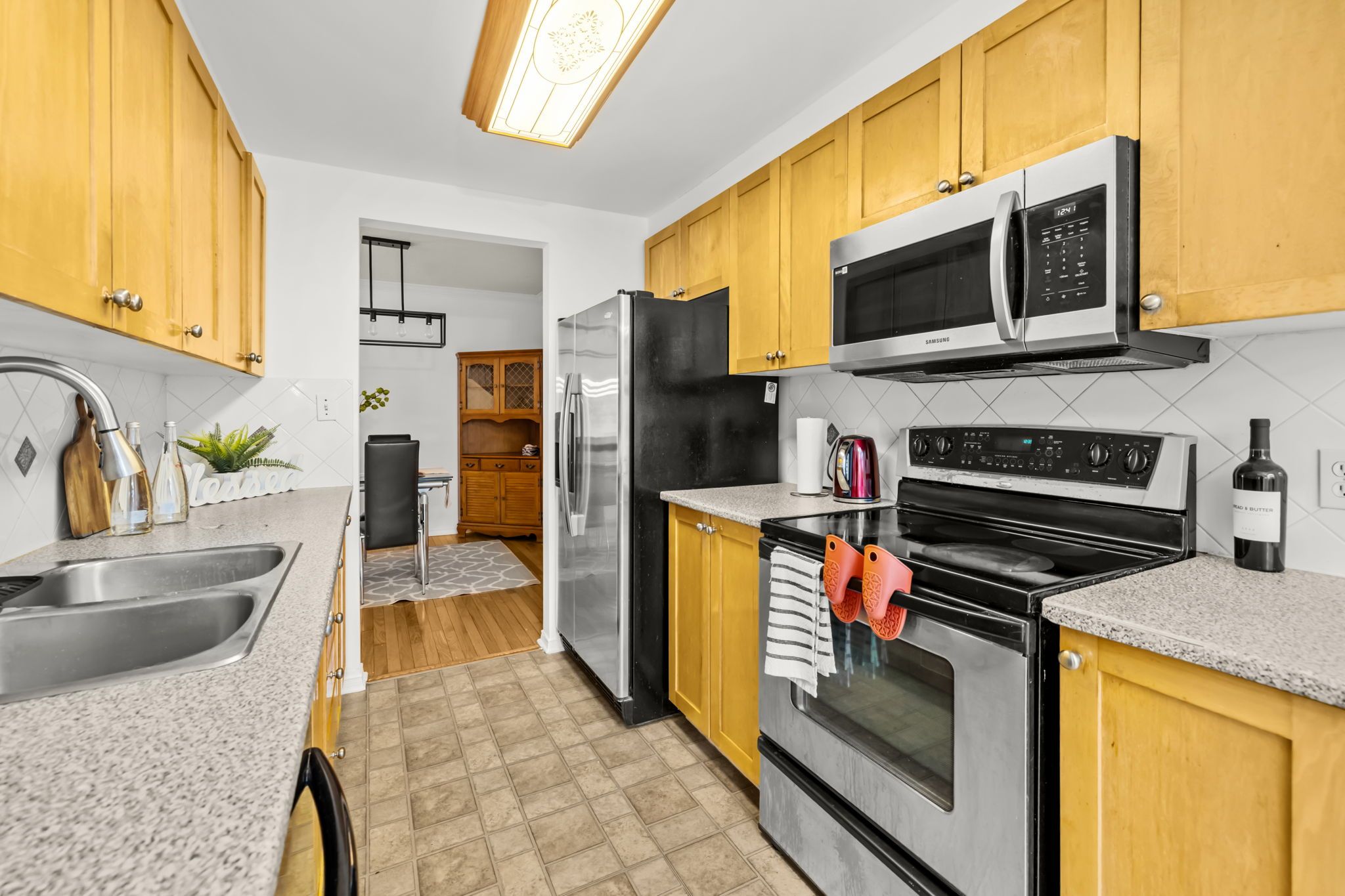 • Bright kitchen with ample cupboard space and patio access to backyard.