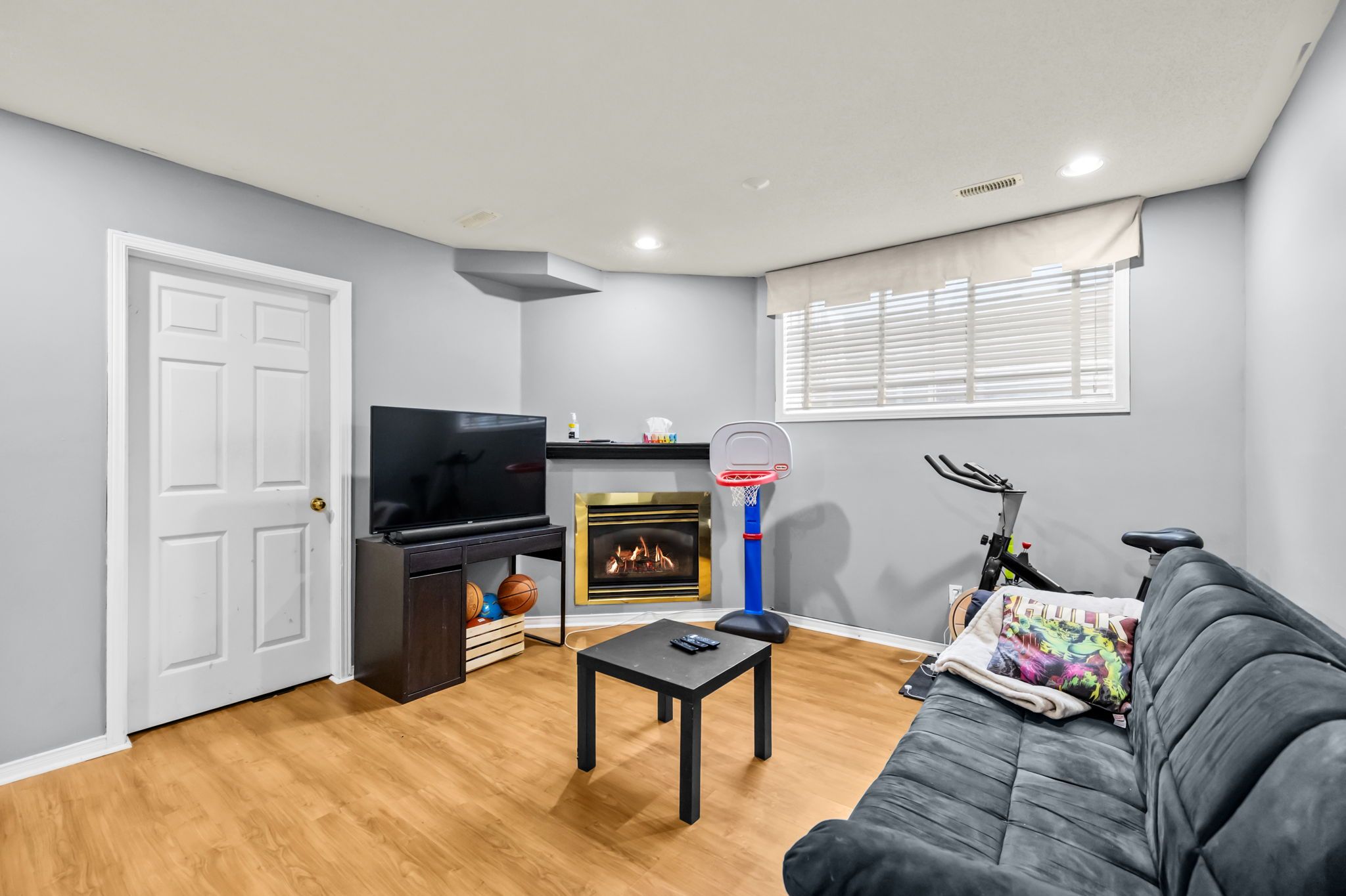 • Finished lower level with cozy recreation room and gas fireplace.