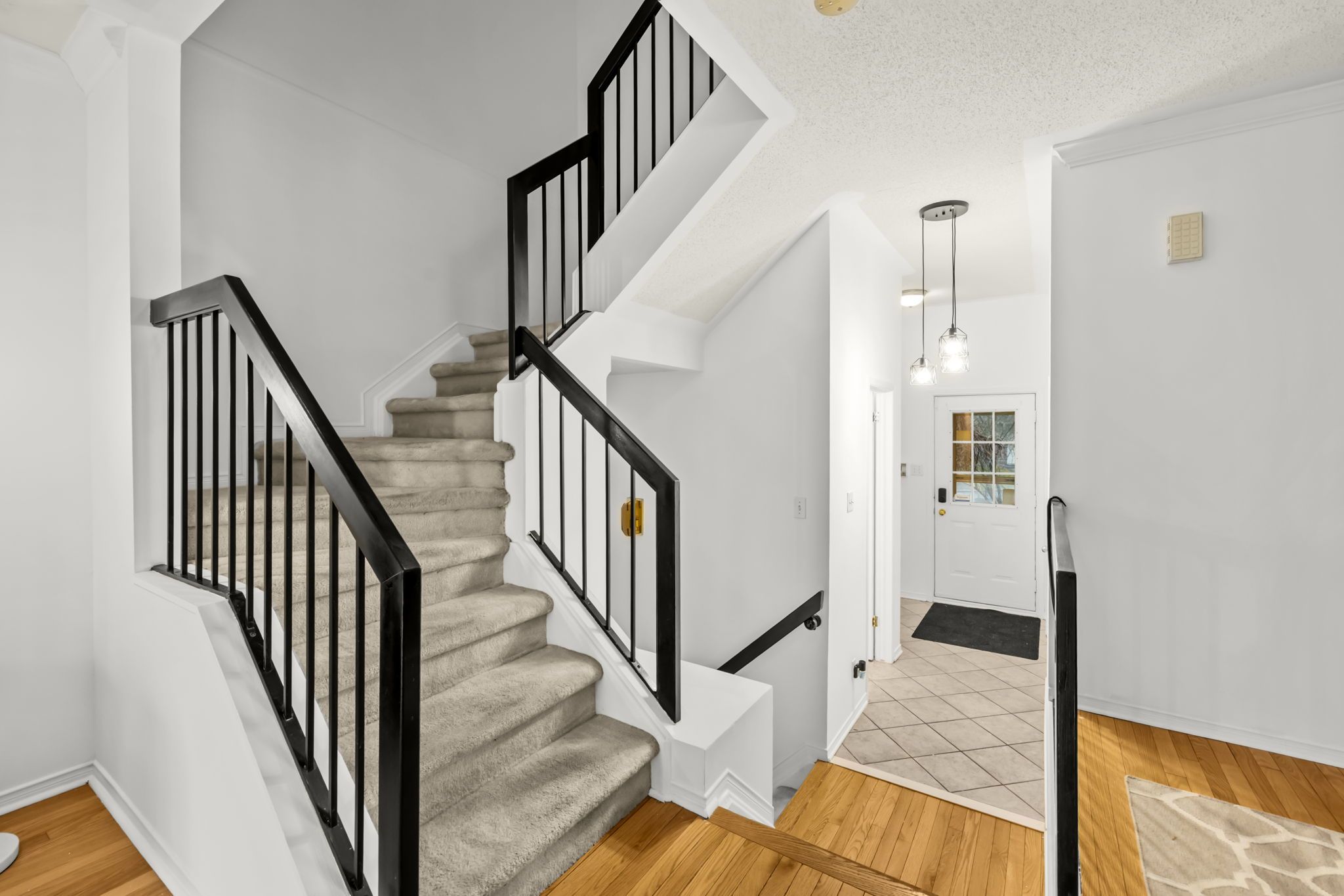 • Spacious foyer with durable ceramic tile and garage access.