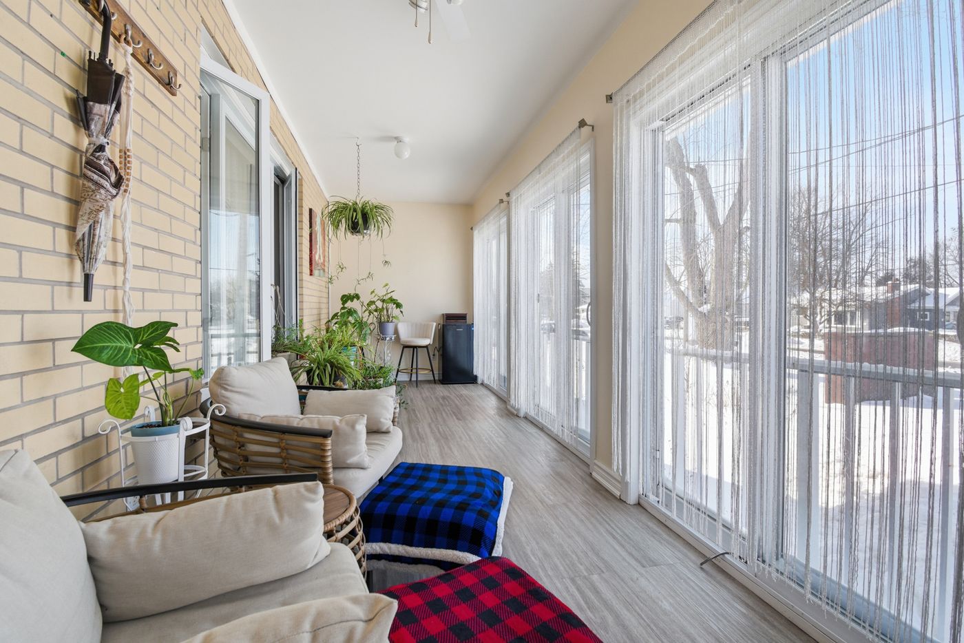 • Enjoy coffee on the lovely front porch with natural light.