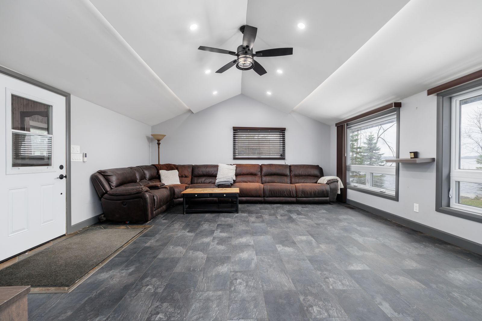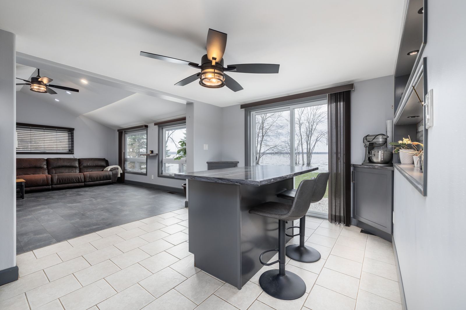 Welcome to this fully renovated 3 bedroom bungalow offering 1,361 sq ft of bright, modern living space on a large lot with 123 ft of prime waterfront on lake st. John. This move-in-ready home is the perfect blend of comfort, convenience, and lakeside charm. The home features a bright, updated kitchen with custom island and bar, a cozy living room with vaulted ceiling, and a functional laundry/mudroom for added convenience. Enjoy serene waterfront views from two of the three spacious bedrooms. Renovations include 200 amp electrical service, pot lights, shingles, windows, exterior doors, and more. Stay easily connected with bell fibe internet. This property features a 810sq. Ft. Workshop with additional 100amp service, walk-up loft, and ample space for storage or projects. The freshly gravelled driveway offers parking for up to 20 vehicles. Enjoy year-round fishing on beautiful lake st. John. The waterfront features a concrete dock, a bonus floating dock, and gradual walk-in access. Launch your boat from the property or use the convenient public boat launch just down the street - free for residents. Located minutes from casino rama, washago, shopping, groceries and more! This move-in-ready home combines direct waterfront access, modern comforts, and plenty of room for both relaxation and recreation. New doors (2024), all new windows (2023), newer shingles & plywood (2020), pot lights and strip lighting (2023), gas furnace (2024), central air (2024), on-demand hot water system (2023), exterior doors (2024), septic pump replaced (2022), well pump replaced (2022), sump pump (2023), water treatment system (2015) with uv, iron blaster, and reverse osmosis/kitchen tap.