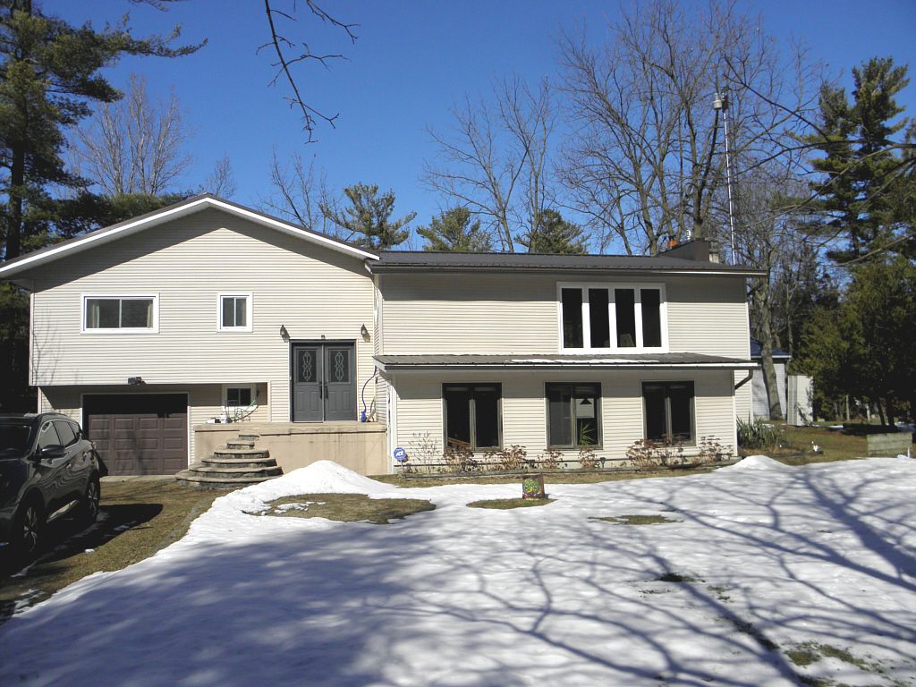 Well maintained 3300 square foot 4 bedroom, 1 bath home on a 85 x 185 foot treed lot. Just 3 blocks to great sand beaches at ipperwash. Attached 39' x 13' 1" insulated garage w/door opener and direct entry to laundry room on lower level. Large entrance foyer opens to both upper and lower levels. Open concept main floor w/sunken living room w/pine vaulted ceiling and floor to ceiling stone fire place w/propane insert. Formal dining room views fireplace is open to kitchen which has lots of cabinets, a large island, built-in dishwasher, w/ pass thru to living room. Walk out to covered rear deck. 4 large bedrooms on the main level, most bedrooms have built-in dressers. Walk-in 6' 4" x 3' 6" linen closet on main level. Llower level has a large games/family room w/floor to ceiling stone fireplace w/cozy wood burning insert which heats the whole house. 9' x 4' 6" pool table and a 16 foot shuffle board included. From the family room there is a walk out to the grade level sunroom, which has a newer exterior door and screen door. There is also a walk-out to the covered 16' x 15' wood storage area and rear yard patio. 16' x 10' storage shed wsteel roof in the rear yard. Steel roof installed on the house 2019, vinyl siding installed 2009. Municipal water connected plus a sand point system for car washing etc. Hydro service is 200 amp w/fuses and a breaker sub panel on main level, extra insulation added, several windows have been replaced and some newer electric baseboard heaters installed in 2025. Located on a paved road, fibre hi-speed internet and natural gas available at the road. Several golf courses within 15 minutes. Located less than an hour from london or bluewater bridge in sarnia, shopping 10 minutes and 20 minutes to night life in grand bend. Quick possession available. Ready to move in and enjoy the great sand beach and fantastic sunsets over lake huron! This would make a great air-bnb. Note: most furnishings included. Contact la for a complete list to be included
