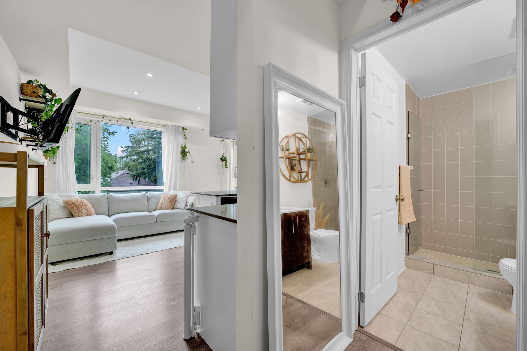 If your heart is set on the midtown area vibe, don't miss the opportunity to own this modern townhome! 2 full washrooms, 2 bedrooms & south facing! A perfect blend of condo and freehold living, this urban townhome is an ideal place to call home. Thousands spent on premium builder upgrades, featuring a coveted south-facing view from the over-sized terrace, overlooking a quiet residential neighborhood (no views of lawrence ave!). Some of the highlights the home features are hardwood stairs, quartz stone countertops, an abundance of natural light and 9 ft ceilings throughout. The bright and modern kitchen boasts a center island, marble backsplash, soft-close cabinetry, stainless steel appliances, pot lights, and neutral paint tones. Enjoy outdoor living on your spacious private rooftop terrace perfect for relaxing or entertaining, offering scenic views of mature trees and the toronto sky line. Just steps to transit, shopping plazas, parks, walking distance to lawrence plaza at bathurst & 5 min drive to yorkdale mall.