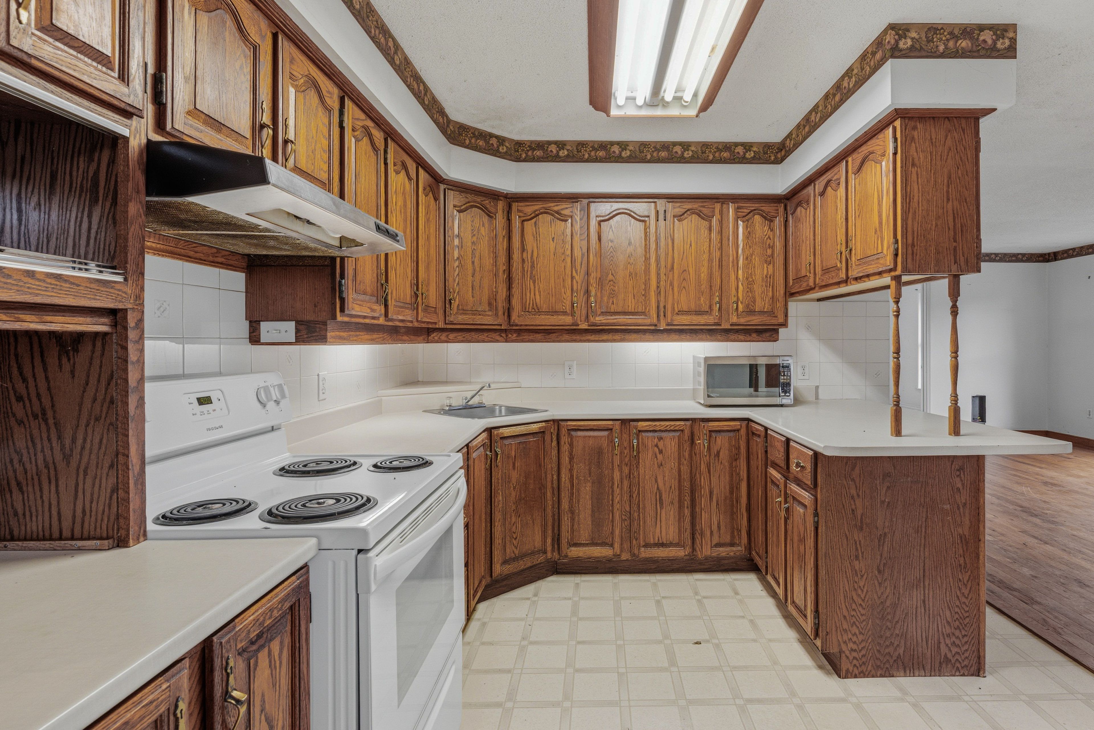 • Spacious main level featuring a large kitchen and open living/dining area.