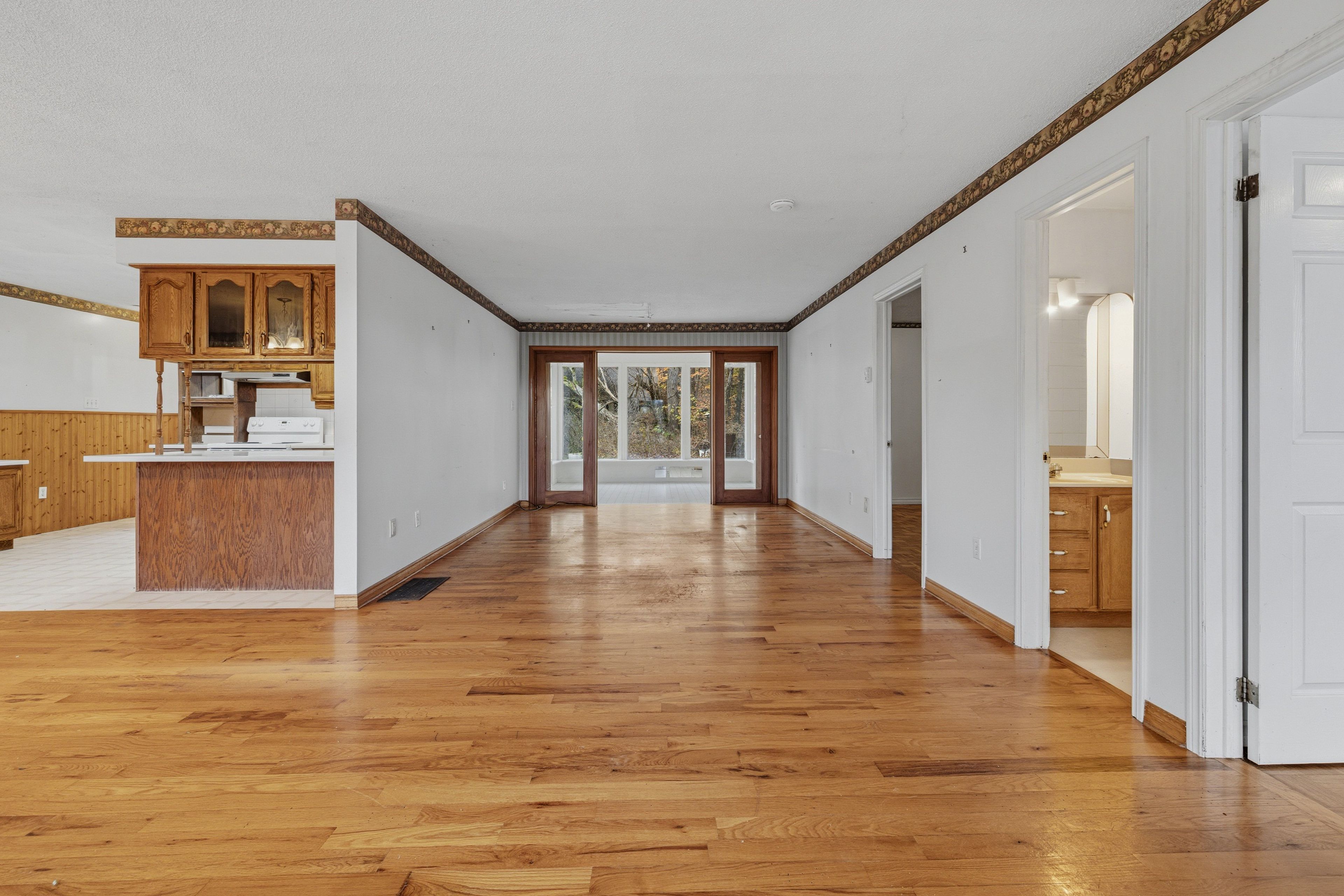 Here's a chance to own an affordable property with a million dollar view! Situated on a nicely-treed 1 acre lot just outside perth road village and built into a gentle slope, this home is perfect for someone who sees its potential. The main level is spacious with a large kitchen and open dining/living room combination. The hardwood flooring adds warmth to the main level and the windows provide lots of natural light as well as a view of little franklin lake. In addition, there's a cozy sunroom for relaxing, 2 bedrooms, and a 4-piece bath. The lower level is partially finished and could be transformed into a rec room or additional bedroom(s). The basement also houses the laundry area and utility room and provides plenty of storage space. There is an entrance to the garage from the lower level. The location is convenient, just 20 minutes south to kingston and 20 minutes north to westport. This is an estate sale and it is being sold in "as is" condition.