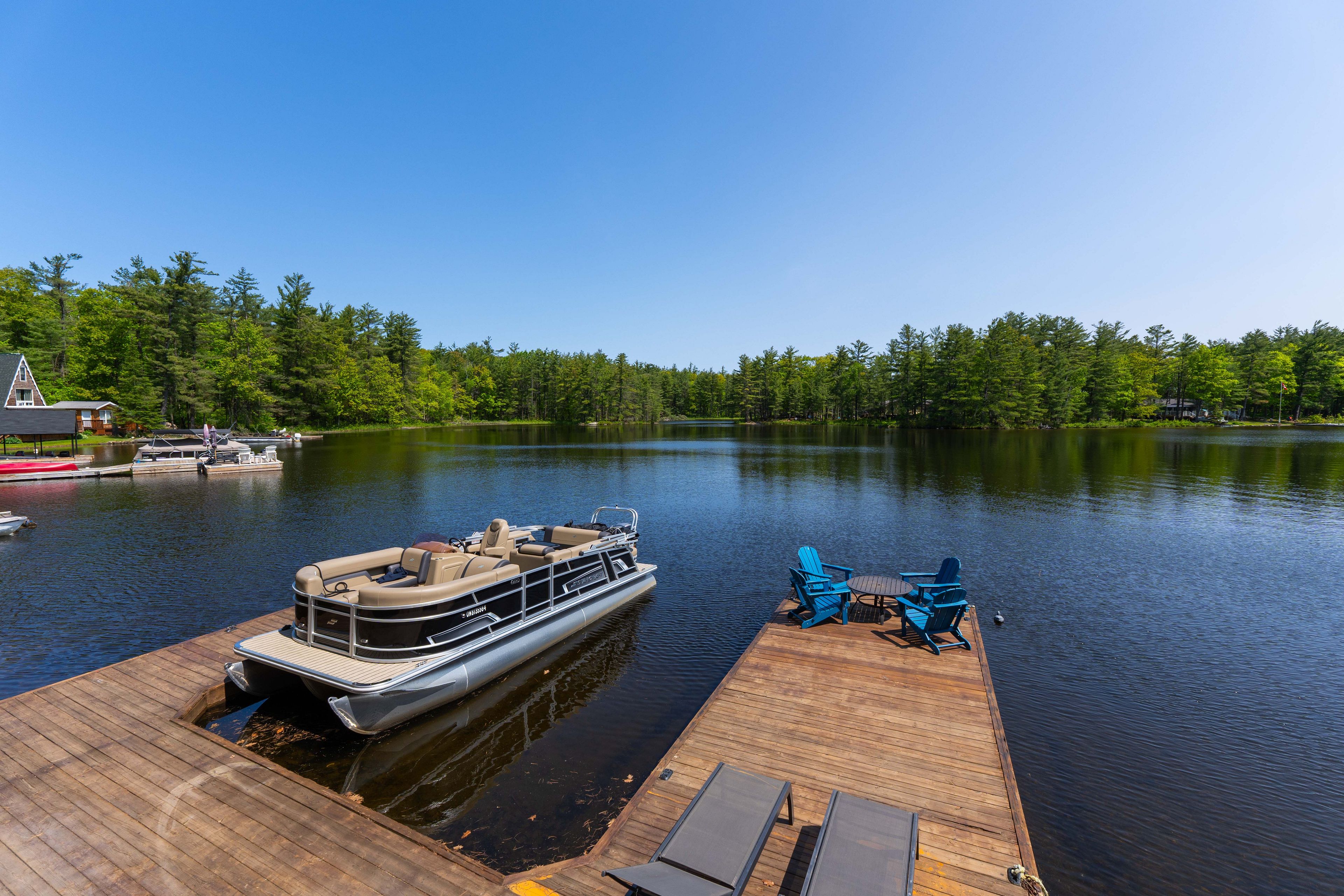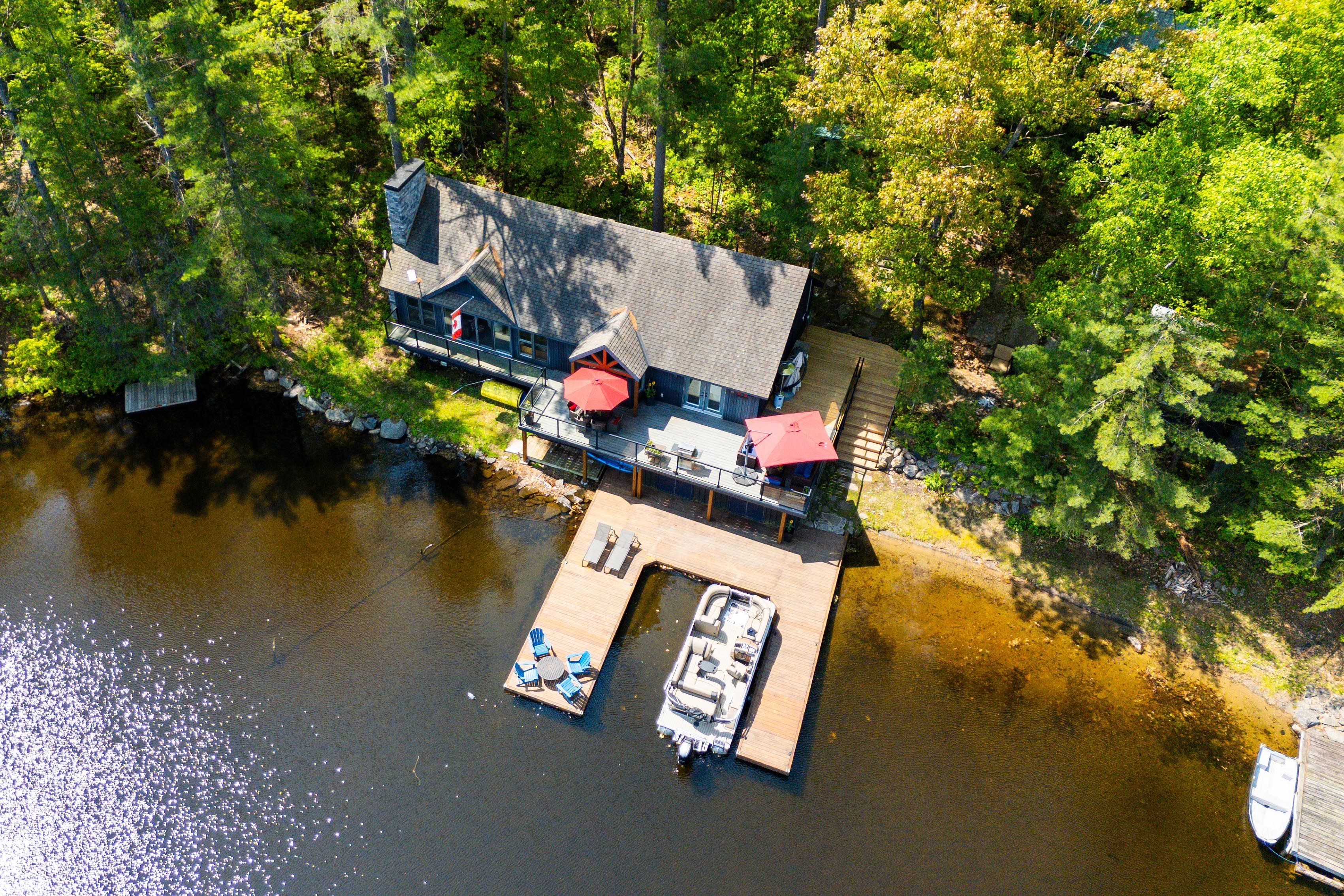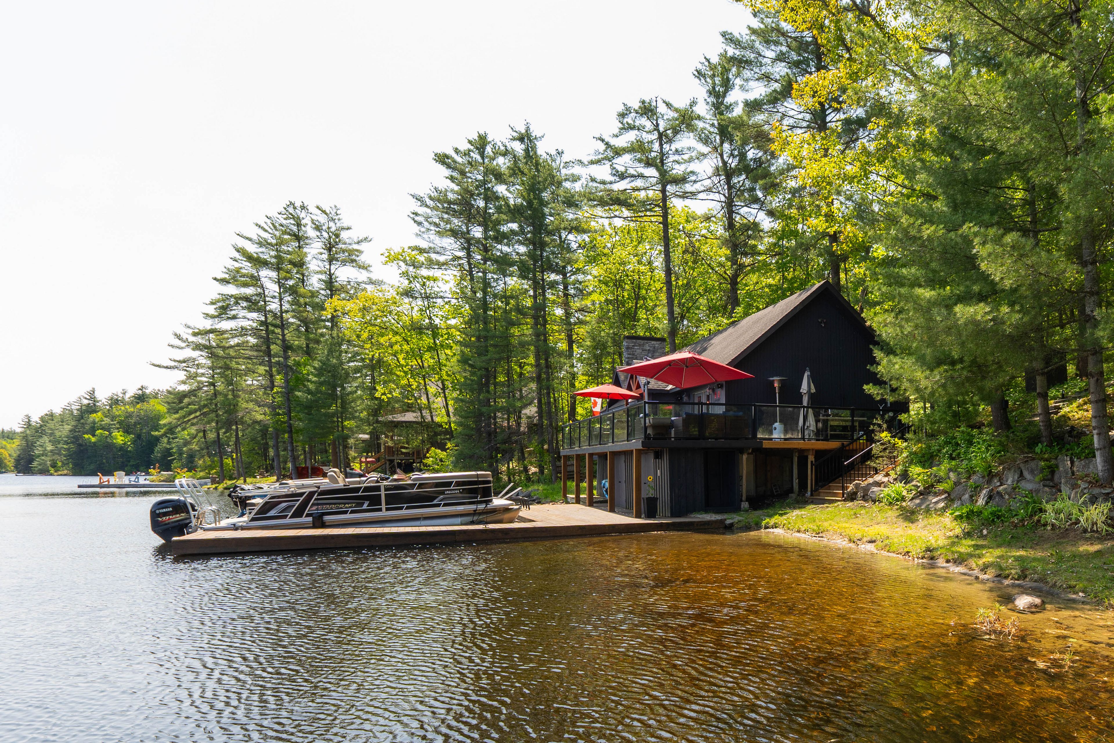 Welcome to 6394 go home lake - an exquisite waterfront retreat where timeless craftsmanship meets the beauty of untouched muskoka wilderness. Set on 190 feet of private shoreline in the highly sought-after crystal bay, this four-season property offers an unparalleled connection to nature and the water. Inside, a sense of warmth and sophistication greets you. The open concept living area is framed by wide plank floors and anchored by a stone fireplace, an inviting centerpiece for family gatherings or quiet evenings by the fire. The chef's kitchen combines form and function with custom cabinetry, stainless-steel appliances, and generous workspace for entertaining. Adjacent, the dining area opens to a panoramic lake view, creating a seamless flow between indoor and outdoor living. Step outside to an expansive deck designed for lakeside entertaining, complete with integrated control 4 sound for effortless ambience. Here, mornings begin with coffee overlooking still waters, and evenings end under a canopy of stars. The main cottage offers three well-appointed bedrooms and a full bath, while a newly renovated guest bunkie extends the accommodation to visiting family and friends. The bunkie features two bedrooms, a bath, and provisions for a kitchenette, perfect as a studio, office, or guest suite with spectacular views of the bay. Beyond your doorstep, 100's of acres of adjoining crown land provide unmatched privacy and adventure, ideal for hiking, exploring, or simply losing yourself in nature. Go home lake's pristine waters connect to georgian bay through the voyageurs club, offering access to hidden coves, cascading waterfalls, and private swimming lagoons. With its rare combination of comfort, design, and natural beauty, this property delivers the quintessential muskoka experience, a place to recharge, reconnect, and create lasting memories on one of the region's most treasured lakes.