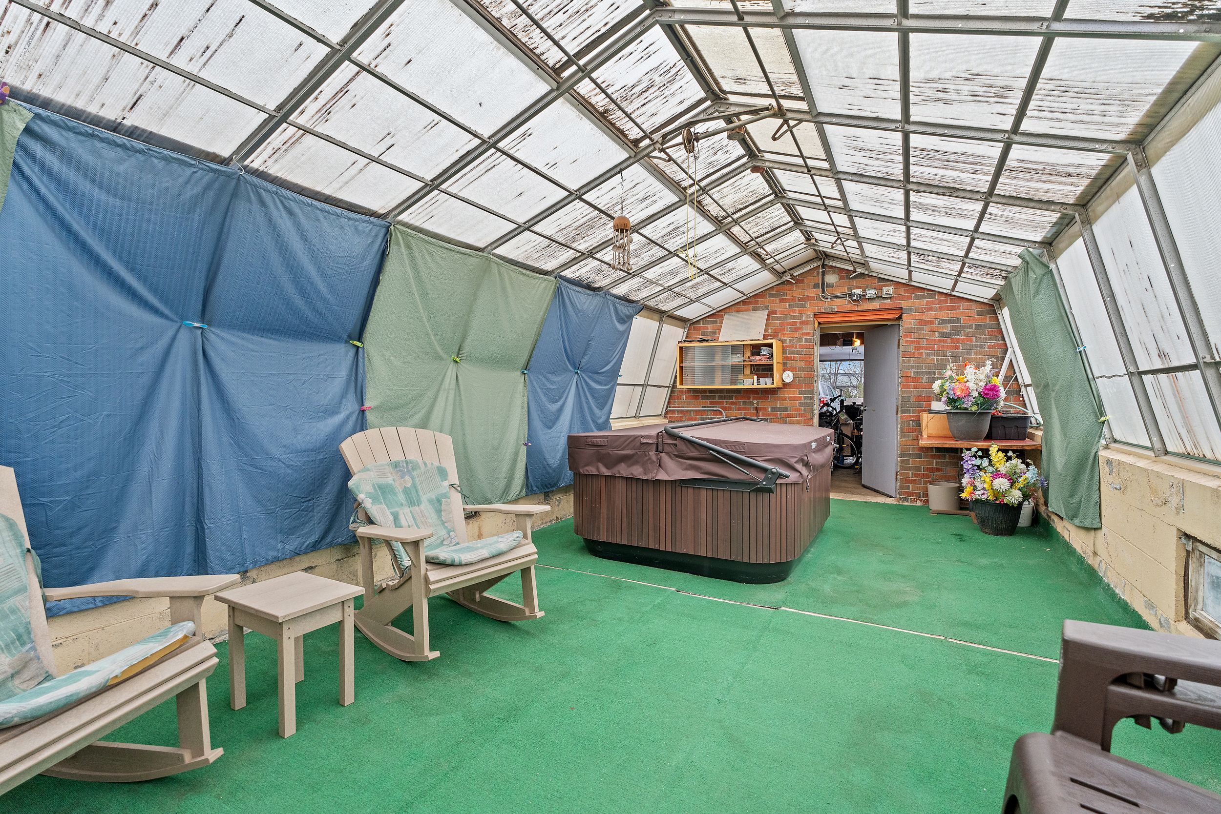 • Charming greenhouse retreat with a hot tub for relaxation and enjoyment.