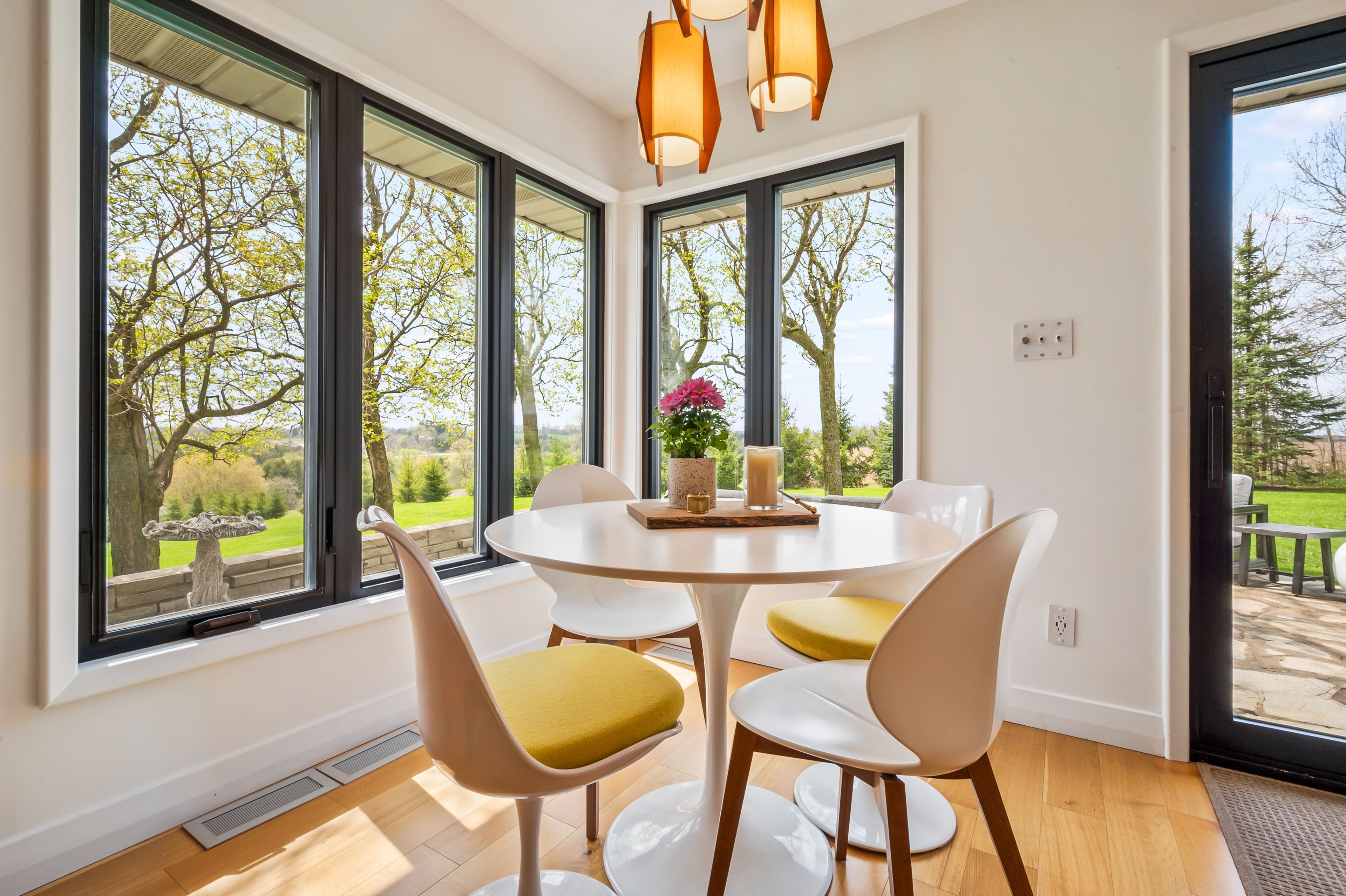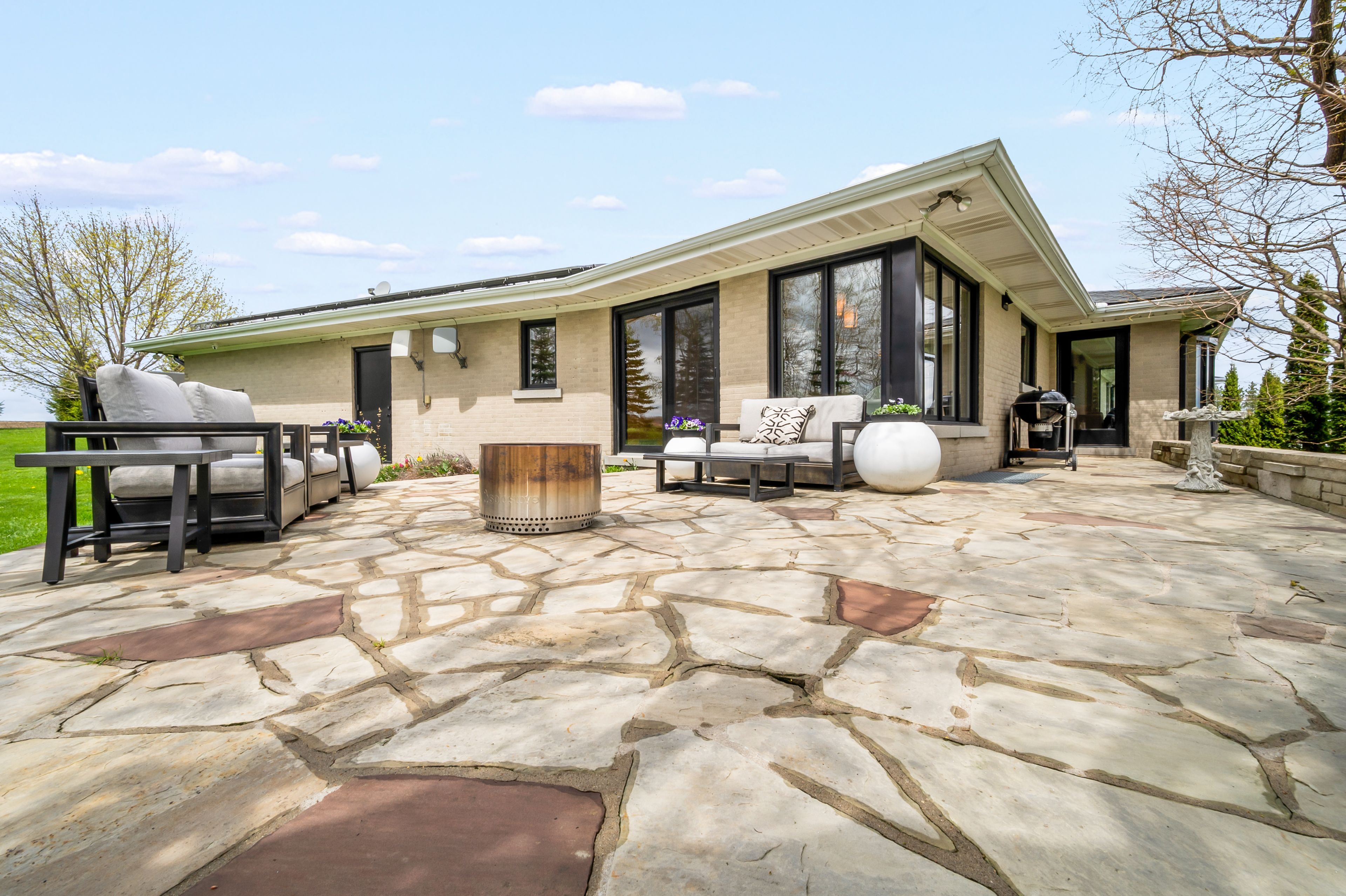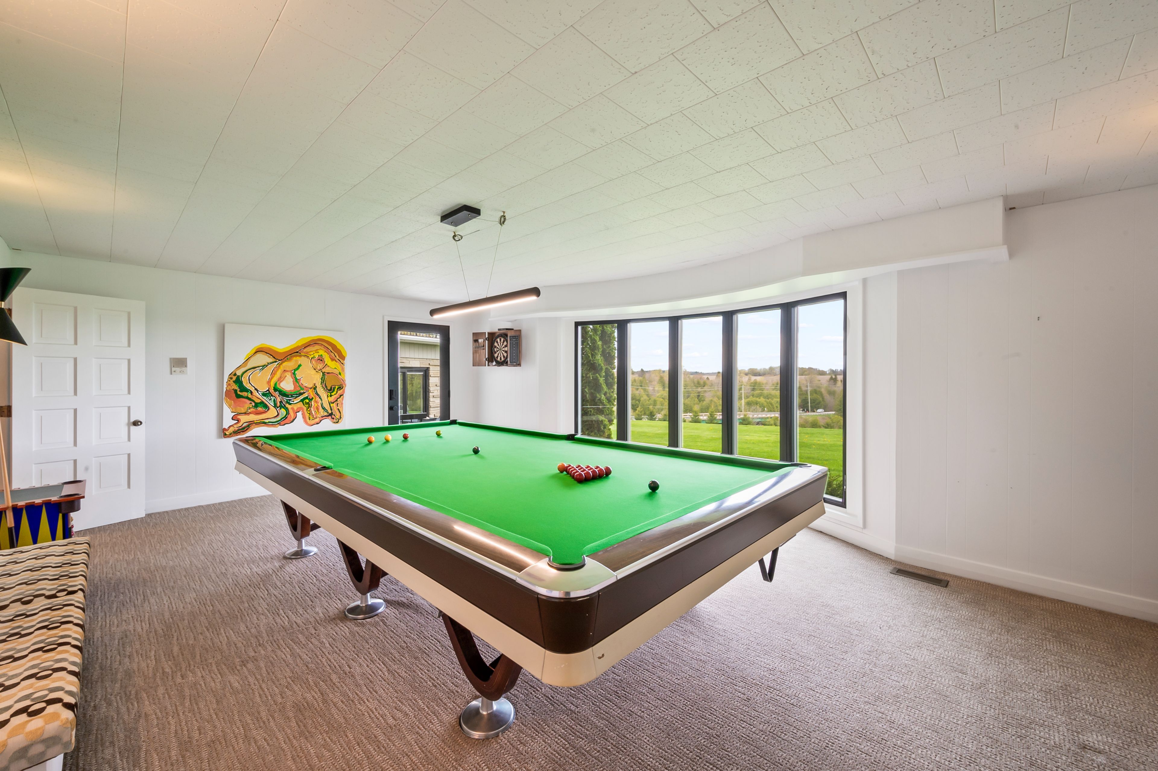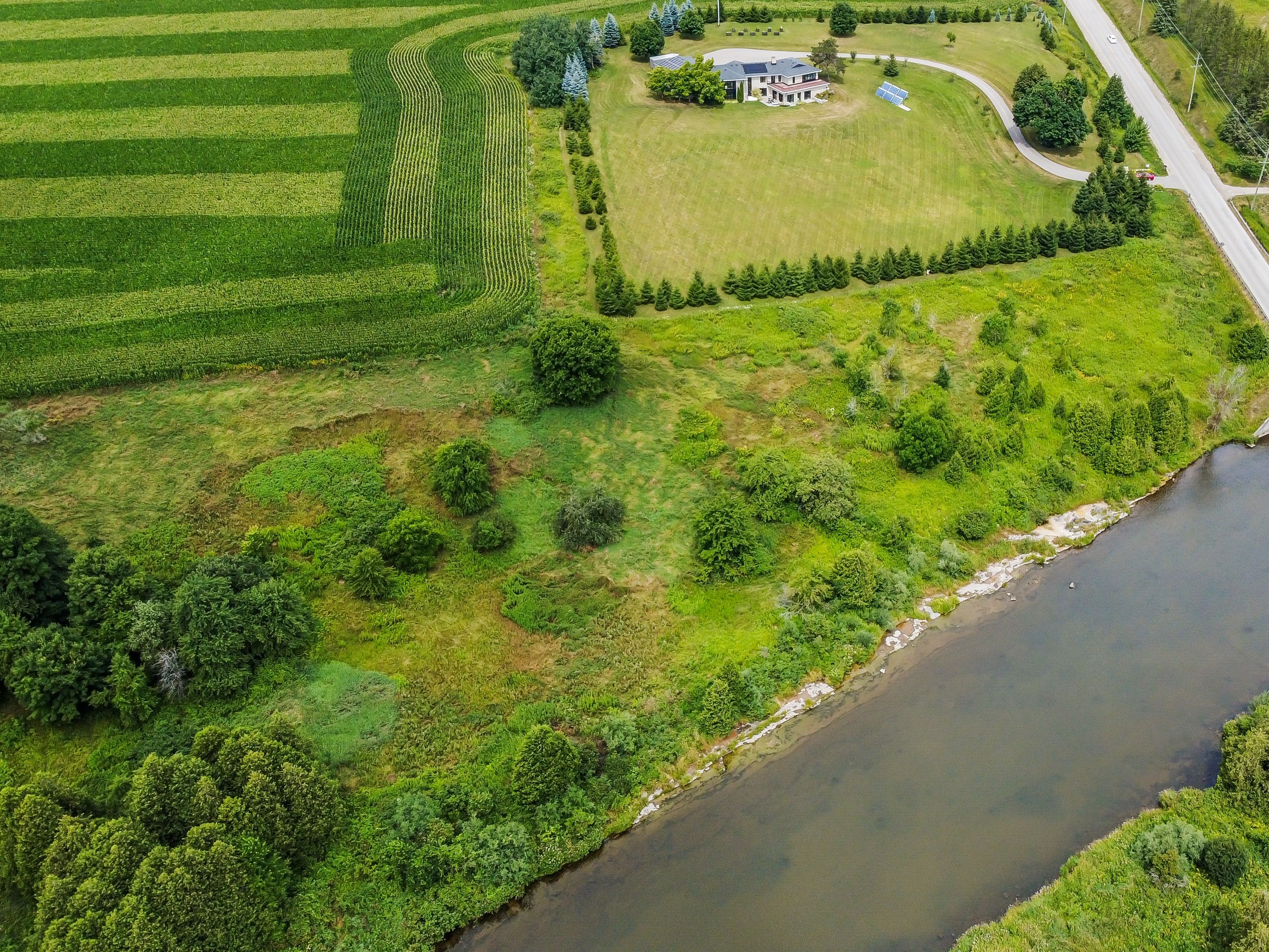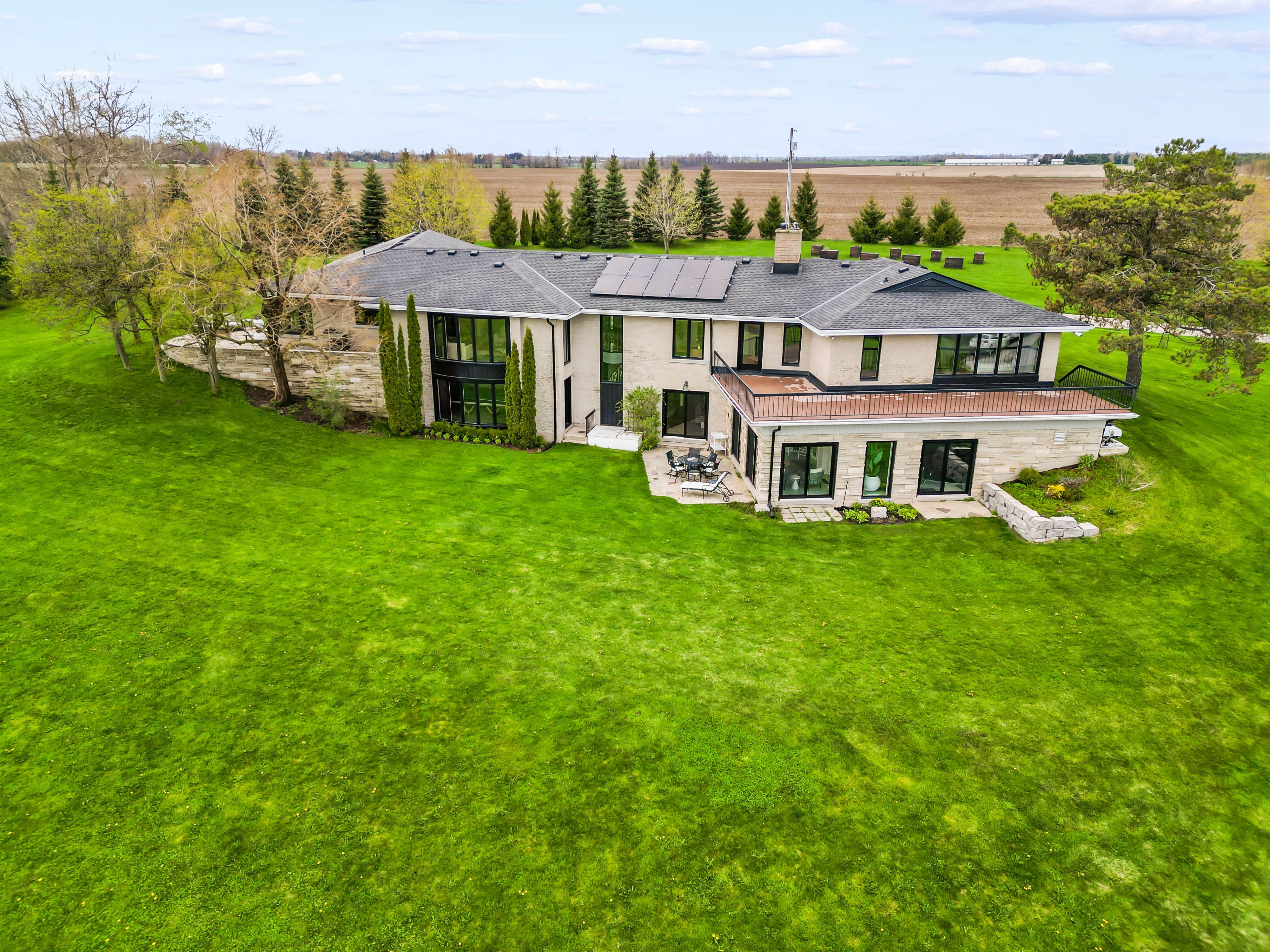 A winding driveway draws you toward the riverlands, a spectacular top-of-the-line modern estate offering over 7,000 sq ft of total space. Nestled on 3. 67 acres with commanding views of the grand river, this architectural gem underwent an extraordinary full-scale renovation from '20 to '22. Today, it stands as a seamless fusion of timeless design and forward-thinking sustainability, boasting carbon- neutral, net-zero-ready systems. The main level features a stunning chef-inspired kitchen with quartz countertops, custom cabinetry, and an impressive suite of appliances. Sliding doors lead to a stone patio with a fireplace and bbq, perfectly positioned to enjoy the sights and sounds of one of ontario's premier fly fishing destinations. The open-concept living and dining area is enhanced by natural light, bespoke walnut built-ins, and sweeping river views. The primary suite is a private retreat, complete with a five-piece ensuite, custom dressing room with integrated laundry, and access to a versatile den or office with a wood-burning fireplace and access to the rooftop terrace. Two more bedrooms offer walk-in closets and share a beautifully updated bath. A curved staircase leads to the lower level featuring a second kitchen with an indoor charcoal grill, a family room with fireplace, a billiards room, a guest suite, a wine room, and a walk-in fridge. Thoughtfully designed to function seamlessly as a multi-generational home, this level offers independent yet connected living spaces ideal for extended family or guests. The showstopping indoor saltwater pool has dedicated hvac and solar-powered heating, plus a sauna, change room, and adjoining sunroom with walkout to the backyard. Rooftop solar panels, geothermal systems, upgraded electrical, smart home features, and plans for a detached 3-car garage complete this one-of-a-kind package. Just minutes from belwood lake and downtown elora, the riverlands is a rare blend of modern luxury, natural beauty, and sustainable living